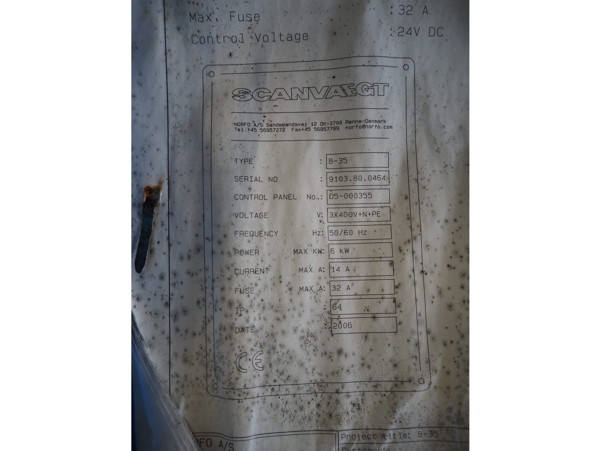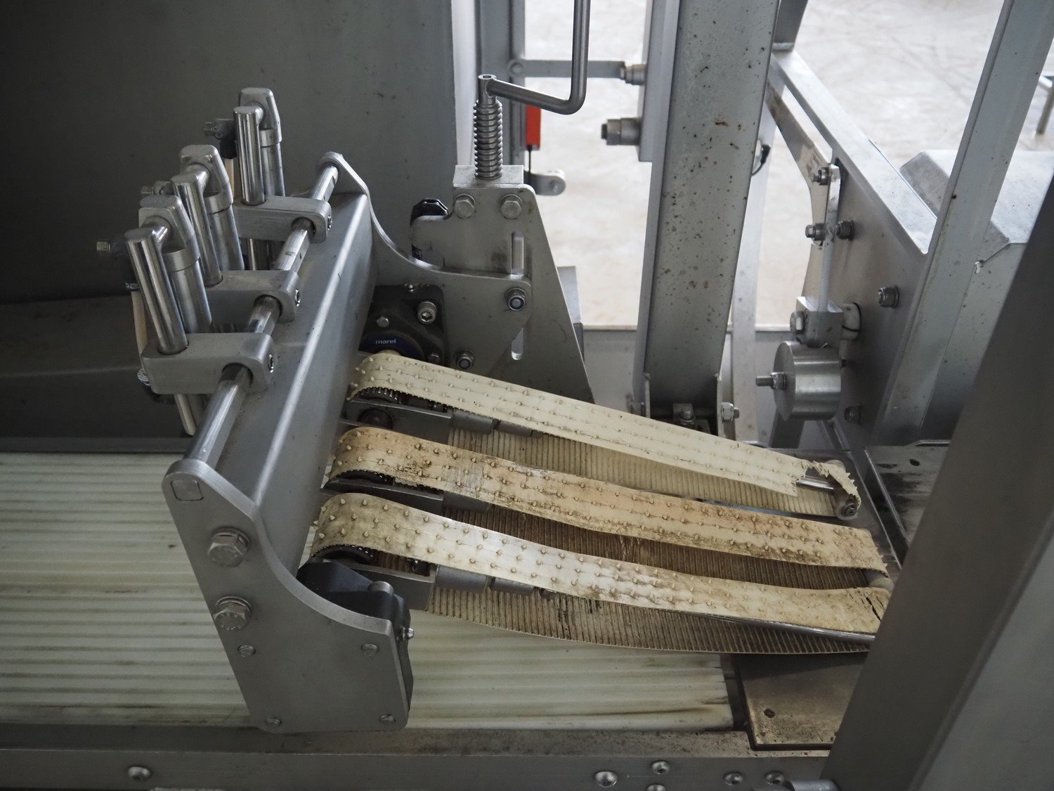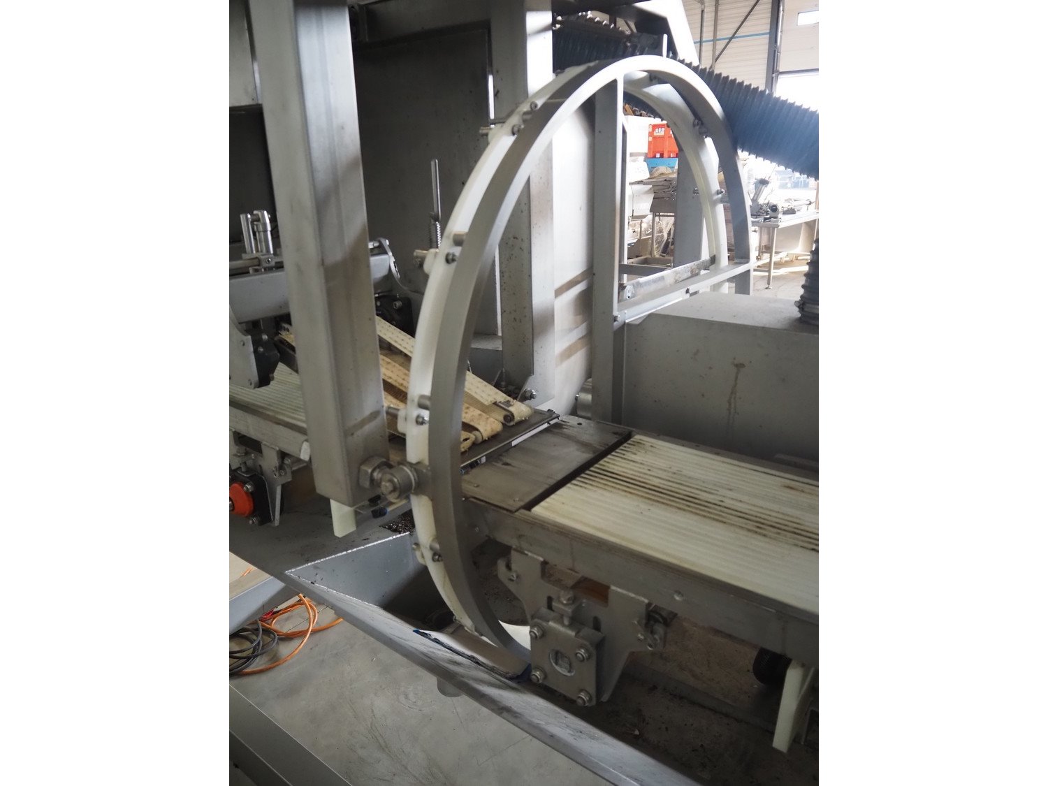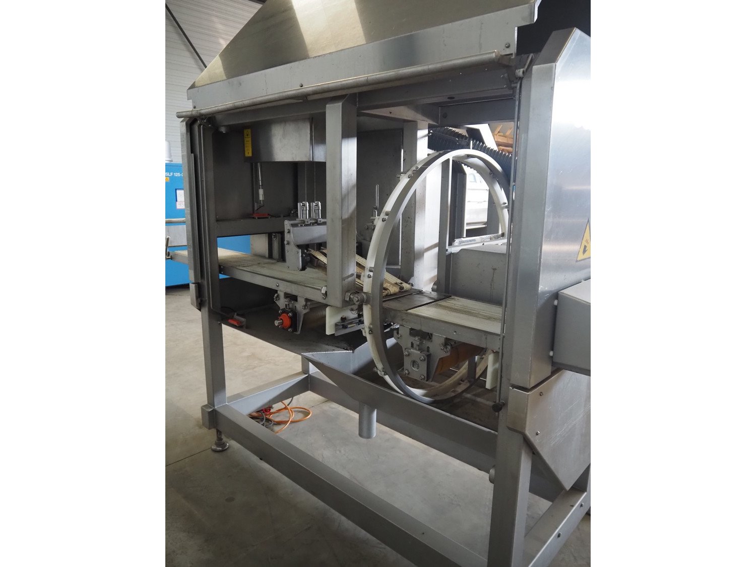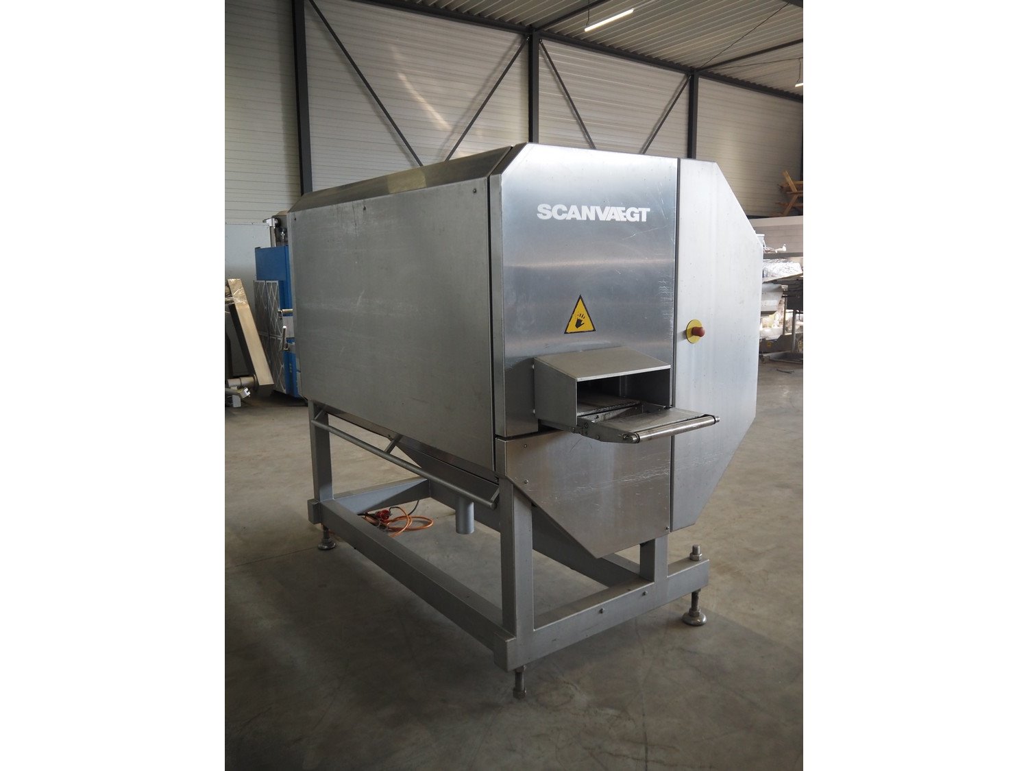 Scanvaegt portion cutter, type: B-35, serial number: 9103.80.0464, year of construction: 2006, 400 V, 3 Ph, 50-60 Hz, 14 A, 6 kW, belt width: 320 mm, knife length: 400 mm, clearance: 330 mm x 110 mm, total dimensions: 3000 mm x 1350 mm x 1900 mm. Without belt. Kavel locatie: Looyenbeemd 11, 5652 BH Eindhoven, Nederland