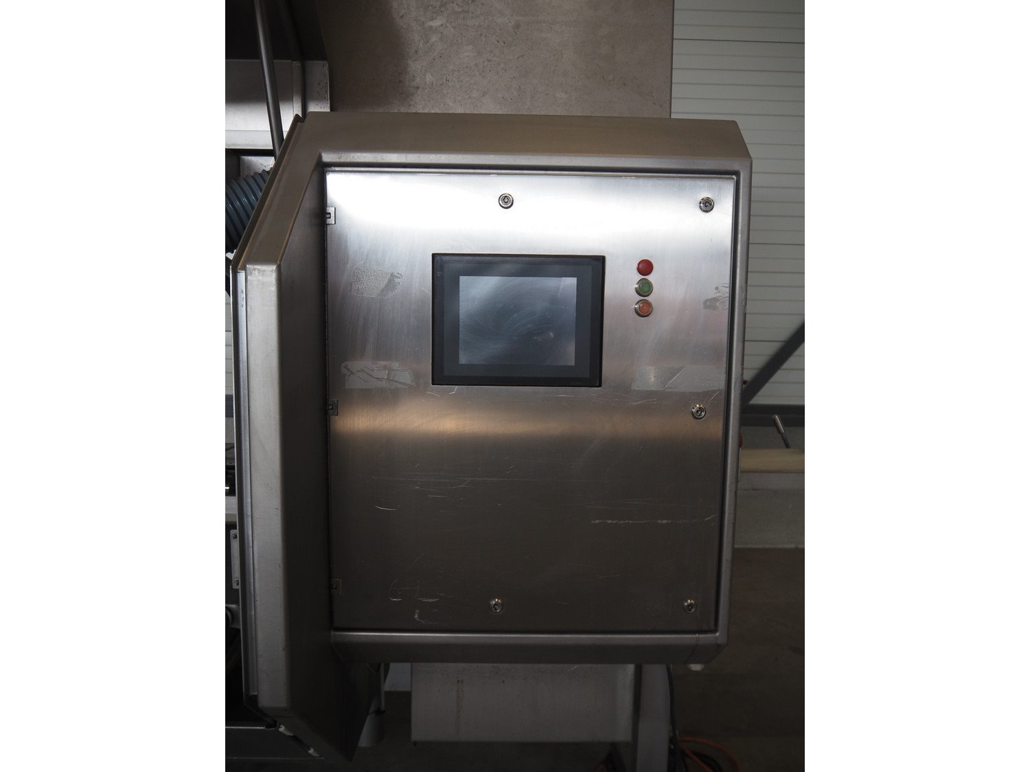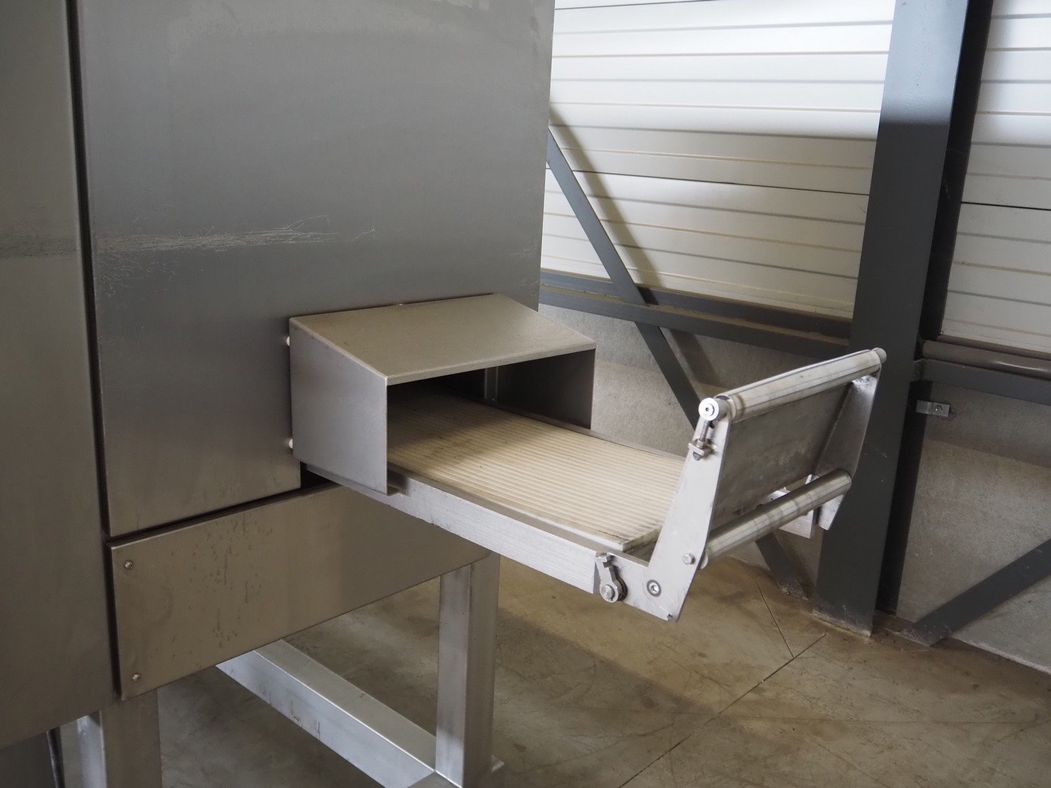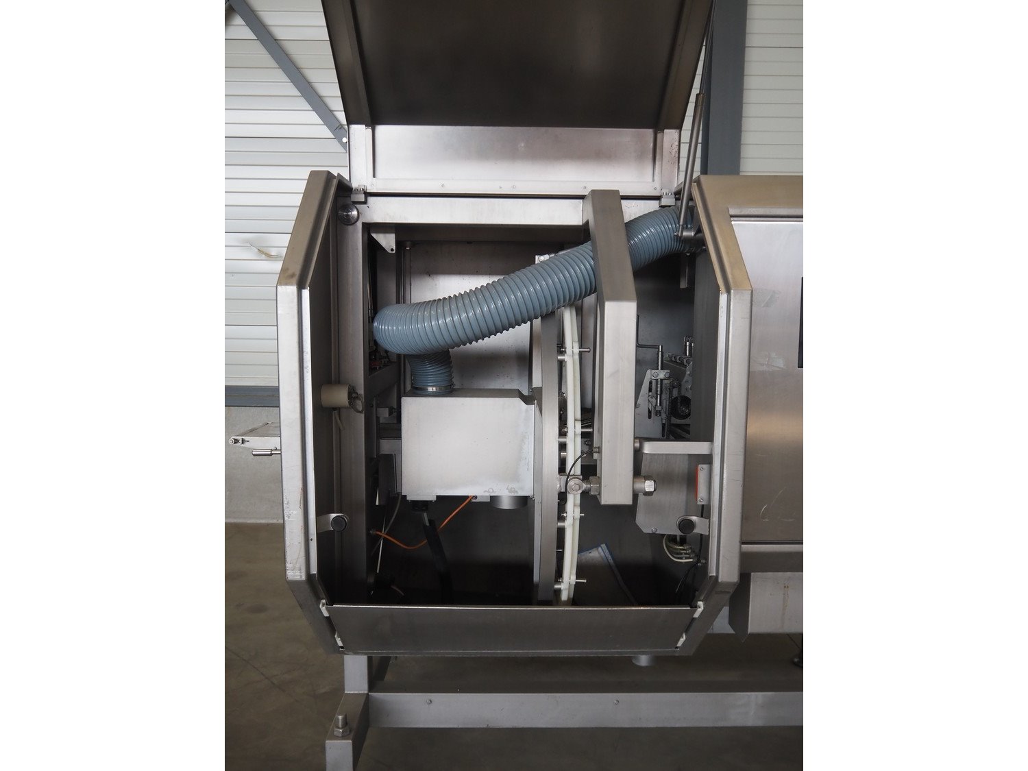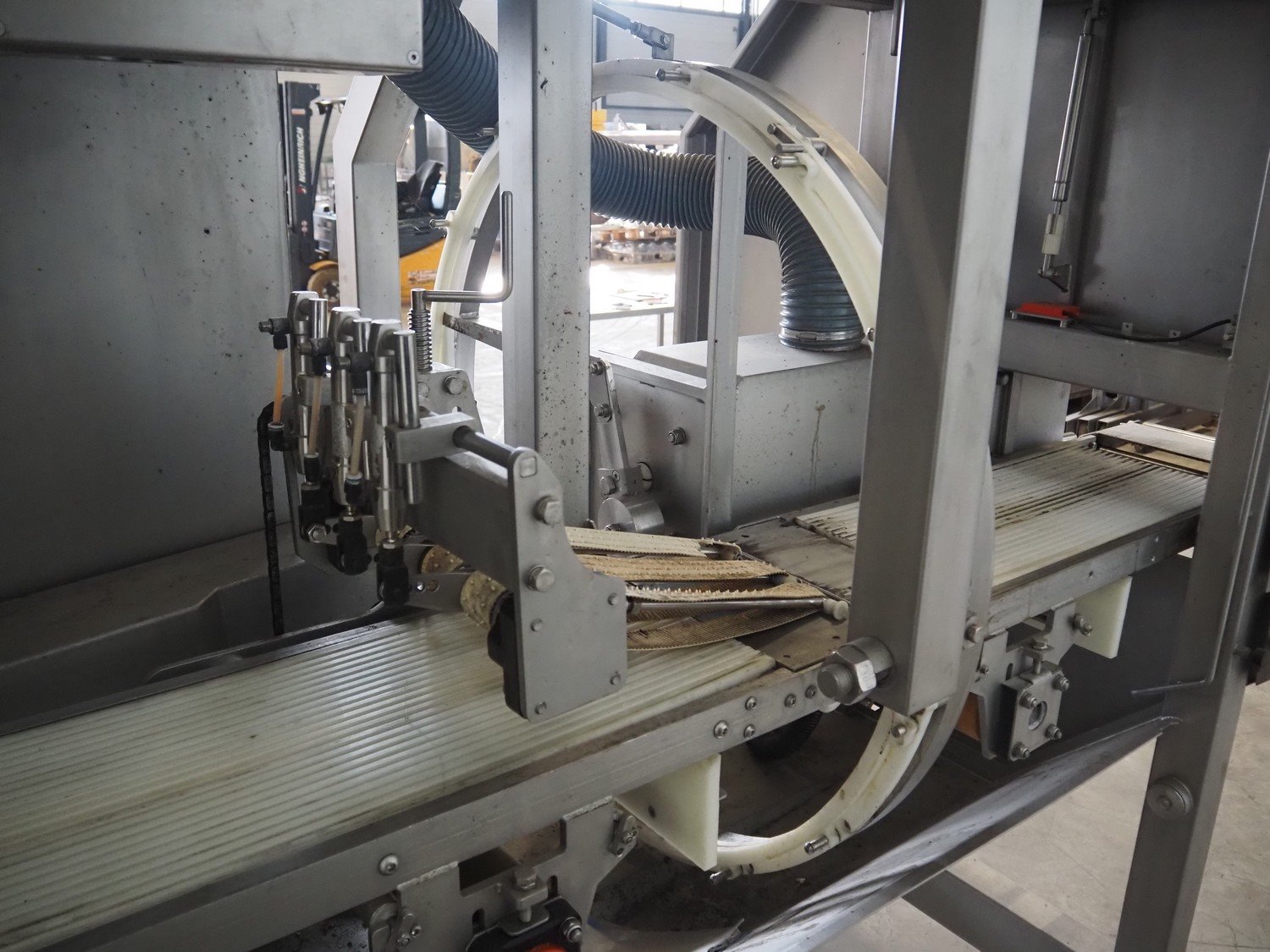 Scanvaegt portion cutter, type: B-35, serial number: 9103.80.0464, year of construction: 2006, 400 V, 3 Ph, 50-60 Hz, 14 A, 6 kW, belt width: 320 mm, knife length: 400 mm, clearance: 330 mm x 110 mm, total dimensions: 3000 mm x 1350 mm x 1900 mm. Without belt. Kavel locatie: Looyenbeemd 11, 5652 BH Eindhoven, Nederland