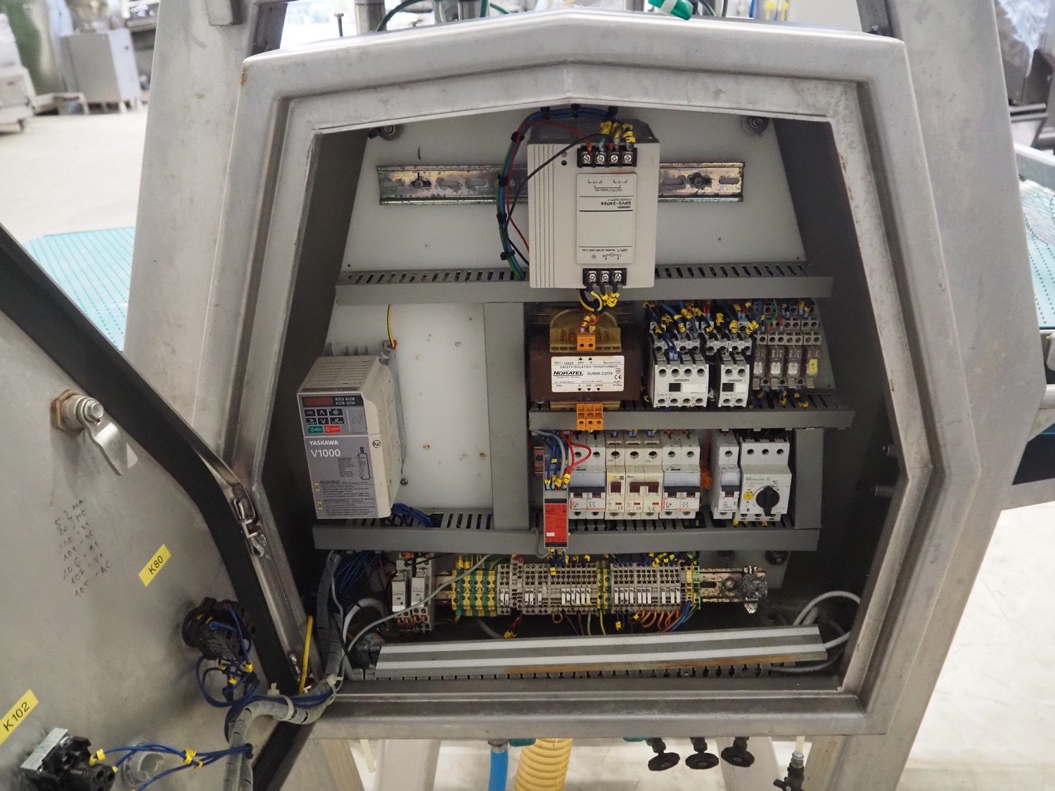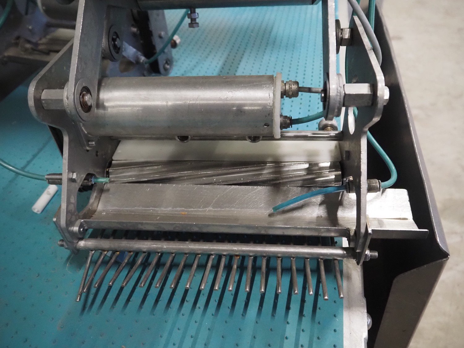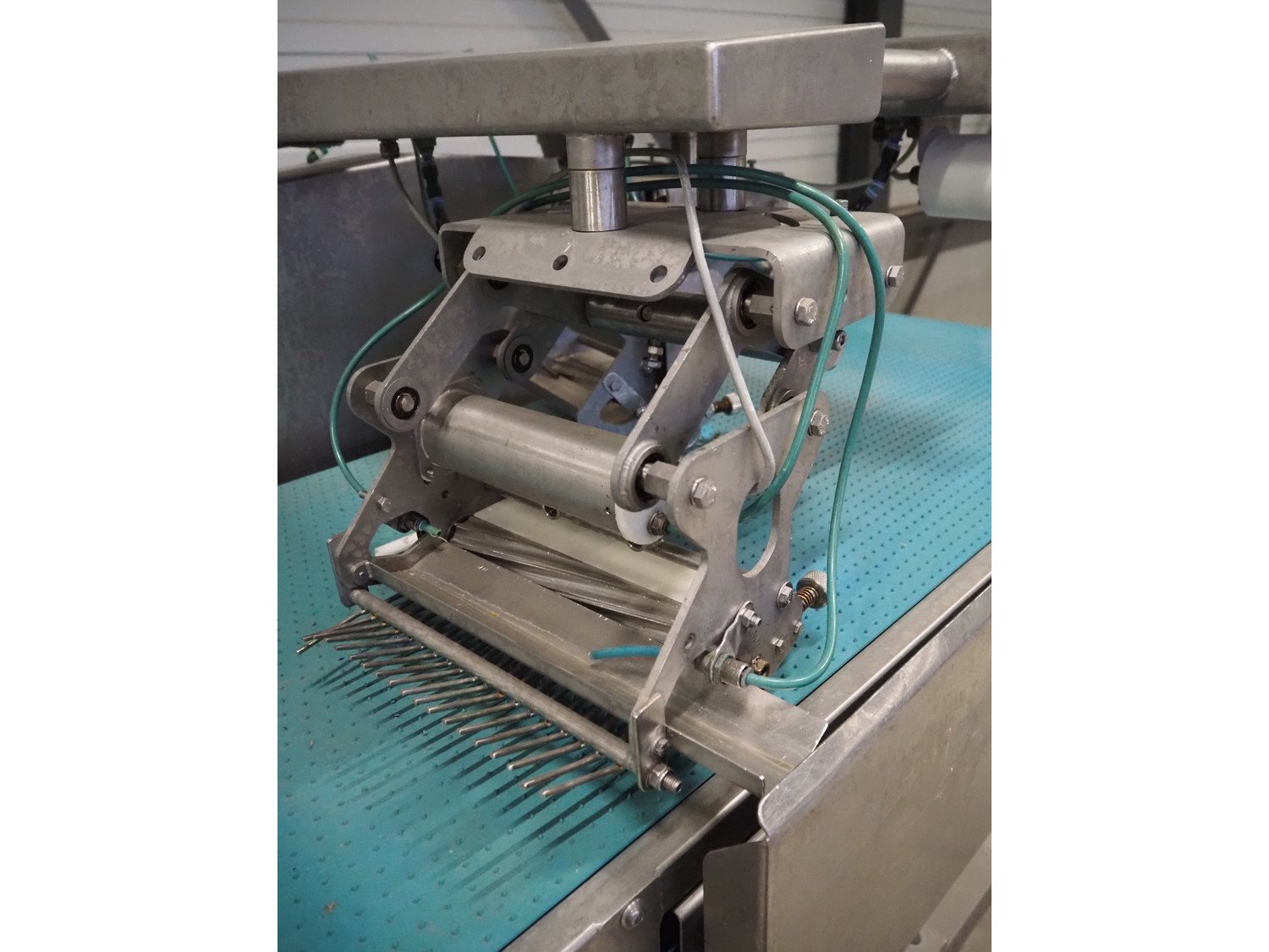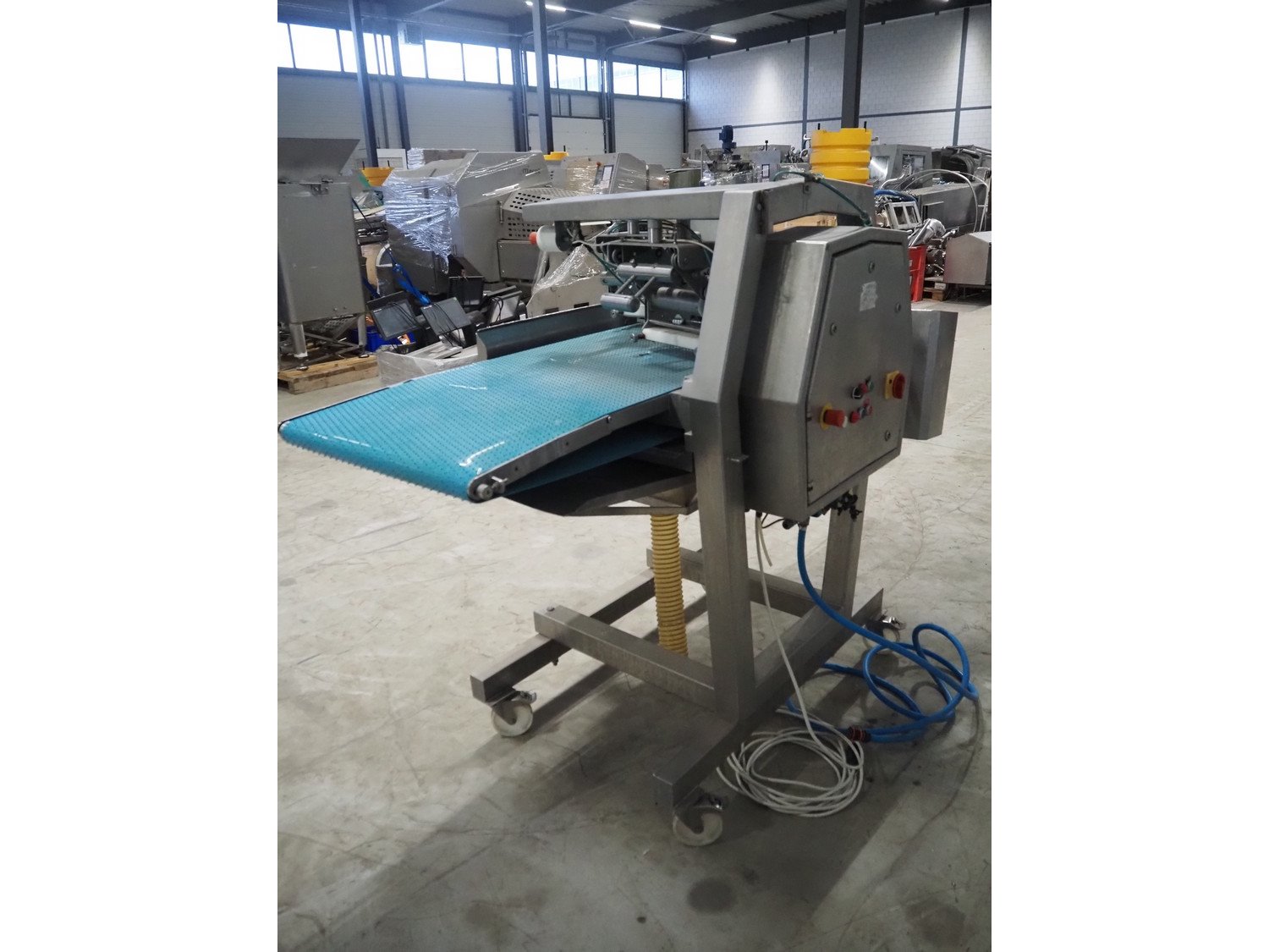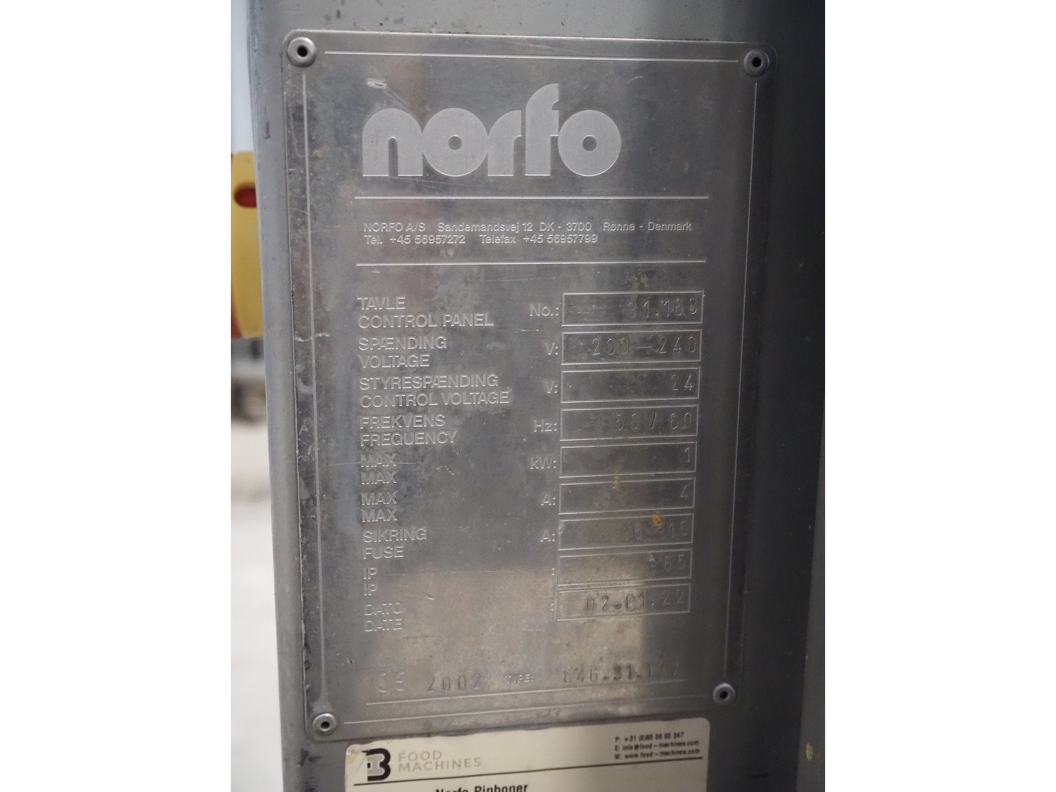 Norfo mobile pin bone remover, type: 846.31.137, number: 31.168, year of construction: 2002, 200-240 V, 50/60 Hz, 4 A, 1 kW, plastic belt, belt width: 650 mm, total dimensions: 2150 mm x 1060 mm x 1400 mm. Kavel locatie: Looyenbeemd 11, 5652 BH Eindhoven, Nederland