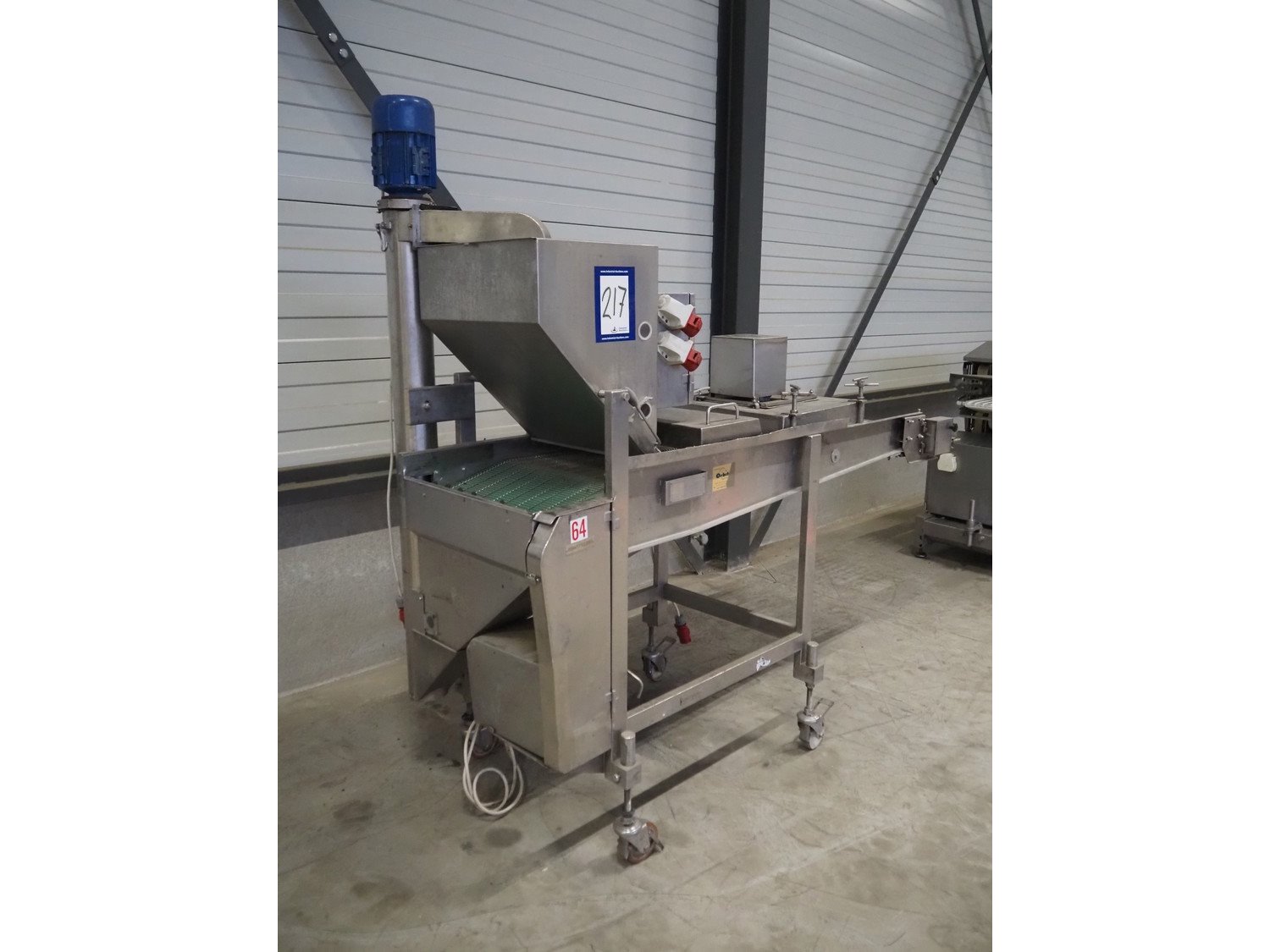 Tetra Laval Food / Koppens breading machine, type: PR 600, machine number: 1087, year of construction: 1995, 380 V, 3 Ph, 50 Hz, s/s mesh belt, belt width: 600 mm, total dimensions: 2600 m x 900 mm x 2100 mm. Kavel locatie: Looyenbeemd 11, 5652 BH Eindhoven, Nederland