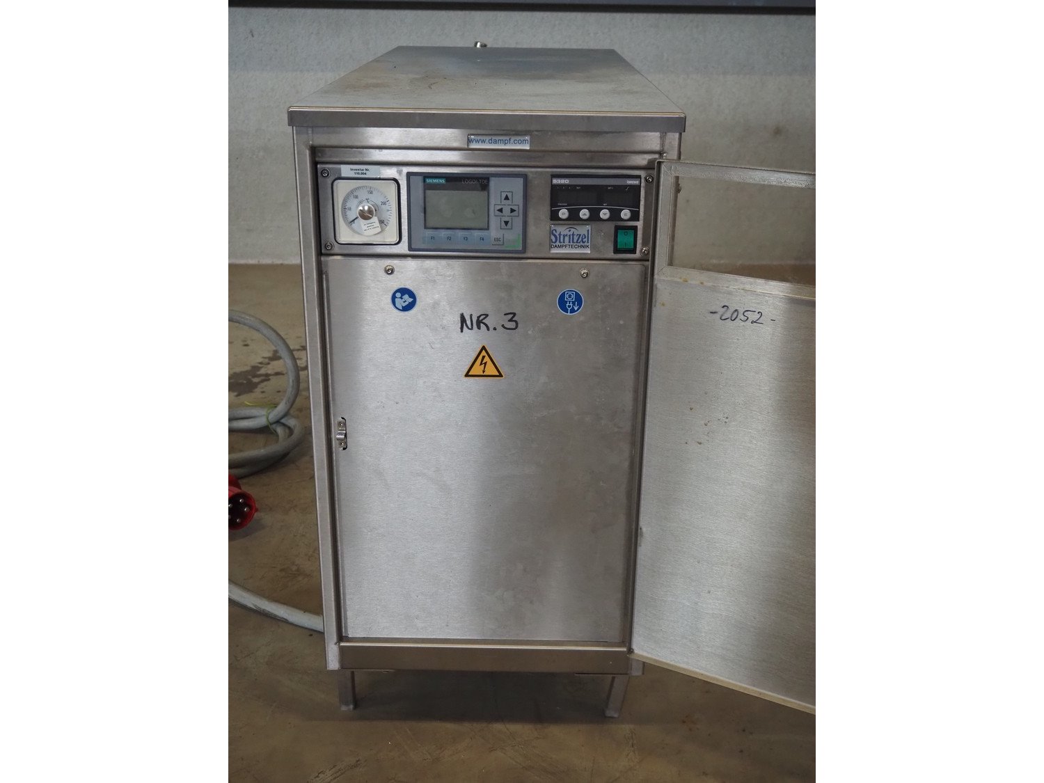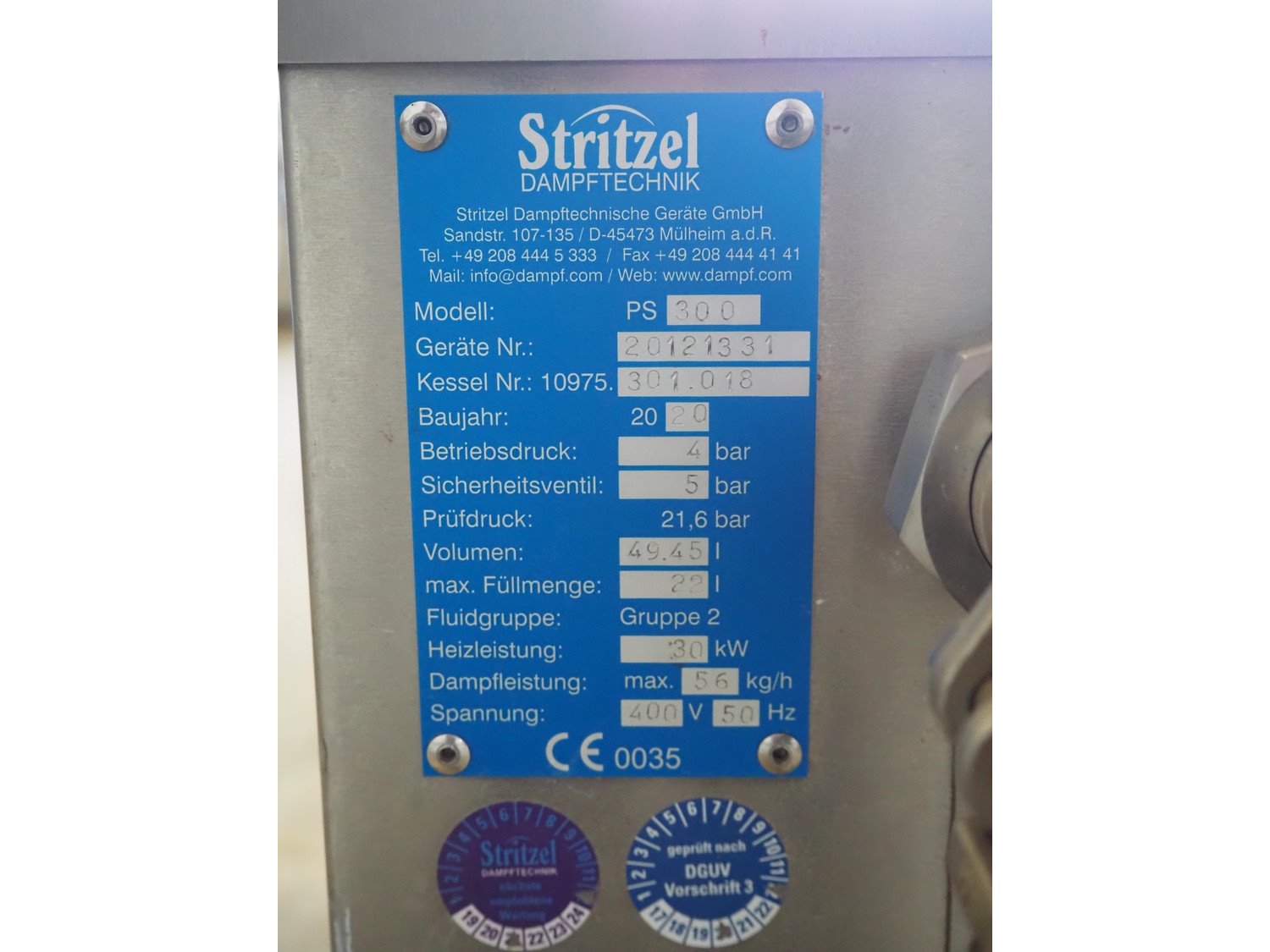 Stritzel steam generator for peelers, model: PS300, number: 20121331, year of construction: 2020, 400 V, 50 Hz, 30 kW, capacity: 56 kg per hour, dimensions: 1200 mm x 410 mm x 800 mm. Kavel locatie: Looyenbeemd 11, 5652 BH Eindhoven, Nederland