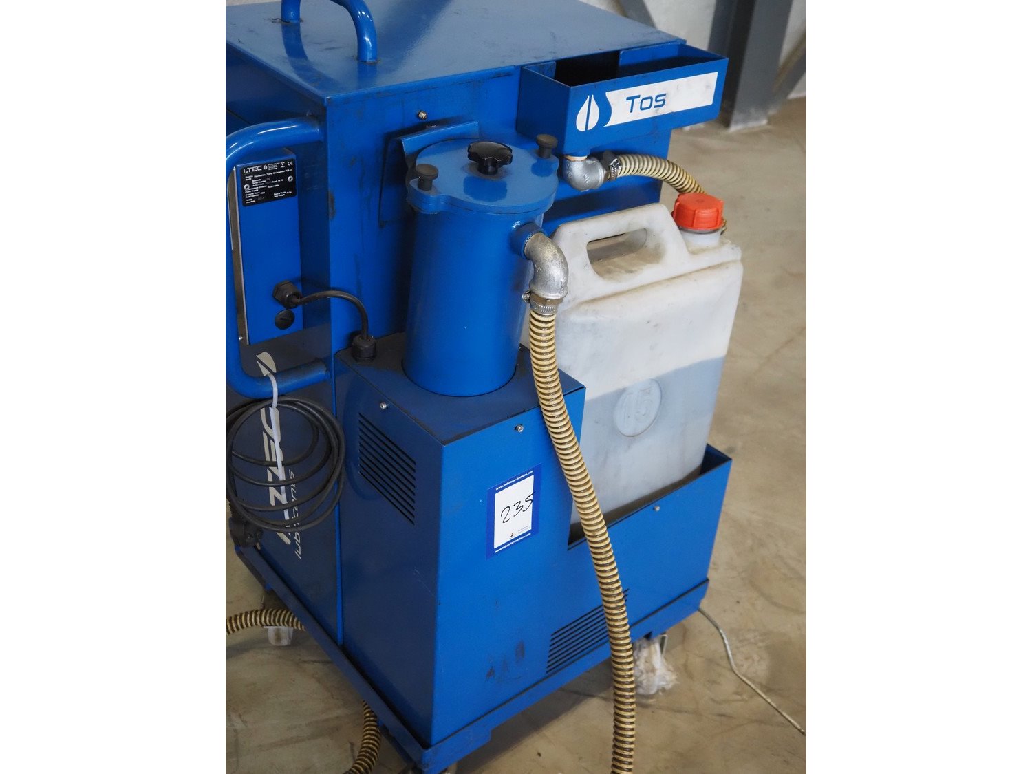 LTEC tramp oil separator, model: TOS 2.0, serial number: 232, year of construction: 30-2018, 230 V, 50 Hz, tank capacity: 105 Liter, 70 Kg, dimensions: 500 mm x 700 mm x 1000 mm. Kavel locatie: Looyenbeemd 11, 5652 BH Eindhoven, Nederland