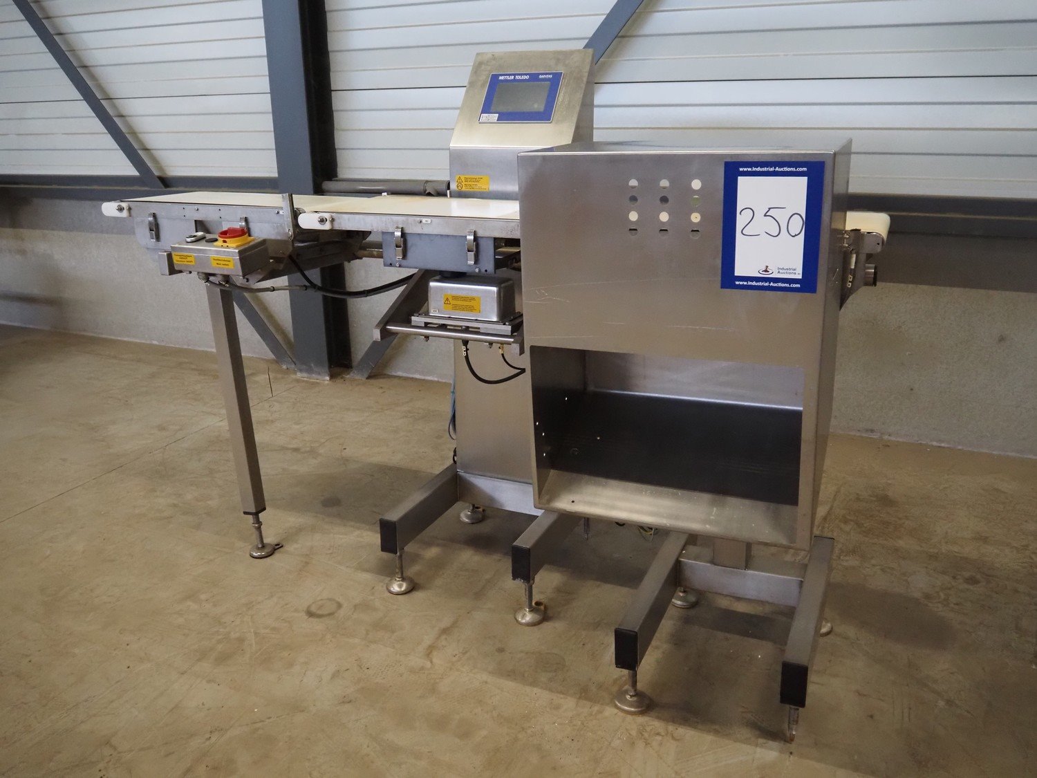 Mettler-Toledo Garvens GmbH checkweigher with rejector, type: C 3330 DMS, fabrication number: 35004922, year of construction: 2013, 1x100-240 V, 50-60 Hz, maximum belt speed: 70 m/min, throughput: 102 pcs/min, min: 200 gram, max: 1000/4800 gram, e= 1/2 gram, belt width: 300 mm, total dimensions: 1900 mm x 1100 mm x 1440 mm. Kavel locatie: Looyenbeemd 11, 5652 BH Eindhoven, Nederland