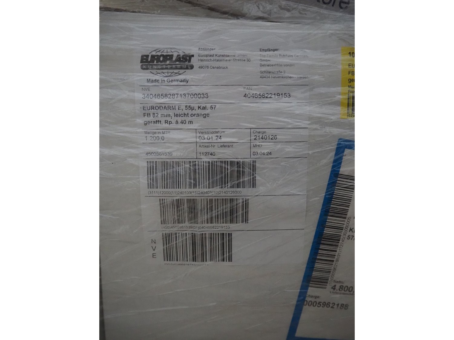 Pallet with Europlast casings, dimensions: 1200 mm x 800 mm x 1100 mm. Kavel locatie: Looyenbeemd 11, 5652 BH Eindhoven, Nederland