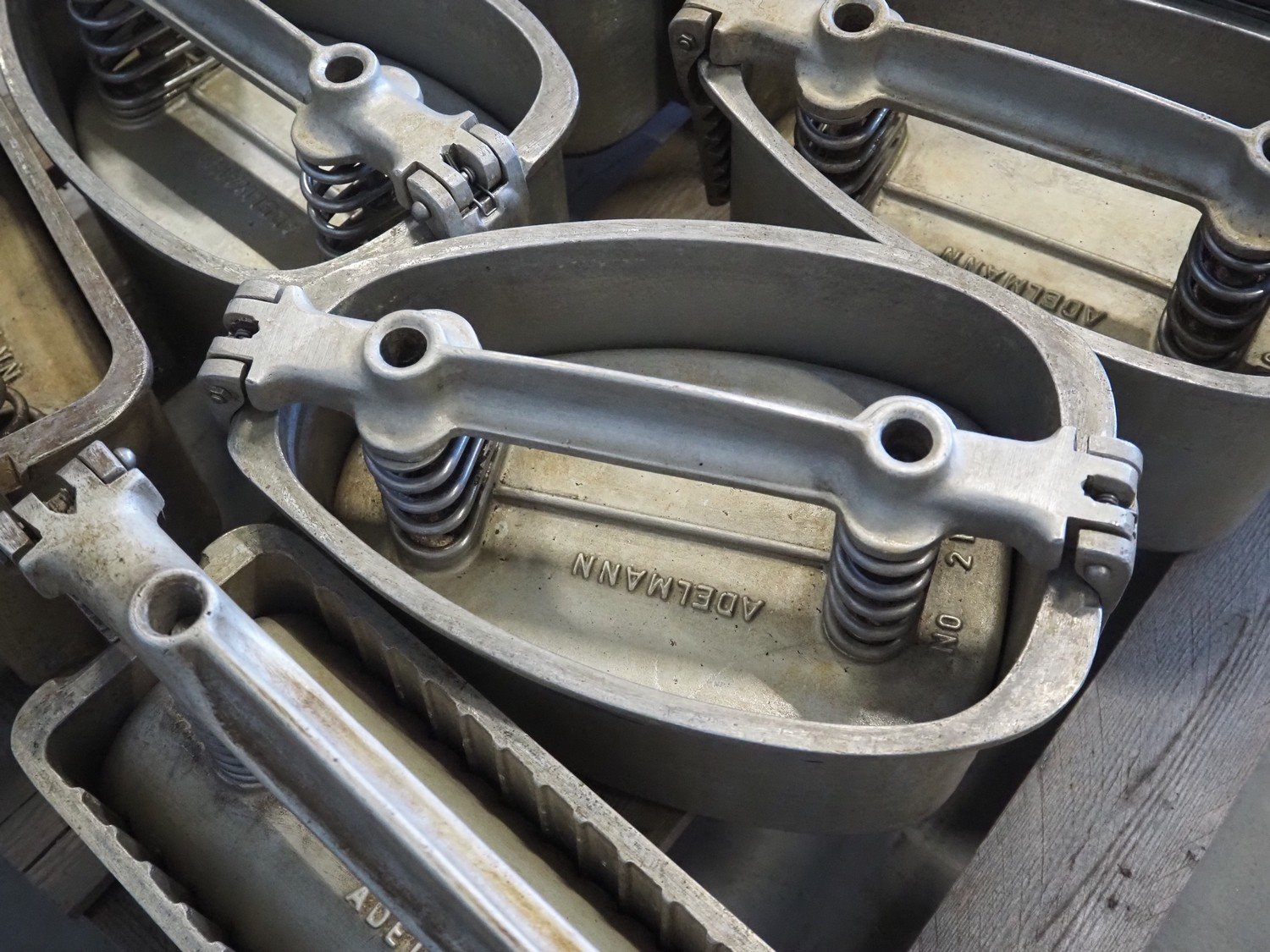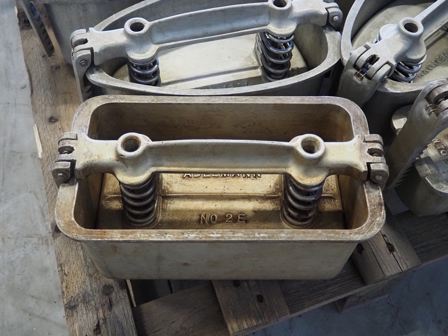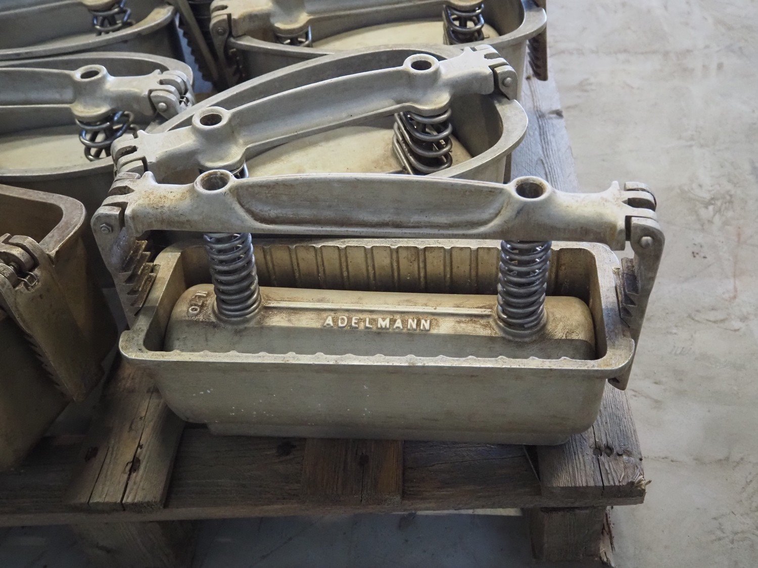 Pallet with various Adelmann ham moulds, dimensions moulds: 310 mm x 150 mm x 100 mm, 330 mm x 220 mm x 150 mm and 330 mm x 180 mm x 170 mm, total dimensions pallet: 1200 mm x 800 mm x 300 mm. Kavel locatie: Looyenbeemd 11, 5652 BH Eindhoven, Nederland