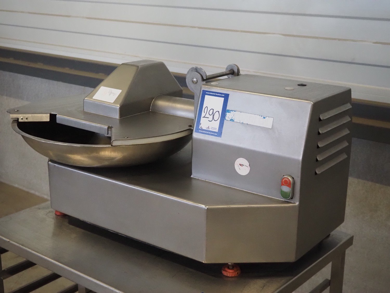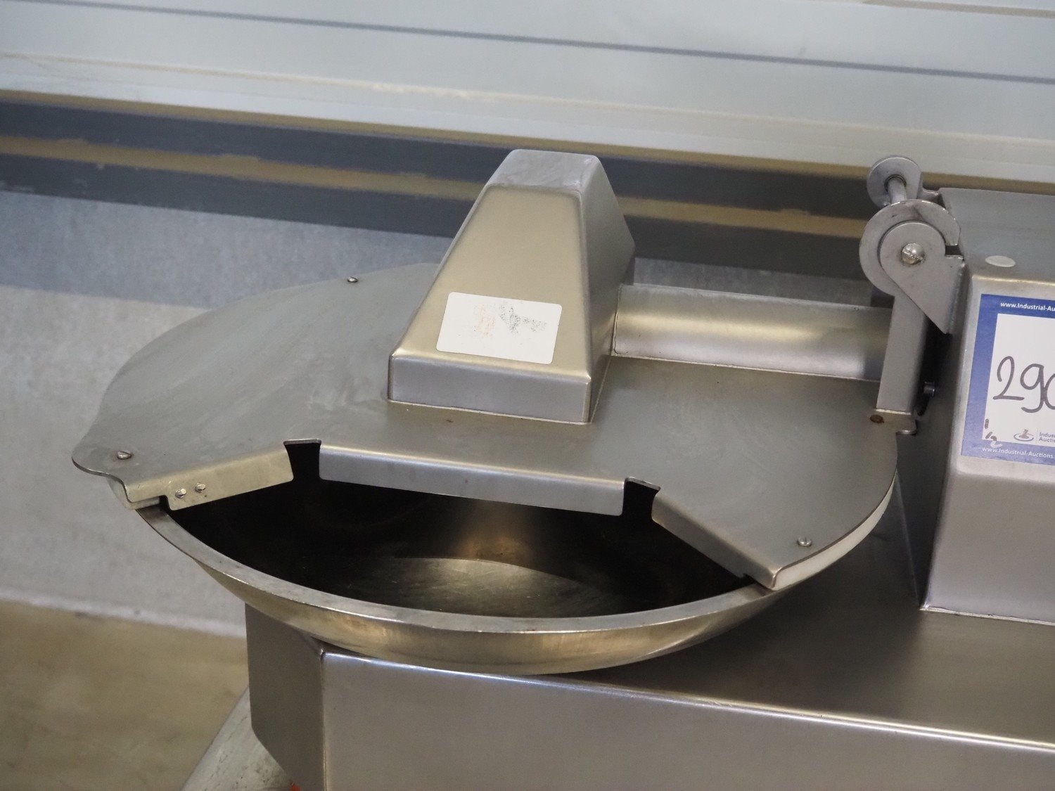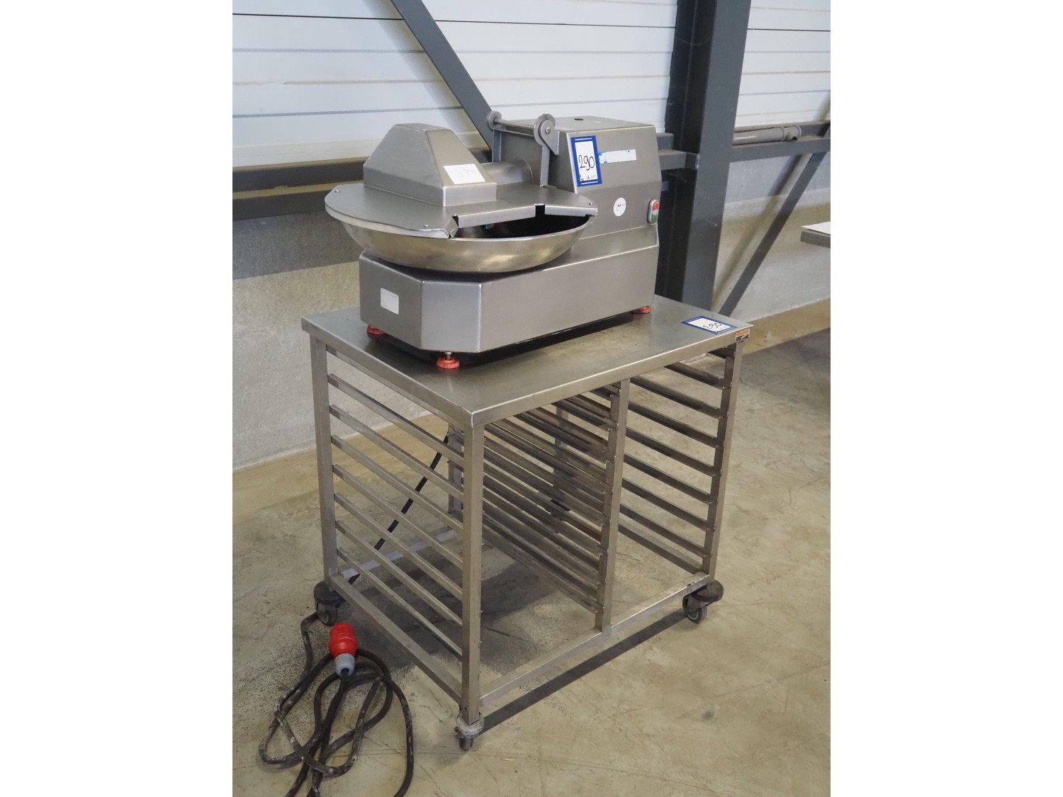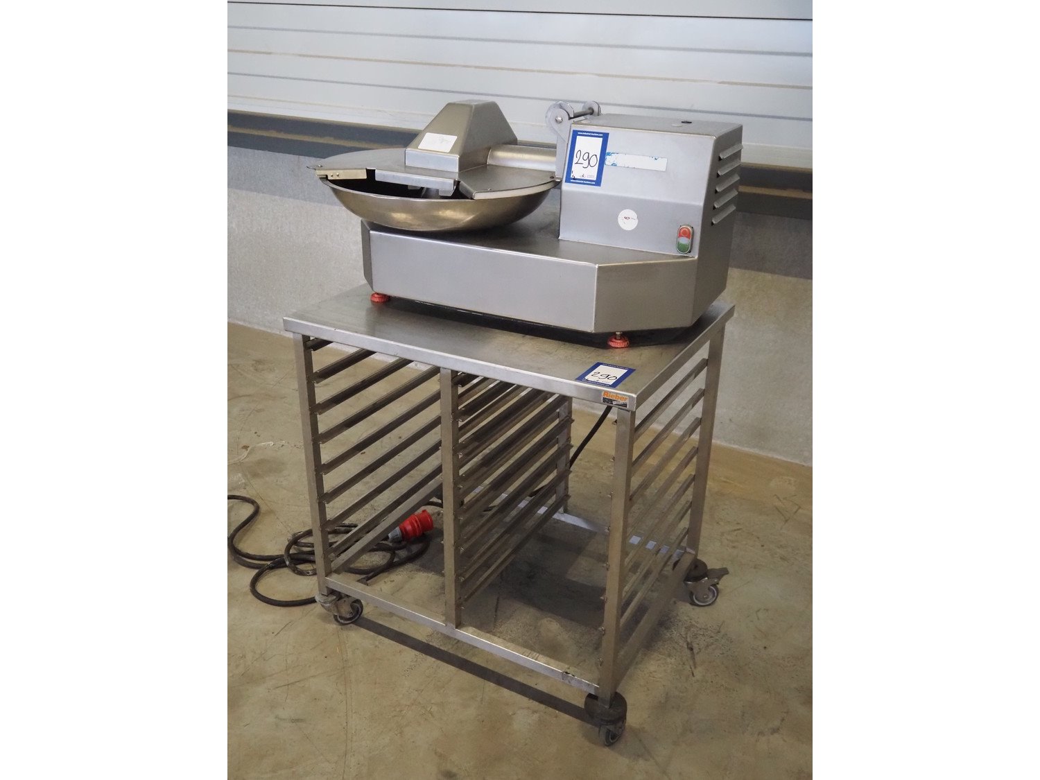 Scharfen cutter on s/s trolley, type: TC11, number: 2143033, year of construction: 2014, 400 V, 3.6/5.1 A, 1400/1800 W, s/s bowl, volume: 11 liter, dimensions cutter: 850 mm x 500 mm x 580 mm, dimensions trolley: 770 mm x 580 mm x 800 mm. Kavel locatie: Looyenbeemd 11, 5652 BH Eindhoven, Nederland