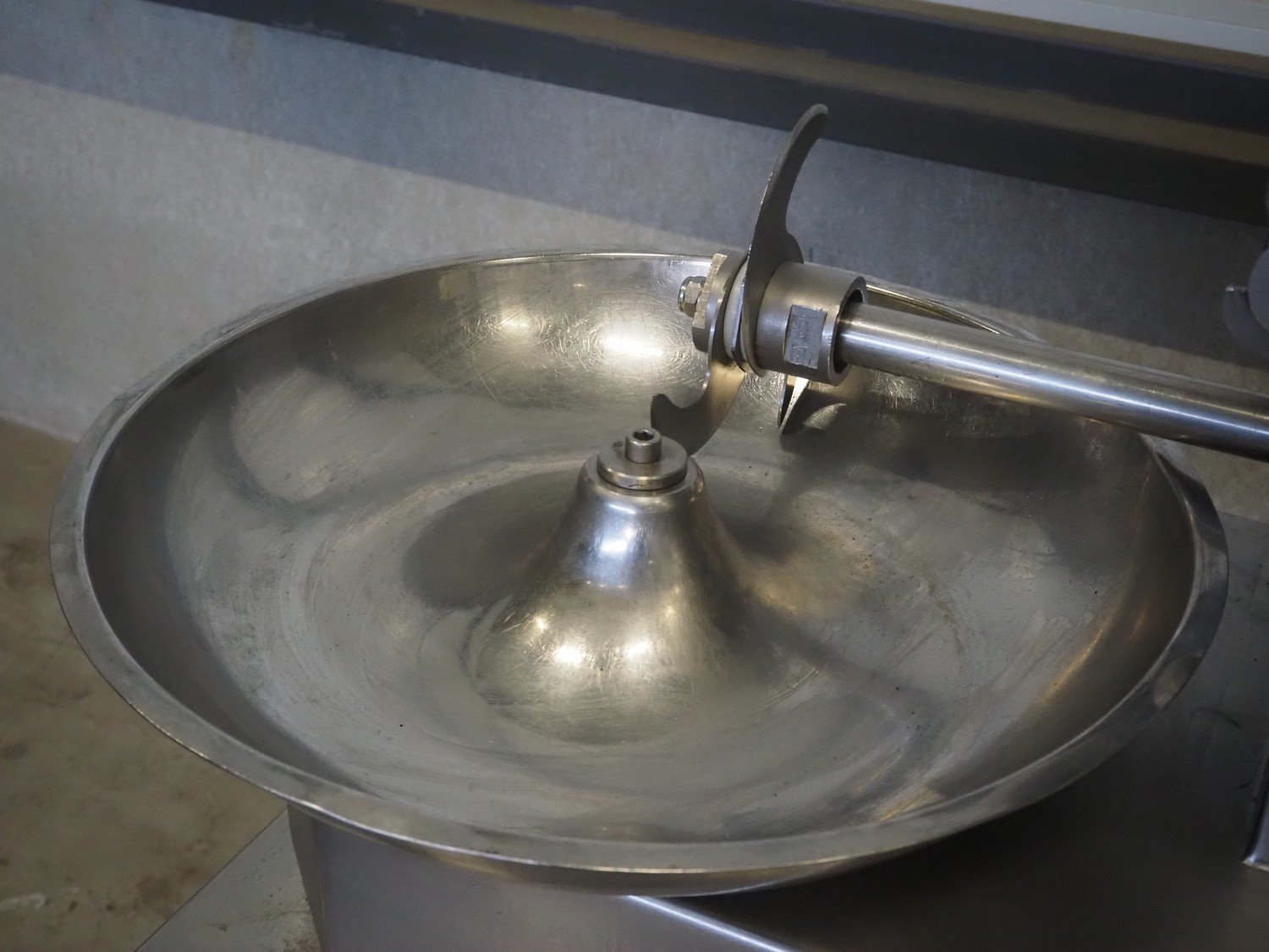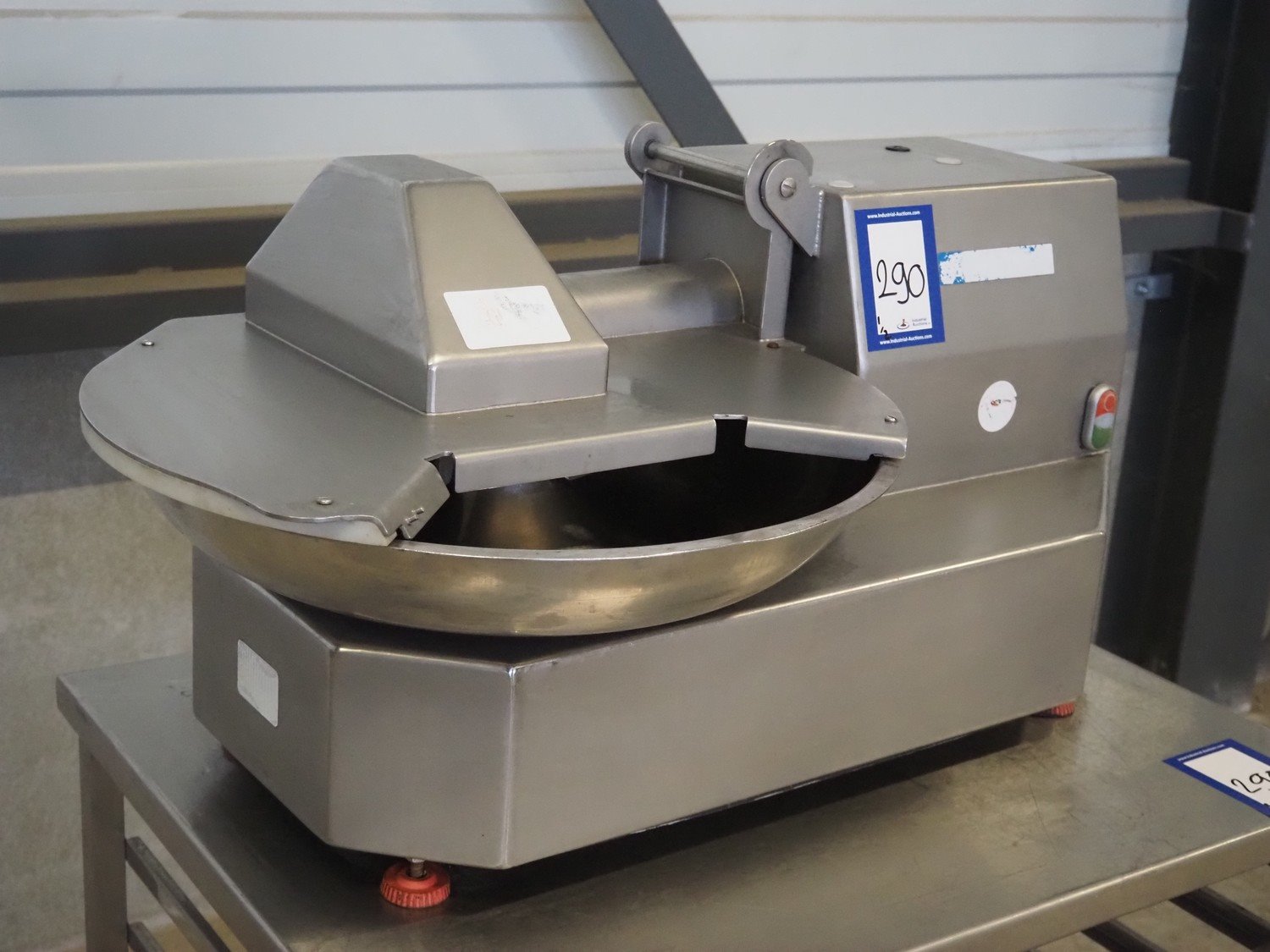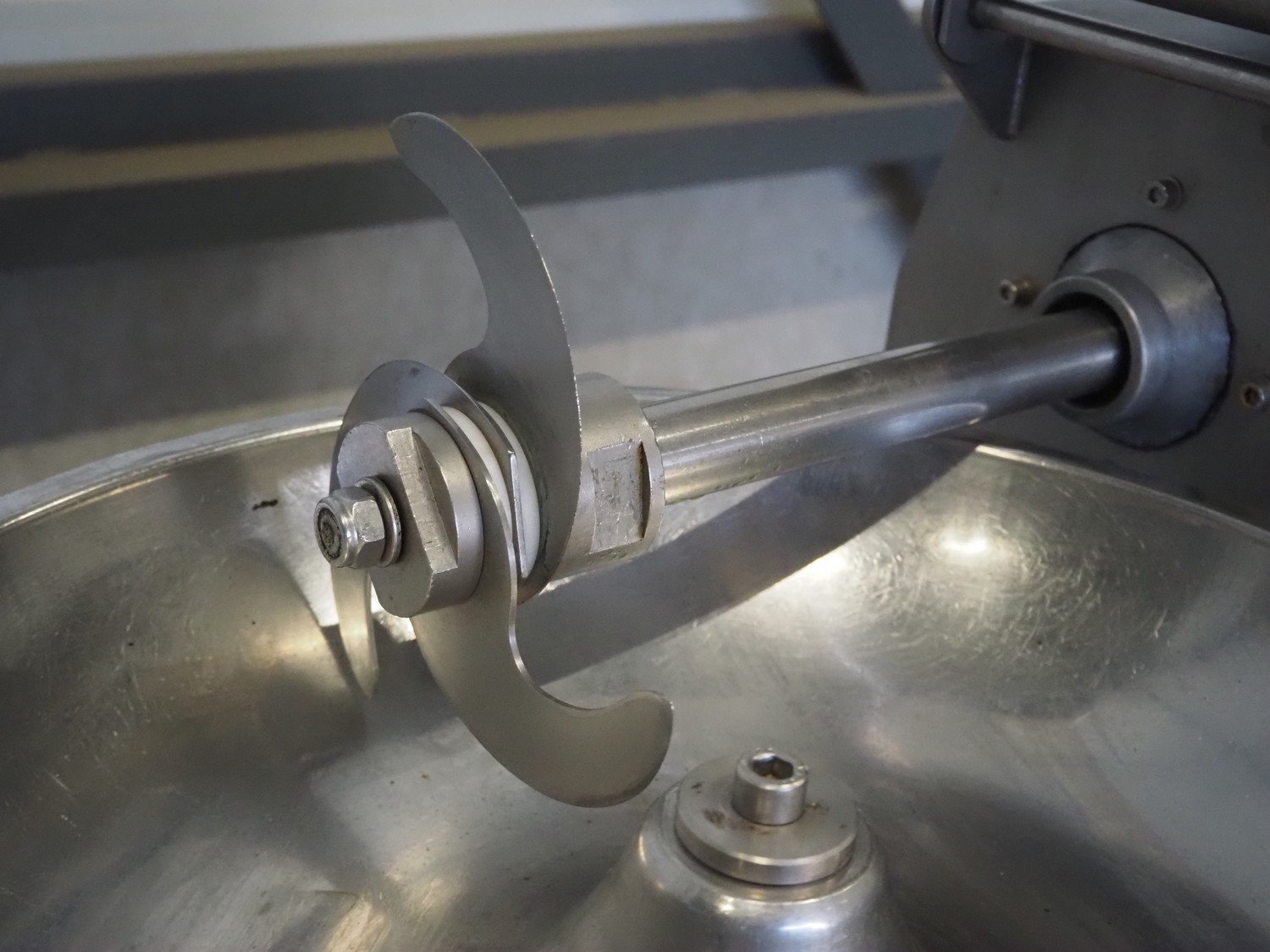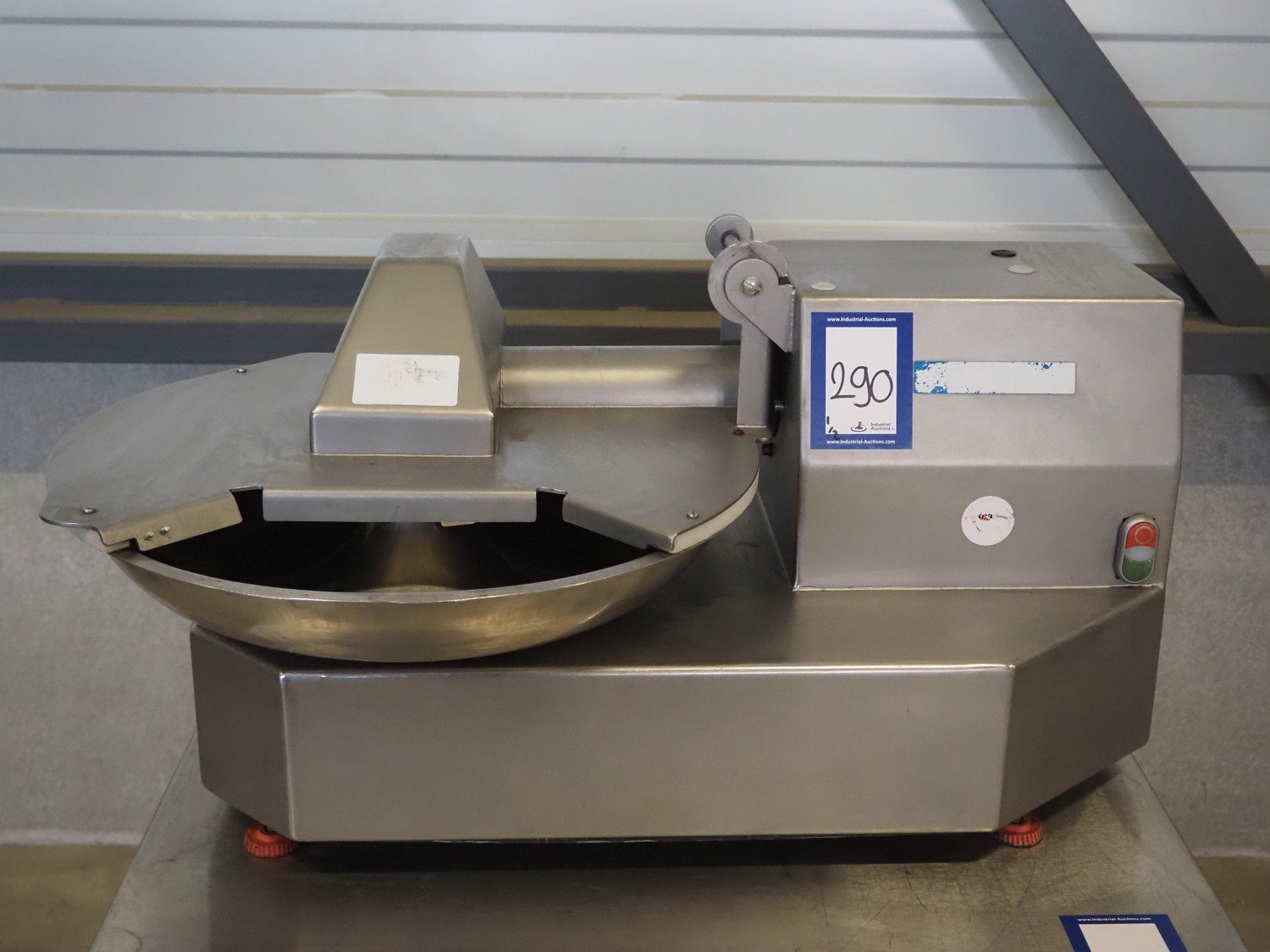 Scharfen cutter on s/s trolley, type: TC11, number: 2143033, year of construction: 2014, 400 V, 3.6/5.1 A, 1400/1800 W, s/s bowl, volume: 11 liter, dimensions cutter: 850 mm x 500 mm x 580 mm, dimensions trolley: 770 mm x 580 mm x 800 mm. Kavel locatie: Looyenbeemd 11, 5652 BH Eindhoven, Nederland