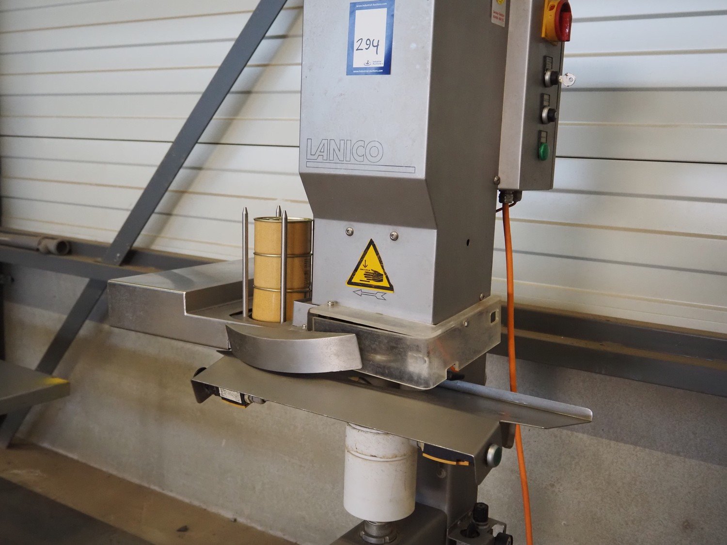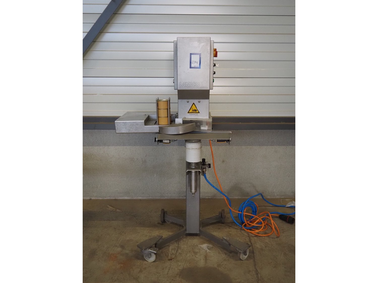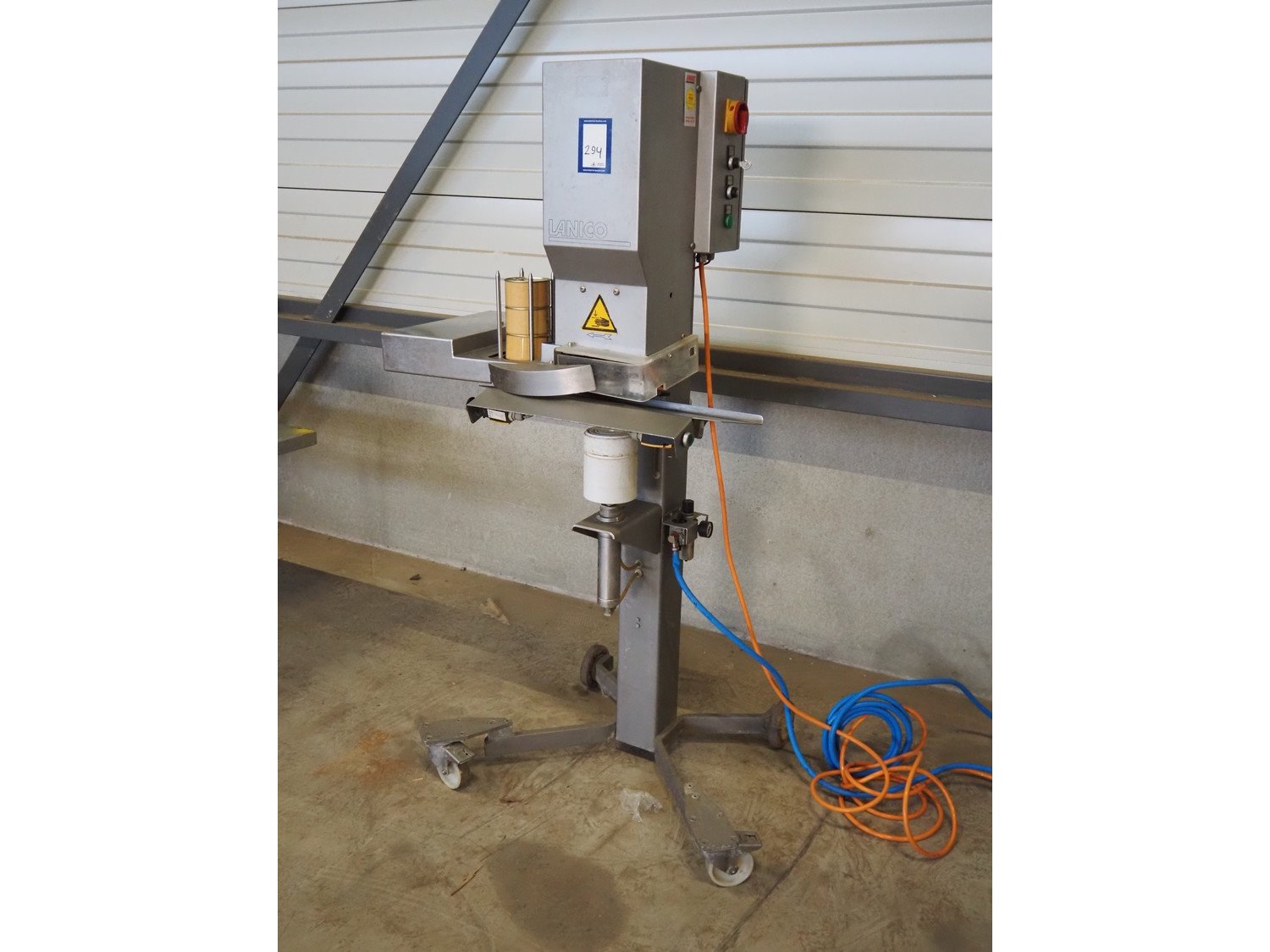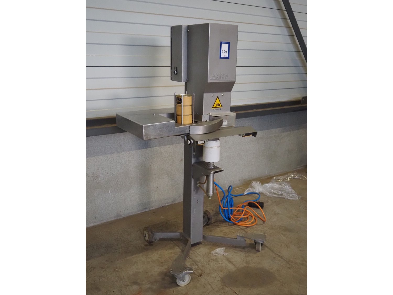 Lanico mobile can seamer, type: V110 PD, serial number: 110441, year of construction: 2012, 400 V, 3 Ph, 50 Hz, 1.8 A, air pressure: 6 bar, can diameter: 118 mm, total dimensions: 900 mm x 700 mm x 660 mm. Kavel locatie: Looyenbeemd 11, 5652 BH Eindhoven, Nederland
