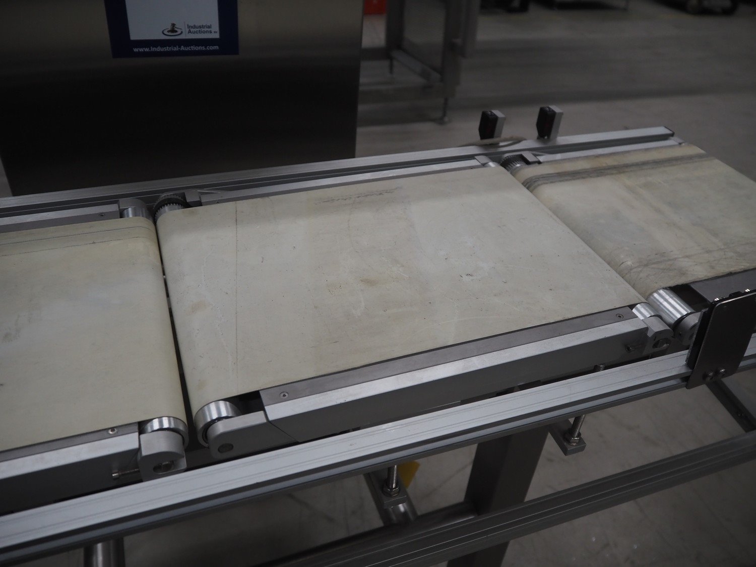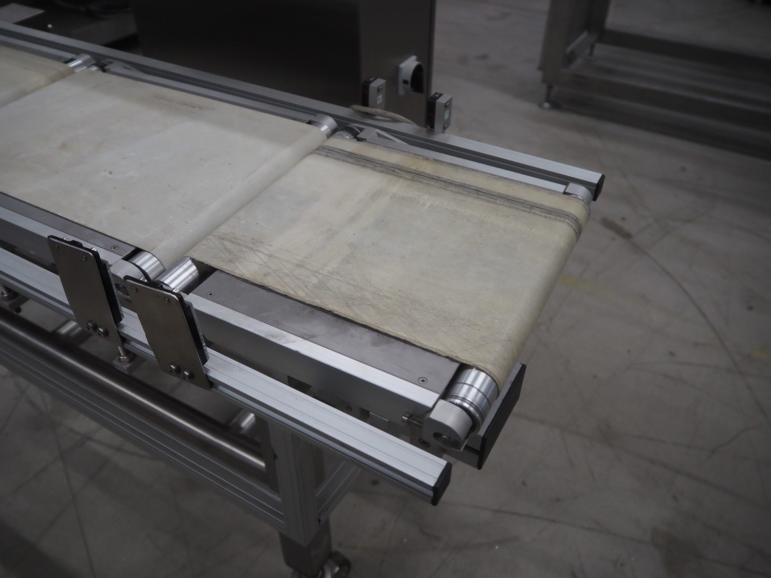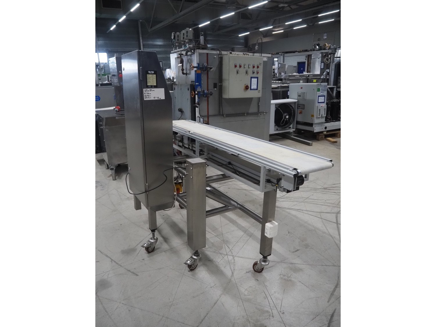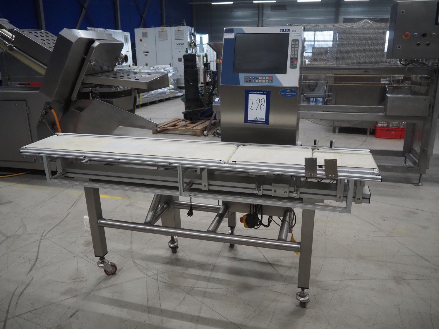 Teltek AB checkweigher, type: C60, serial number: 109230, year of construction: 2009, 230 V, 50/60 Hz, maximum capacity: 1200 g, minimum capacity: 100 g, e= 1 g, plastic belts, belt width: (3x) 250 mm, total dimensions: 1900 mm x 800 mm x 1520 mm. Kavel locatie: Looyenbeemd 11, 5652 BH Eindhoven, Nederland