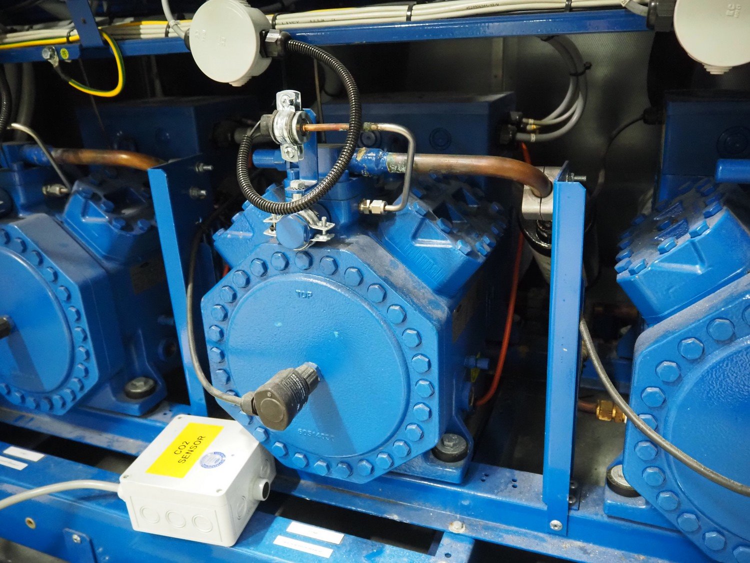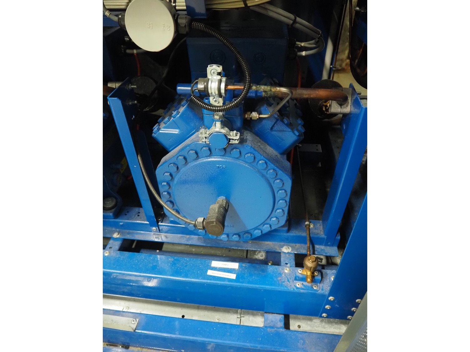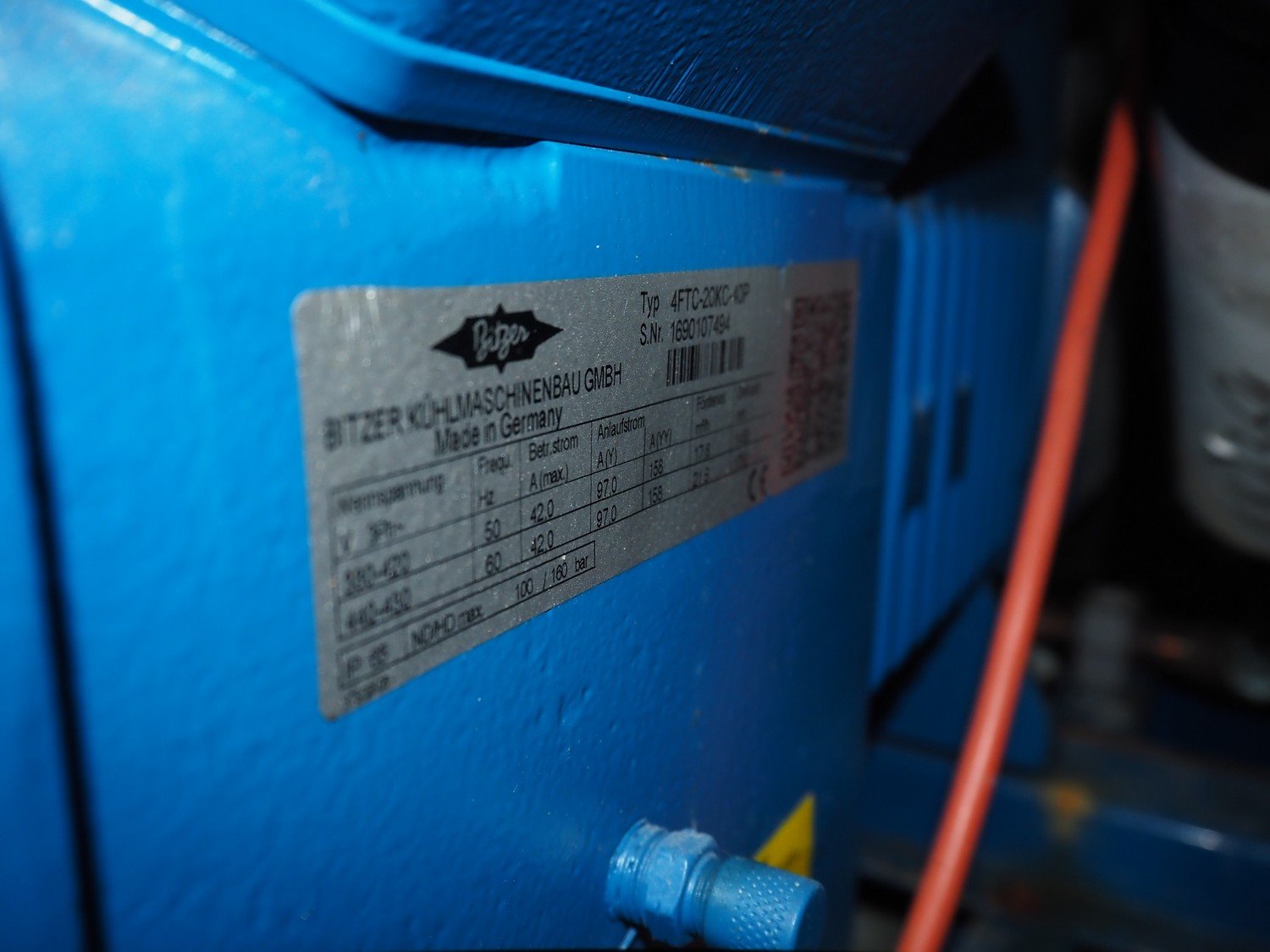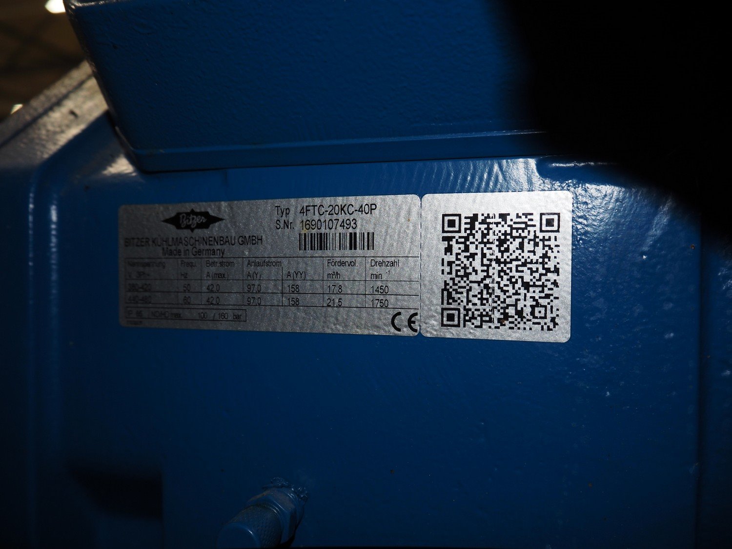 Bitzer Kühlmaschinenbau GmbH compressor rack in cabinet with 5 Bitzer Kühlmaschinenbau GmbH cooling compressors, type: (3x) 4FTC-20KC-40S, capacity: 17.8/21.5 m³ per hour, and (2x) type: 2HSL-3KB-40S, capacity: 4.34/5.21 m³ per hour , dimensions: 3800 mm x 1700 mm x 2400 mm. Kavel locatie: Looyenbeemd 11, 5652 BH Eindhoven, Nederland