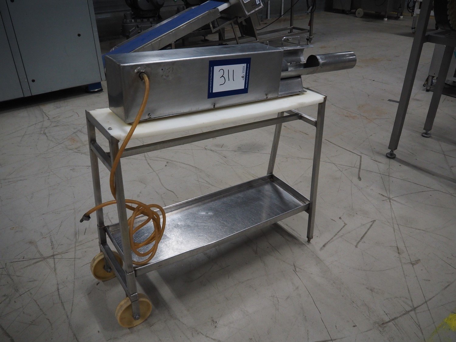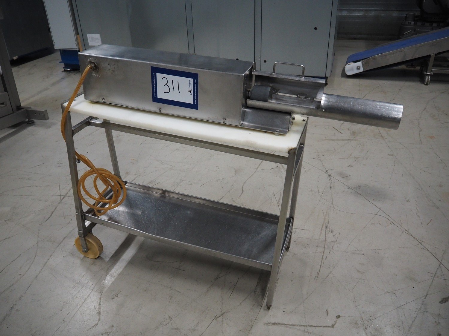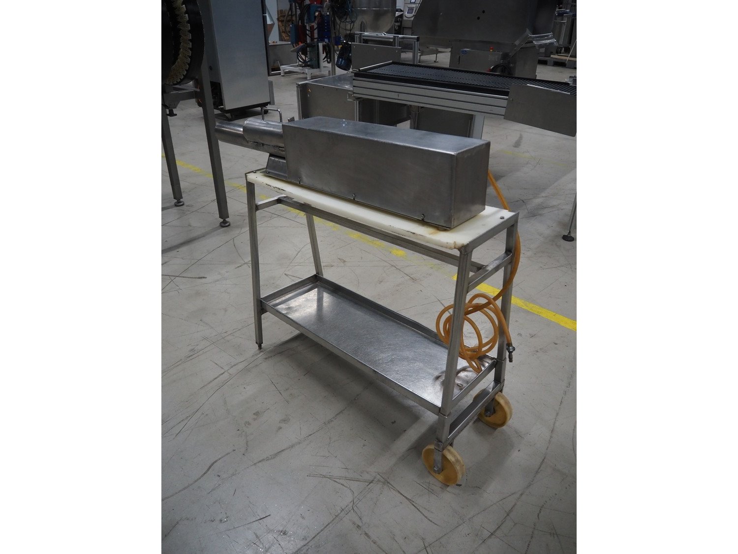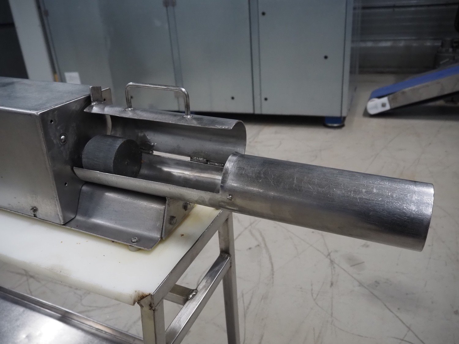 Mobile ham press, diameter pipe: 90 mm, total dimensions: 1350 mm x 350 mm x 1100 mm. Kavel locatie: Looyenbeemd 11, 5652 BH Eindhoven, Nederland