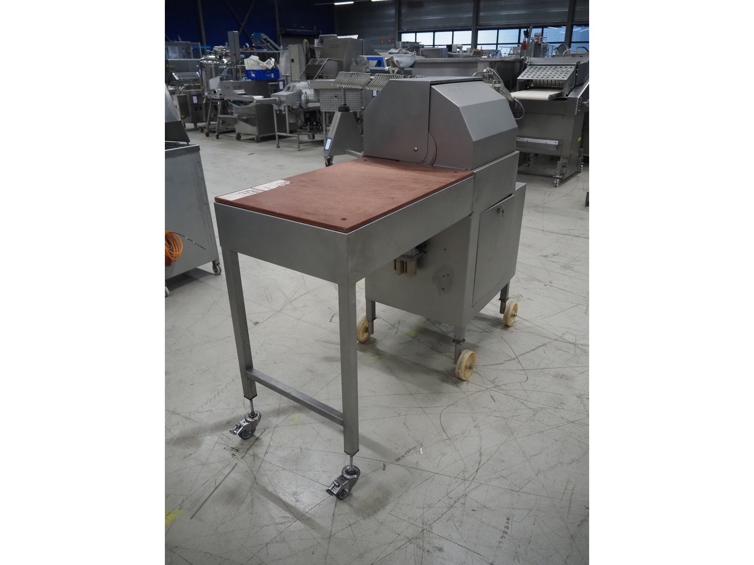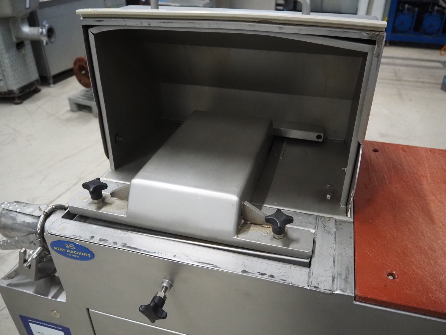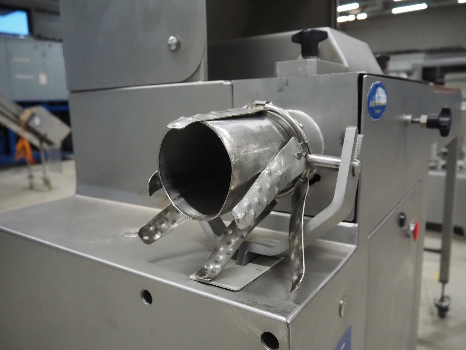 Dorit mobile meat press, type: Combi-press, clearance: Ø 100 mm x 495 mm, total dimensions: 1800 mm x 700 mm x 1420 mm. Including 2 extra outfeed pipes, dimensions outfeed pipes: (1x) 90 mm and (1x) 120 mm. Kavel locatie: Looyenbeemd 11, 5652 BH Eindhoven, Nederland