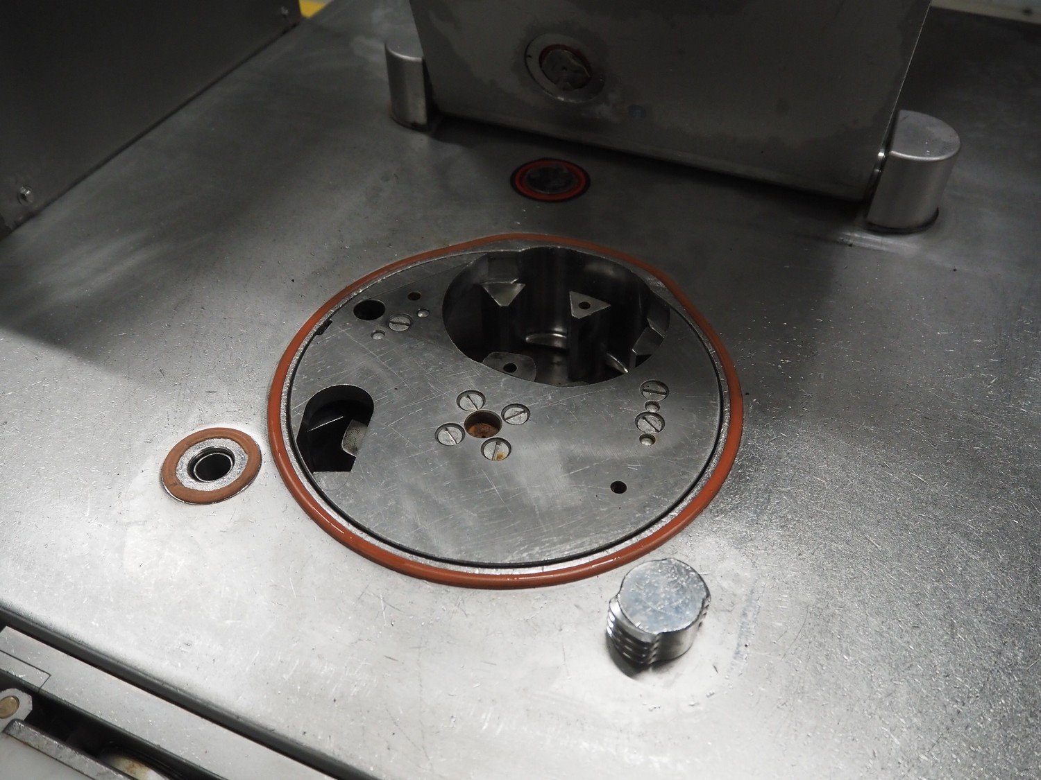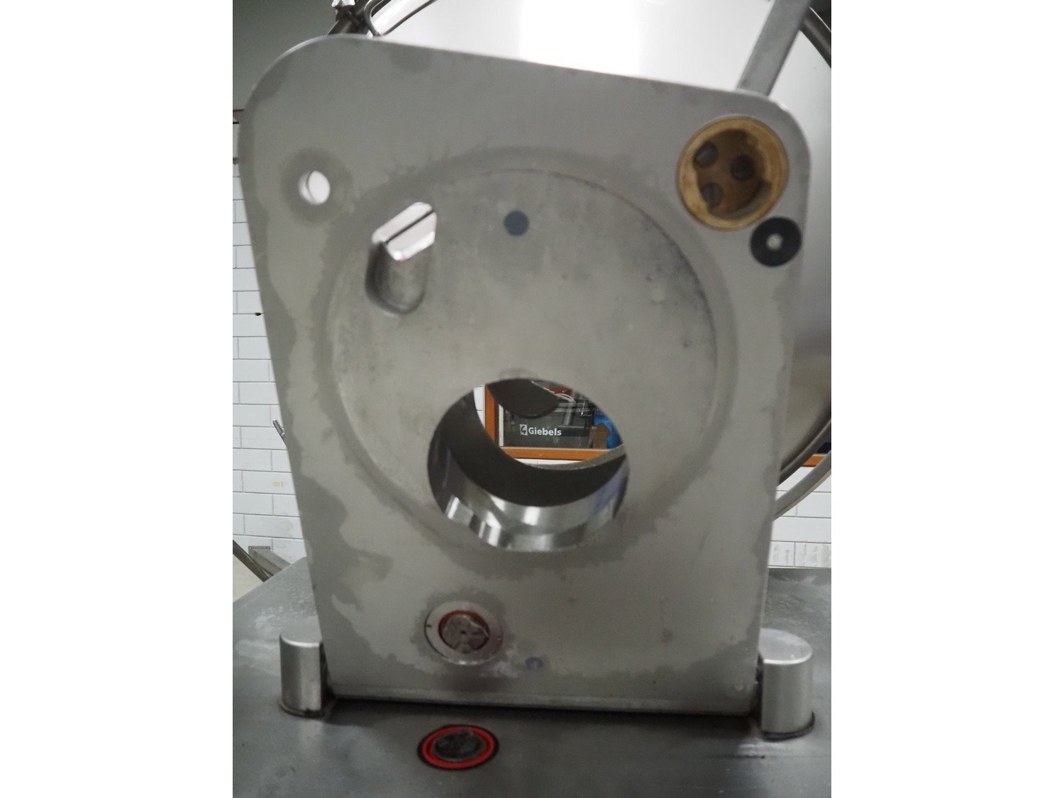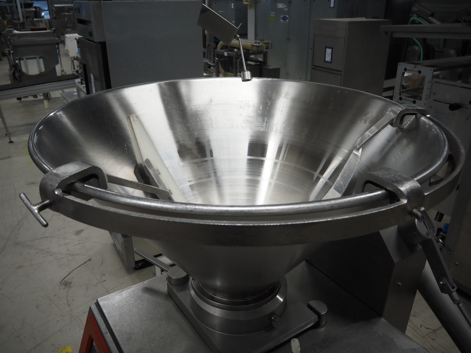 Karl Schnell GmbH & Co. vacuum filling machine with lifter for 200 litre meat bins, type: 595, machine number: 21632, year of construction: 2002, 400 V, 3 Ph, 50 Hz, 18.2 A, dimensions: 1750 mm x 1950 mm x 2070 mm. Including plastic crate with extra parts. Kavel locatie: Looyenbeemd 11, 5652 BH Eindhoven, Nederland
