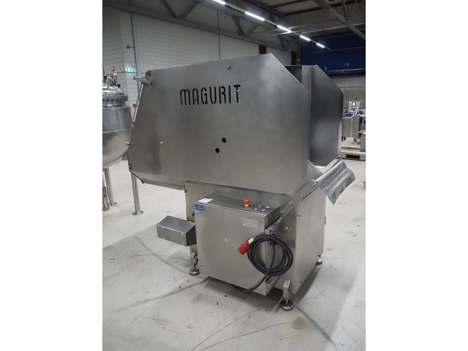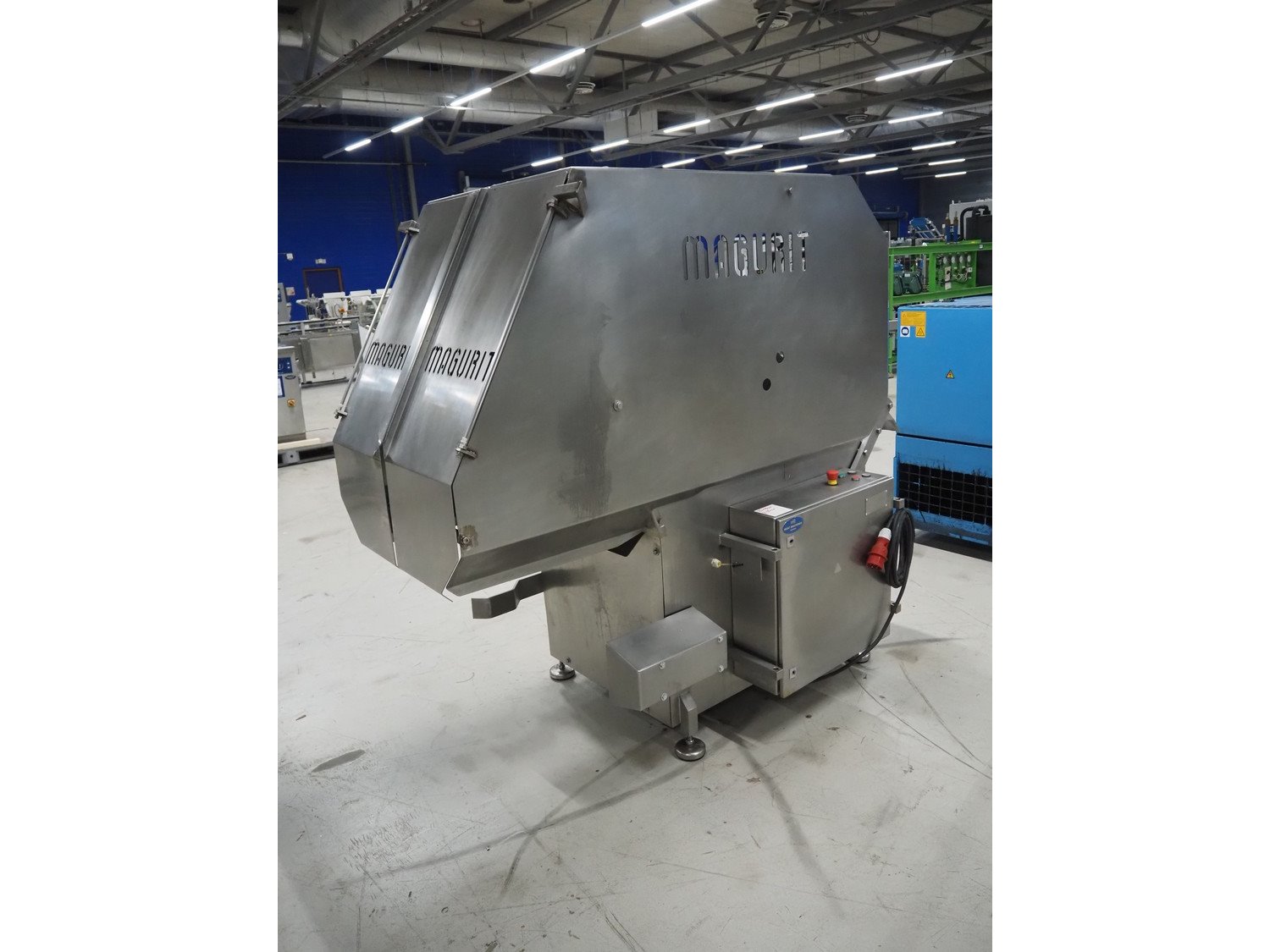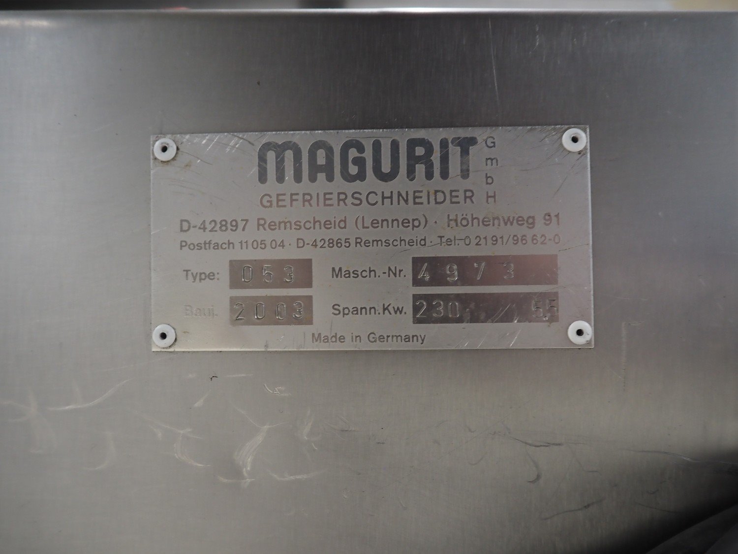 Magurit frozen block cutter, type: 053, machine number: 4973, year of construction: 2003, 230 V, 5.5 kW, maximum block size: 500 mm x 600 mm x 240 mm, total dimensions: 1850 mm x 1100 mm x 1750 mm. Kavel locatie: Looyenbeemd 11, 5652 BH Eindhoven, Nederland