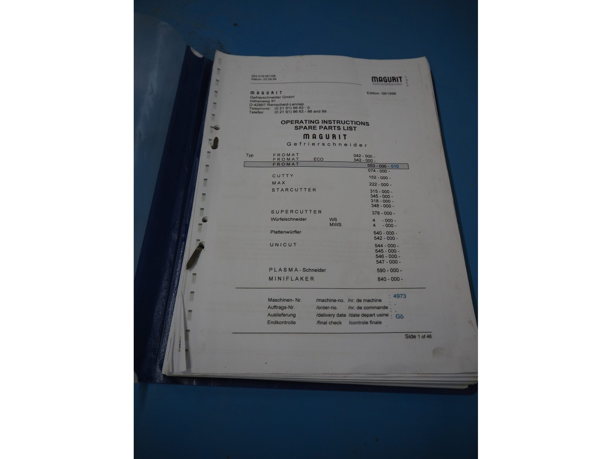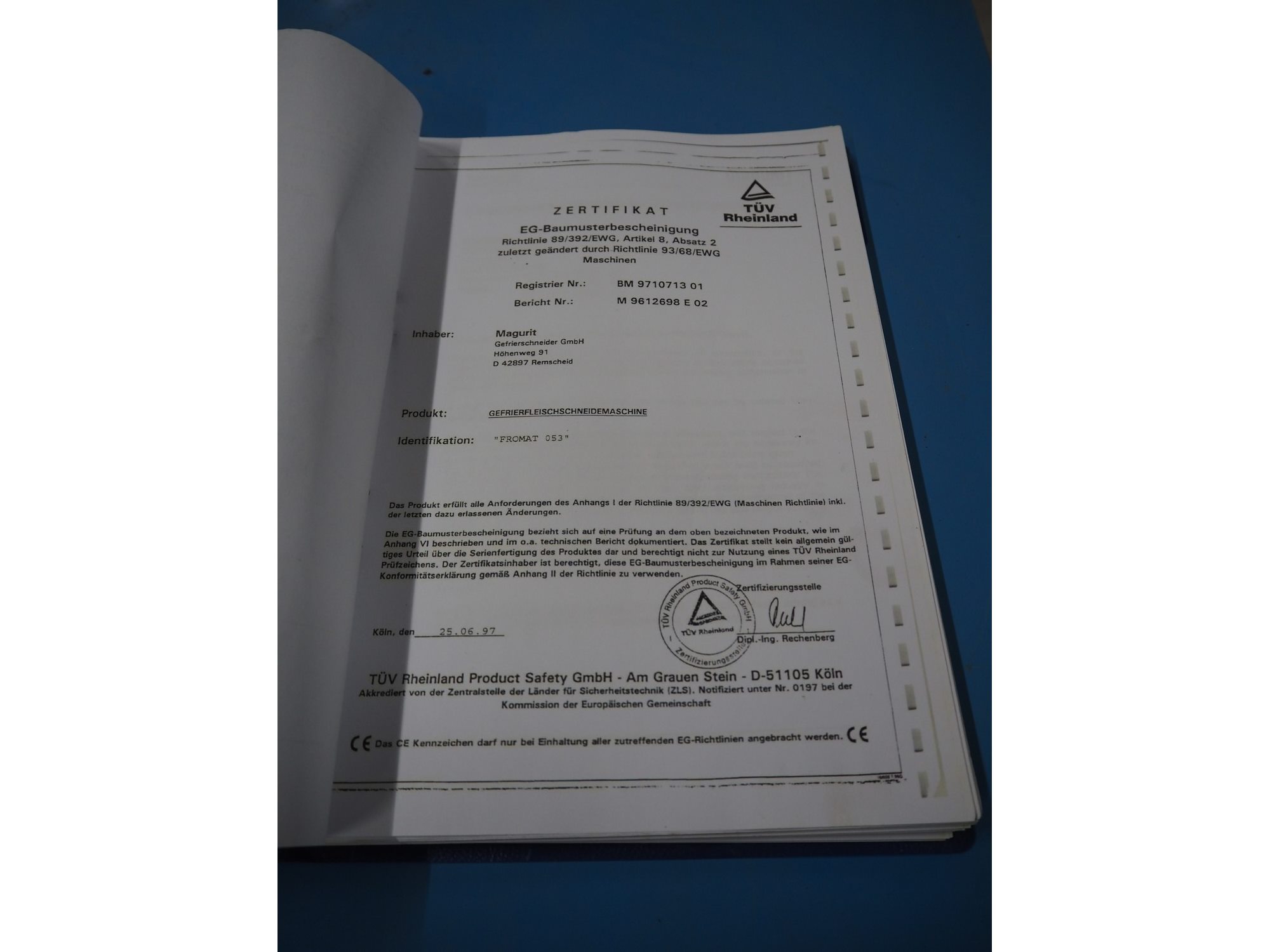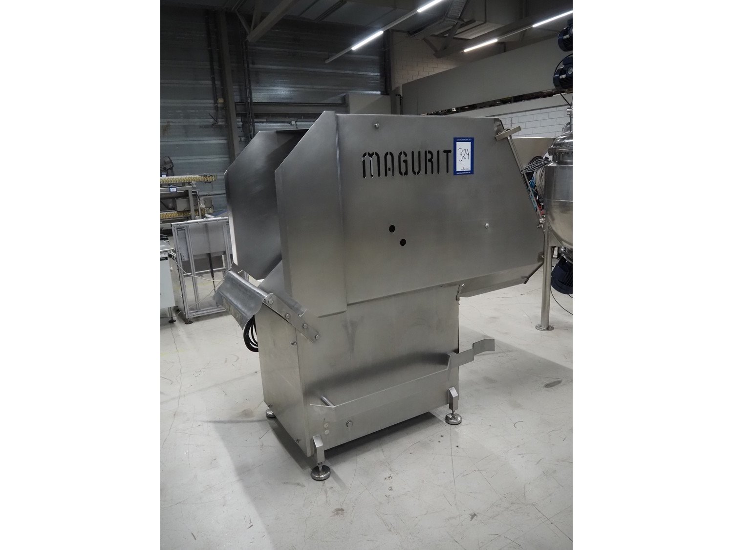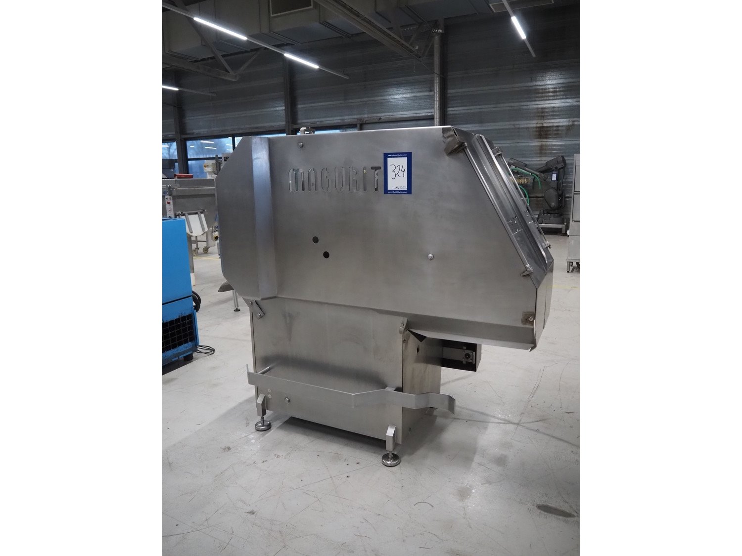 Magurit frozen block cutter, type: 053, machine number: 4973, year of construction: 2003, 230 V, 5.5 kW, maximum block size: 500 mm x 600 mm x 240 mm, total dimensions: 1850 mm x 1100 mm x 1750 mm. Kavel locatie: Looyenbeemd 11, 5652 BH Eindhoven, Nederland