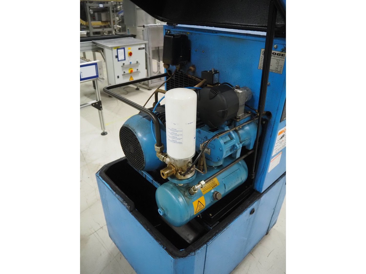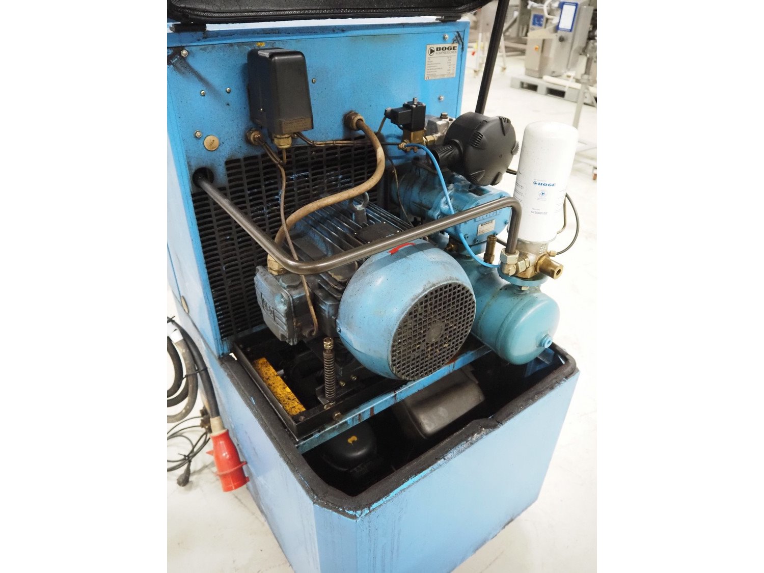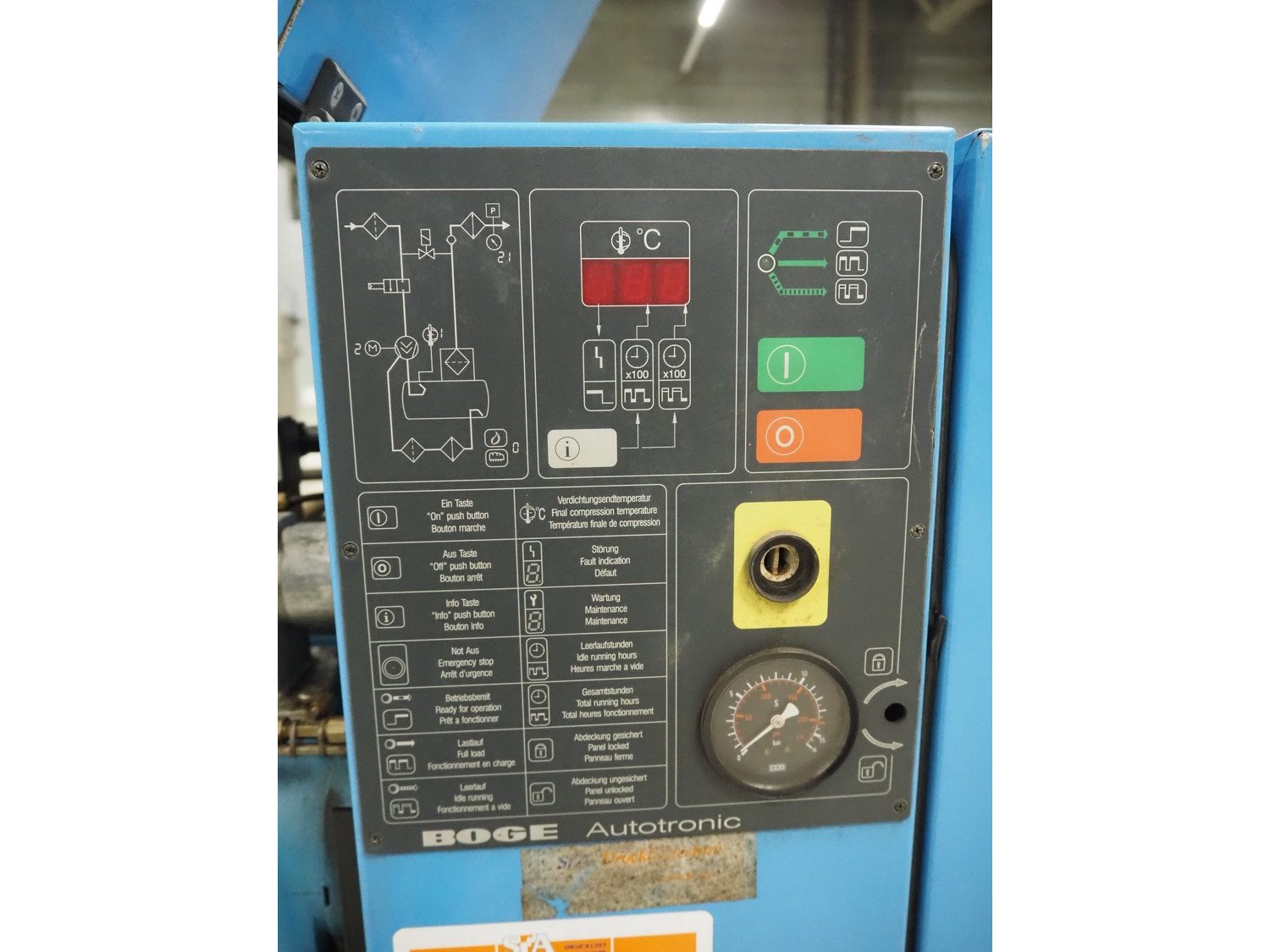 Boge piston air compressor, type: SD 15, machine number: 37330, year of construction: 2000, capacity: 1.65 m³ per minute, maximum pressure: 10 bar, dimensions: 970 mm x 700 mm x 1280 mm. Kavel locatie: Looyenbeemd 11, 5652 BH Eindhoven, Nederland