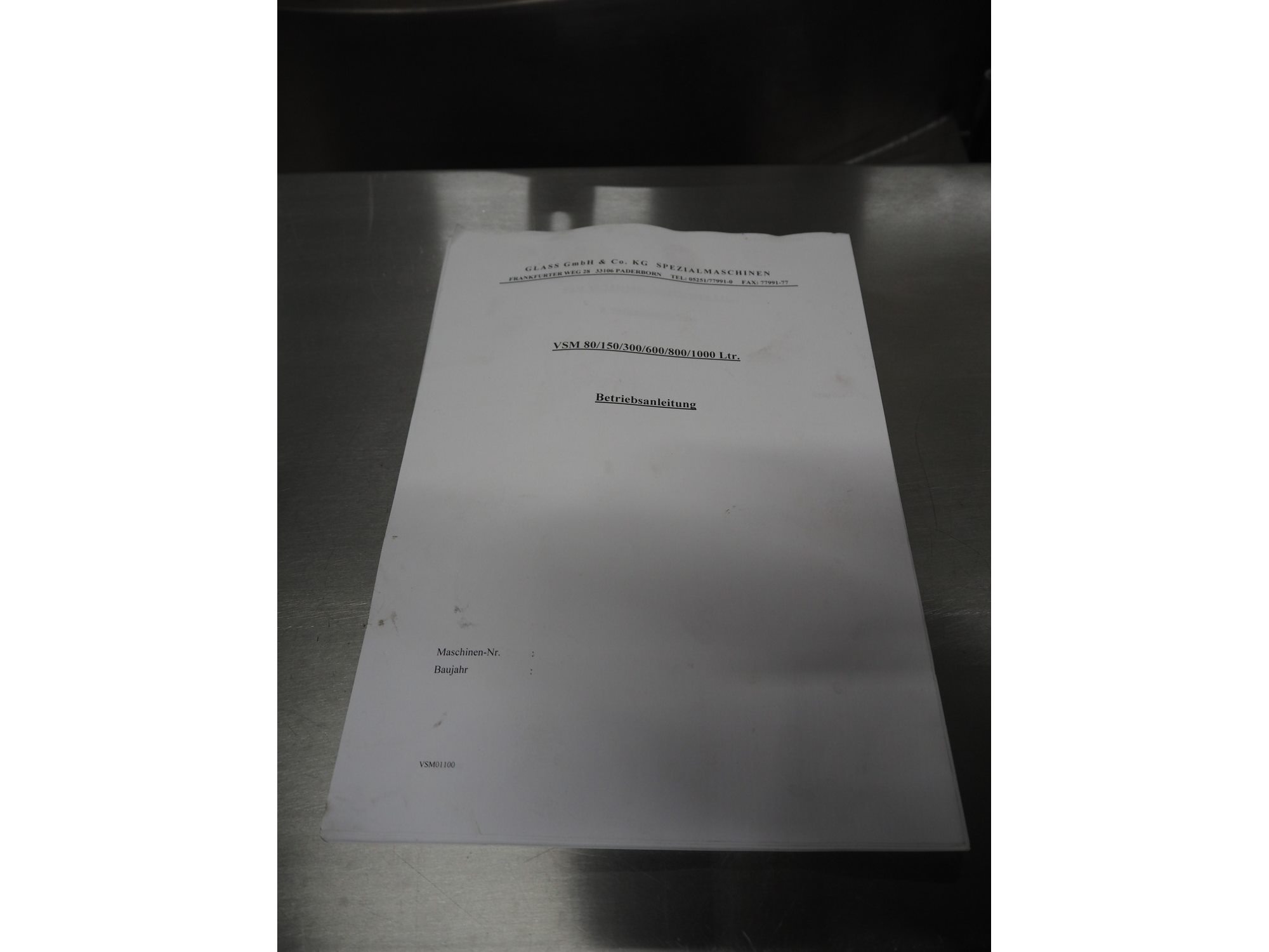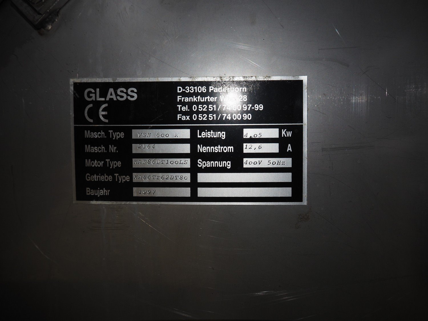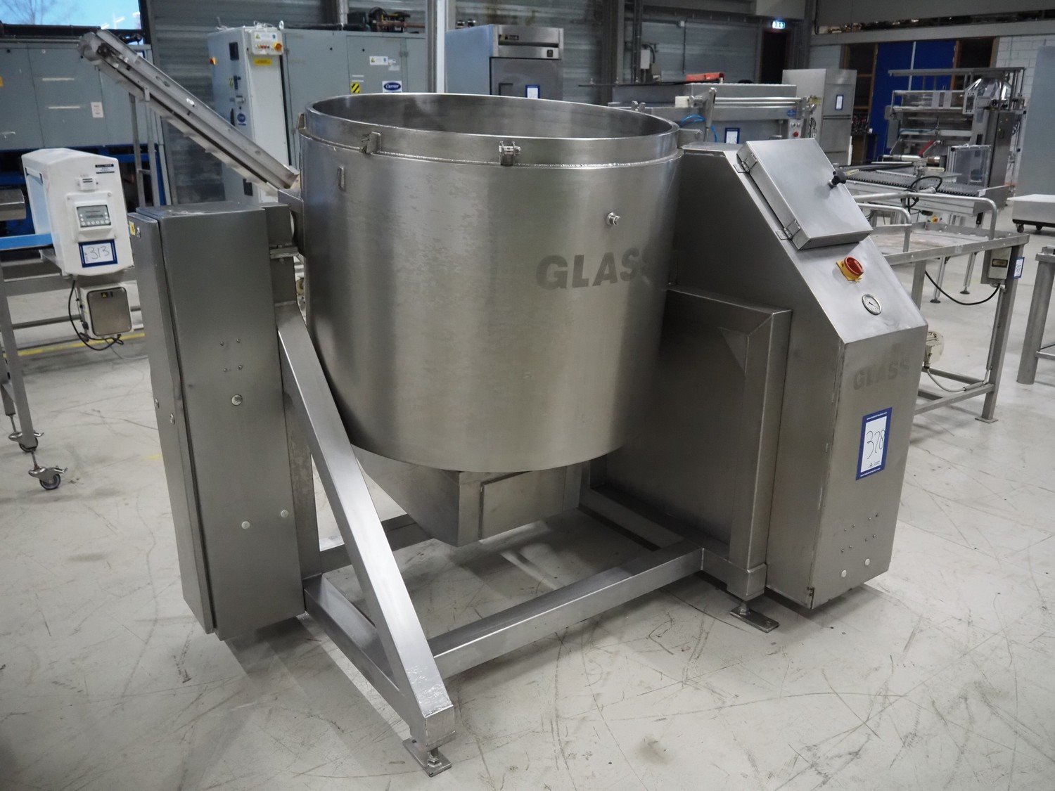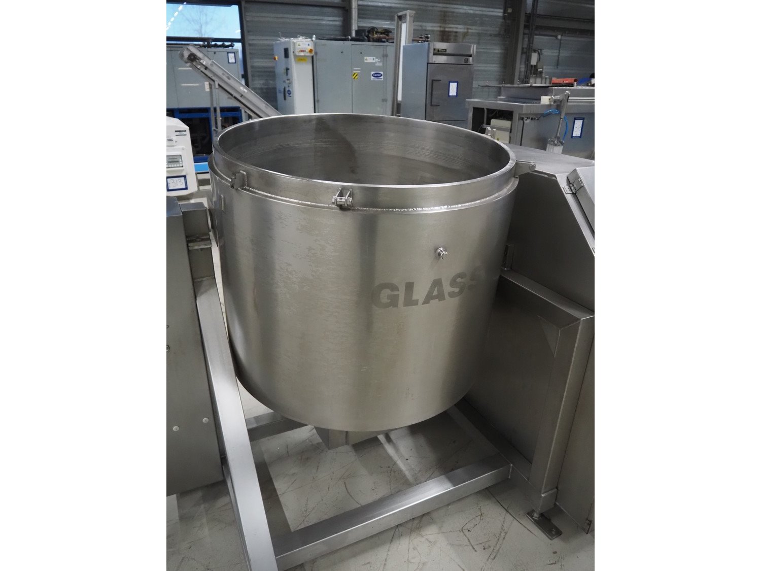 Glass tiltable mixer, type: VSM 600 K, machine number: 2164, year of construction: 1997, 400 V, 50 Hz, 12.6 A, 4.05 kW, volume: 600 litres, dimensions: 1650 mm x 650 mm x 2400 mm. Incomplete, without lid. Kavel locatie: Looyenbeemd 11, 5652 BH Eindhoven, Nederland