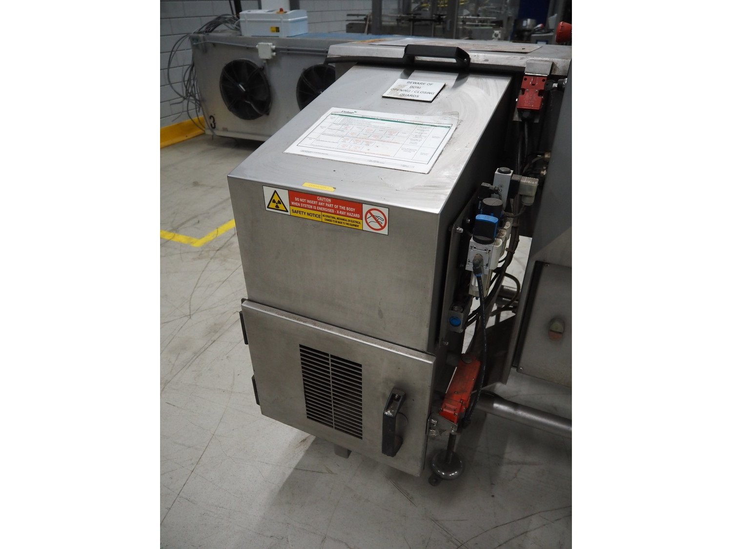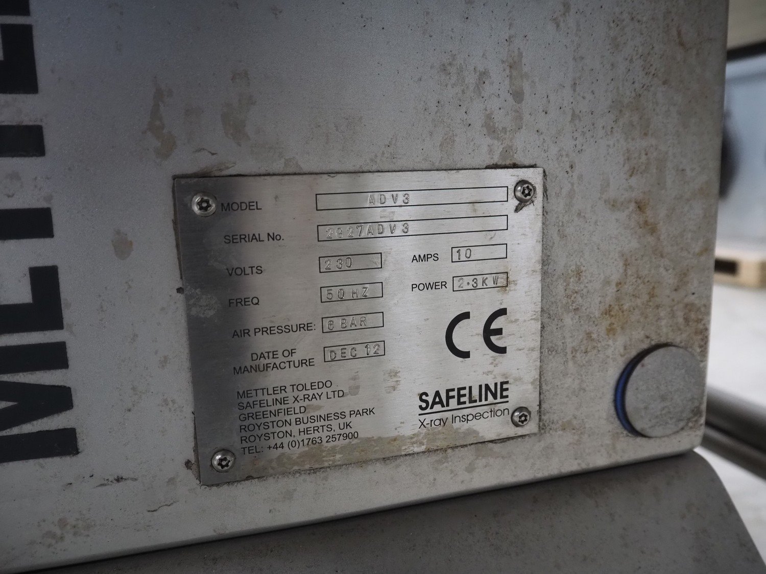 Mettler Toledo X ray scanner with rejector, model: ADV3, serial number: 2927ADV3, year of construction: 12-2012, 230 V, 50 Hz, 10 A, 2.3 kW, plastic belt, belt width: 330 mm, clearance: 360 mm x 195 mm, total dimensions: 1800 mm x 1150 mm x 1600 mm. Kavel locatie: Looyenbeemd 11, 5652 BH Eindhoven, Nederland