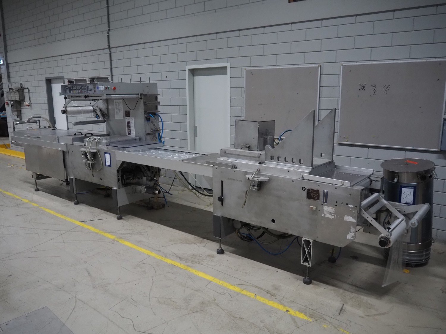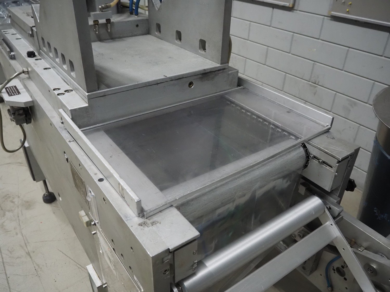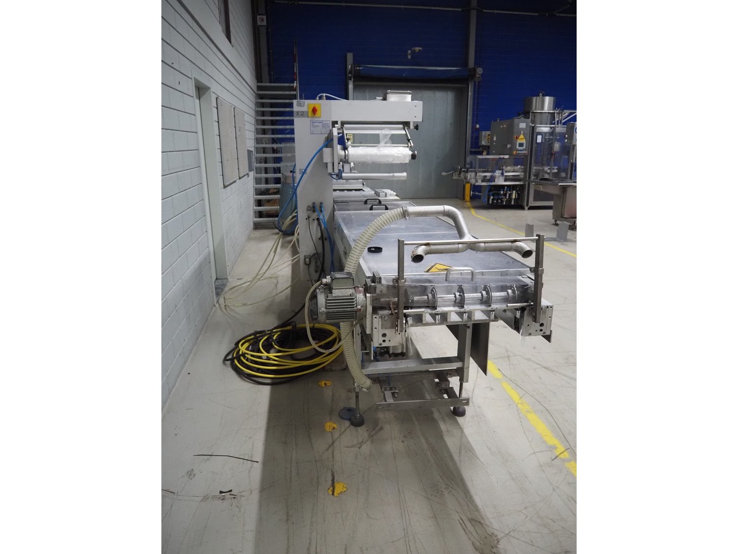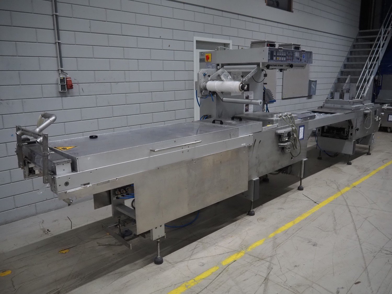 Multivac thermoformer, type: R7000 PC, machine number: 10192/33, year of construction: 1991, 380 V, 3 Ph, 50 Hz, 48 A, 18 kW, film width: 455 mm, dye: (12x) 85 mm x 150 mm, total dimensions: 7350 mm x 1100 mm x 1950 mm. Including suction device for rest film, dimensions: 530 mm x 530 mm x 1060 mm. Kavel locatie: Looyenbeemd 11, 5652 BH Eindhoven, Nederland