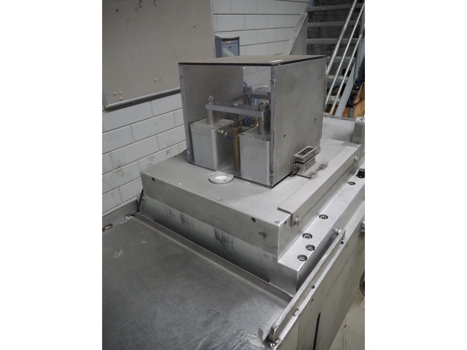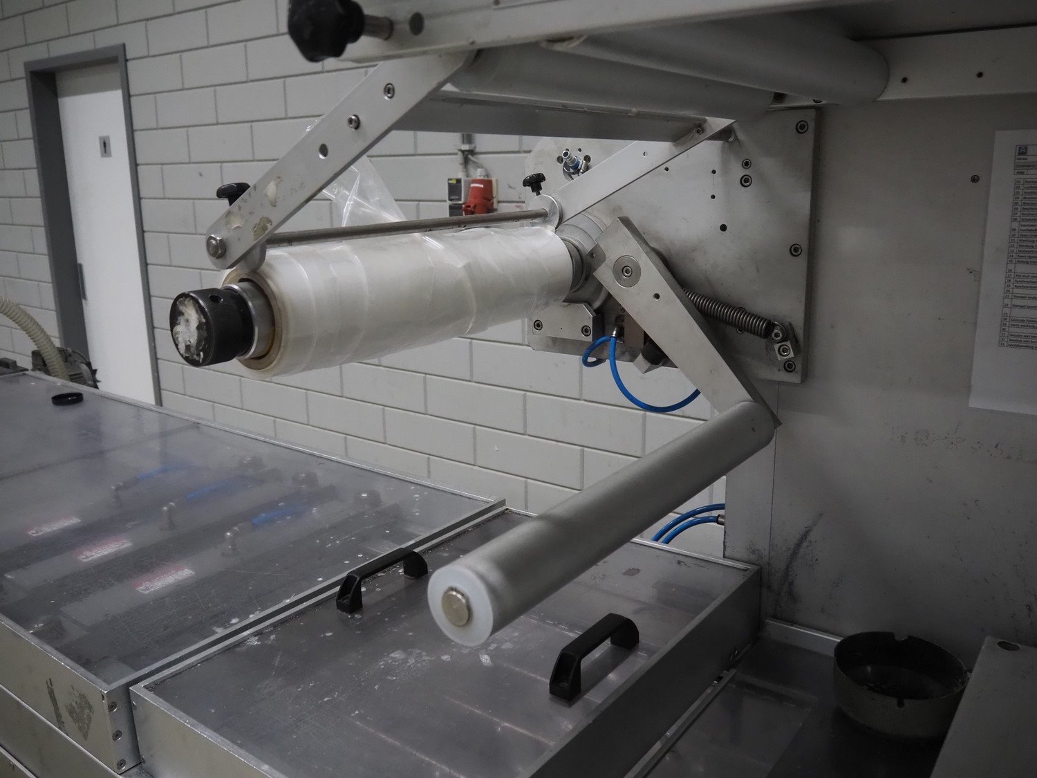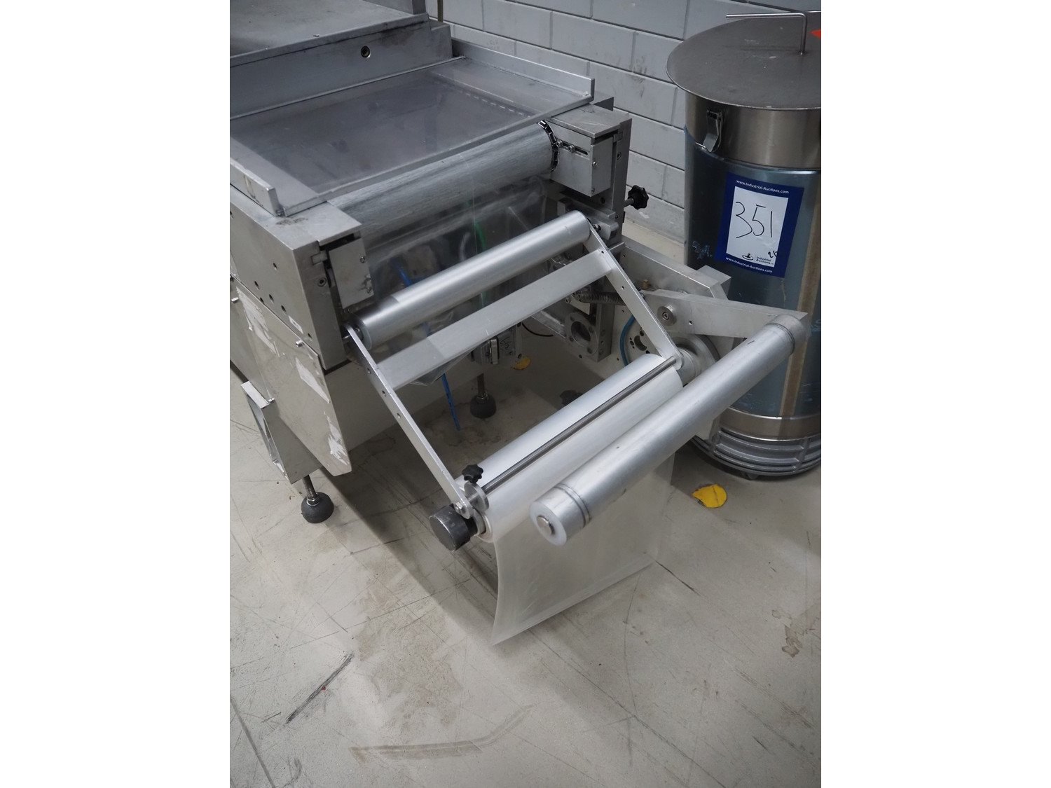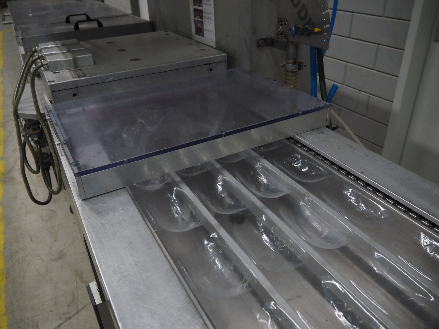 Multivac thermoformer, type: R7000 PC, machine number: 10192/33, year of construction: 1991, 380 V, 3 Ph, 50 Hz, 48 A, 18 kW, film width: 455 mm, dye: (12x) 85 mm x 150 mm, total dimensions: 7350 mm x 1100 mm x 1950 mm. Including suction device for rest film, dimensions: 530 mm x 530 mm x 1060 mm. Kavel locatie: Looyenbeemd 11, 5652 BH Eindhoven, Nederland