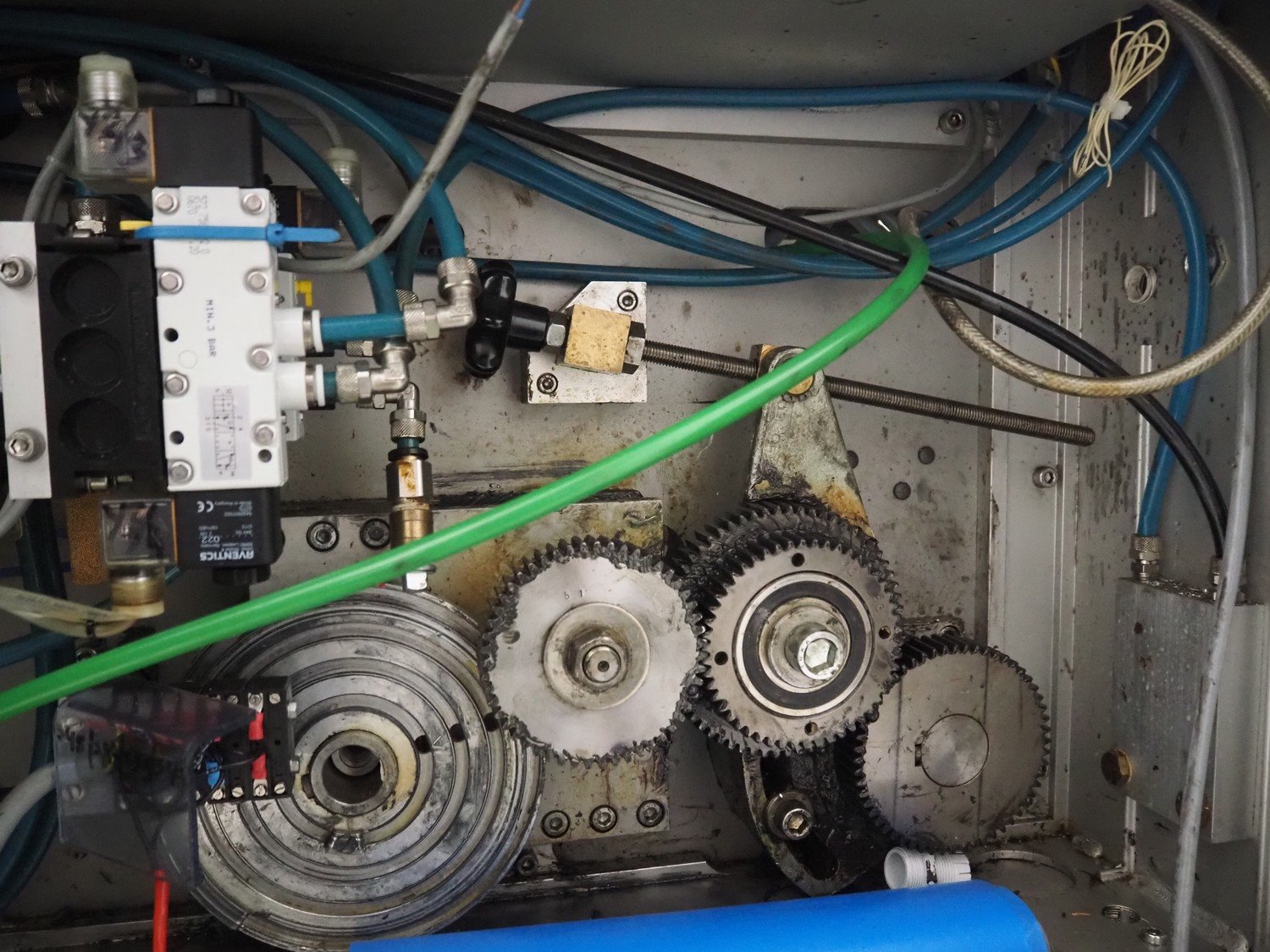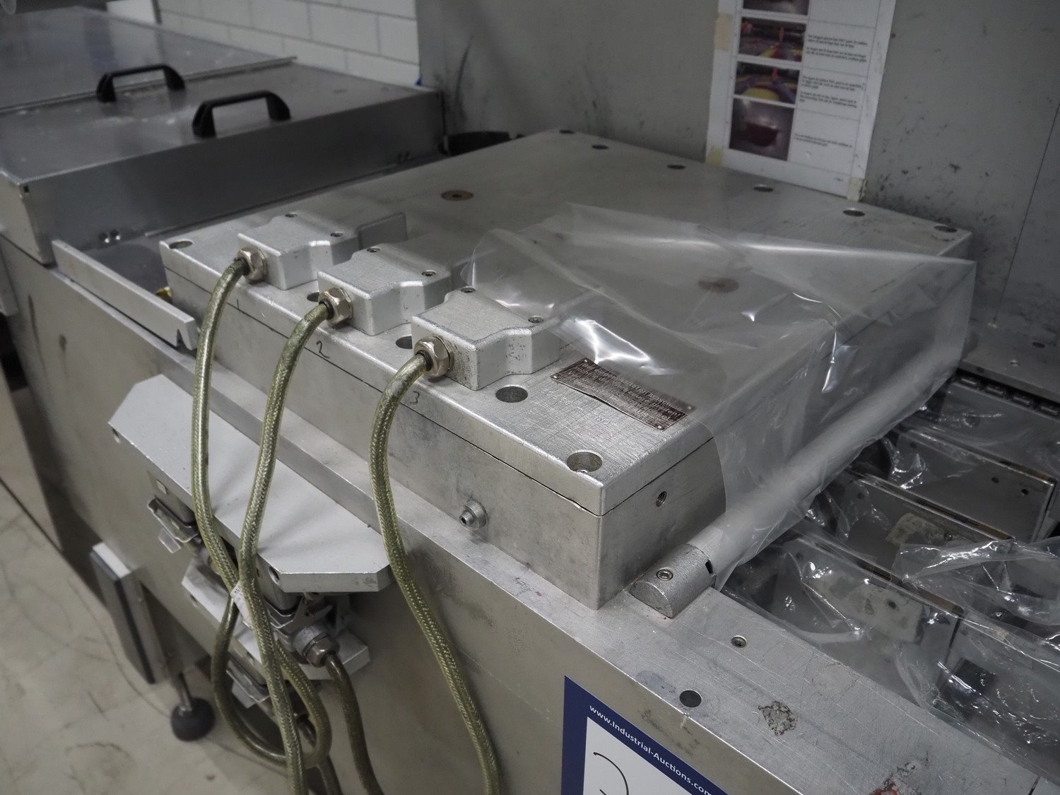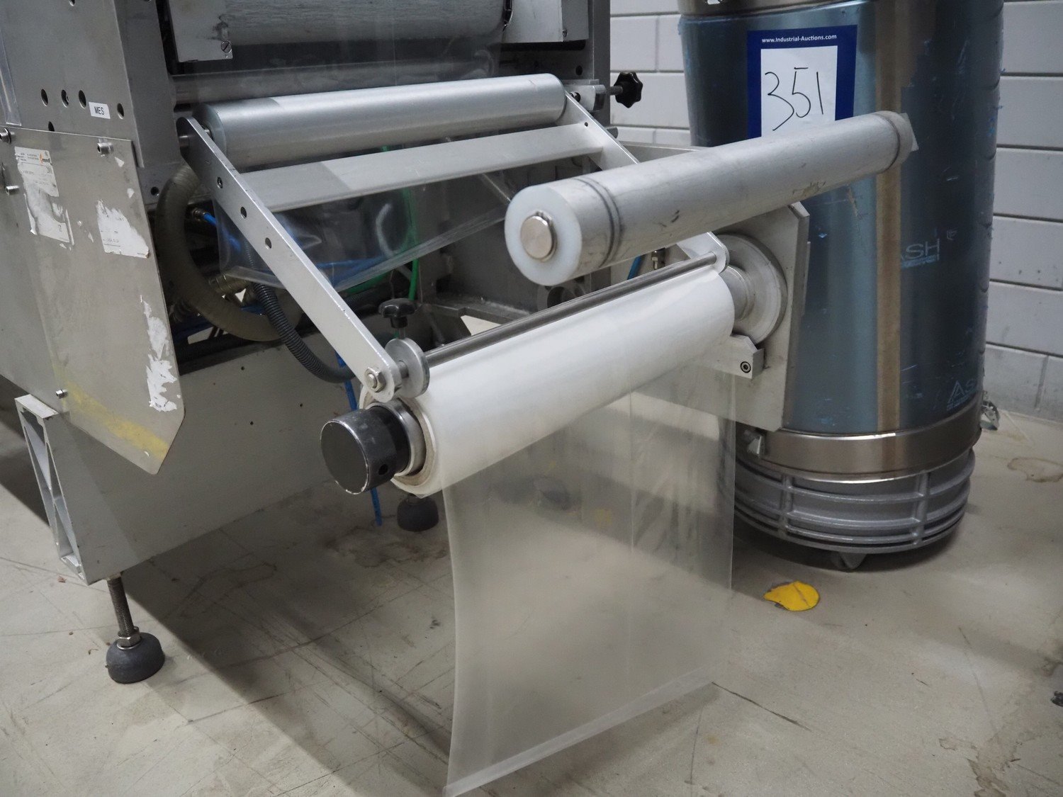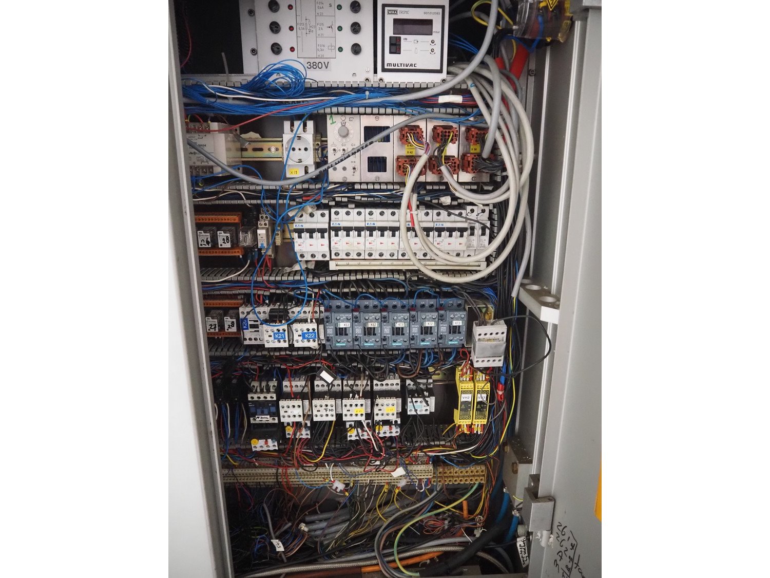 Multivac thermoformer, type: R7000 PC, machine number: 10192/33, year of construction: 1991, 380 V, 3 Ph, 50 Hz, 48 A, 18 kW, film width: 455 mm, dye: (12x) 85 mm x 150 mm, total dimensions: 7350 mm x 1100 mm x 1950 mm. Including suction device for rest film, dimensions: 530 mm x 530 mm x 1060 mm. Kavel locatie: Looyenbeemd 11, 5652 BH Eindhoven, Nederland
