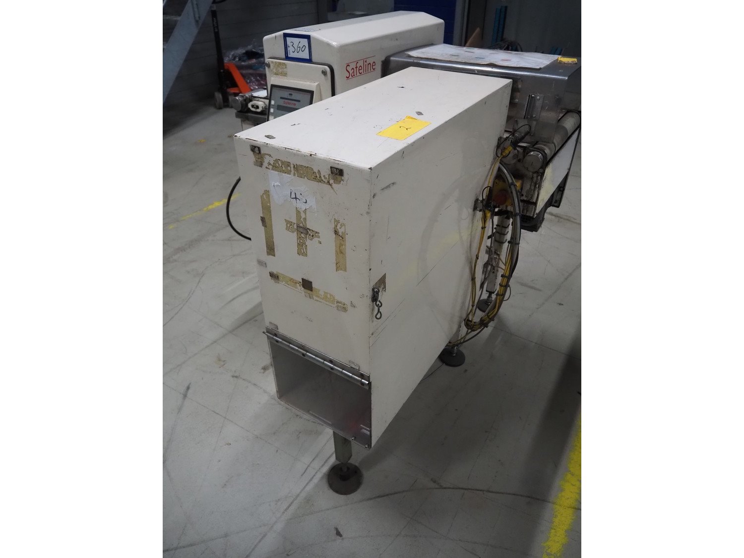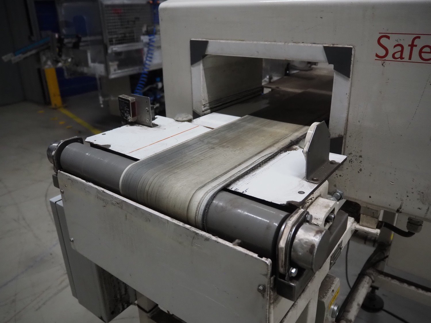 Mettler Toledo Safeline metal detector with rejector, serial number: 20195, plastic belt, belt width: 170 mm, clearance: 305 mm x 135 mm, total dimensions: 1250 mm x 1250 mm x 1200 mm. Kavel locatie: Looyenbeemd 11, 5652 BH Eindhoven, Nederland