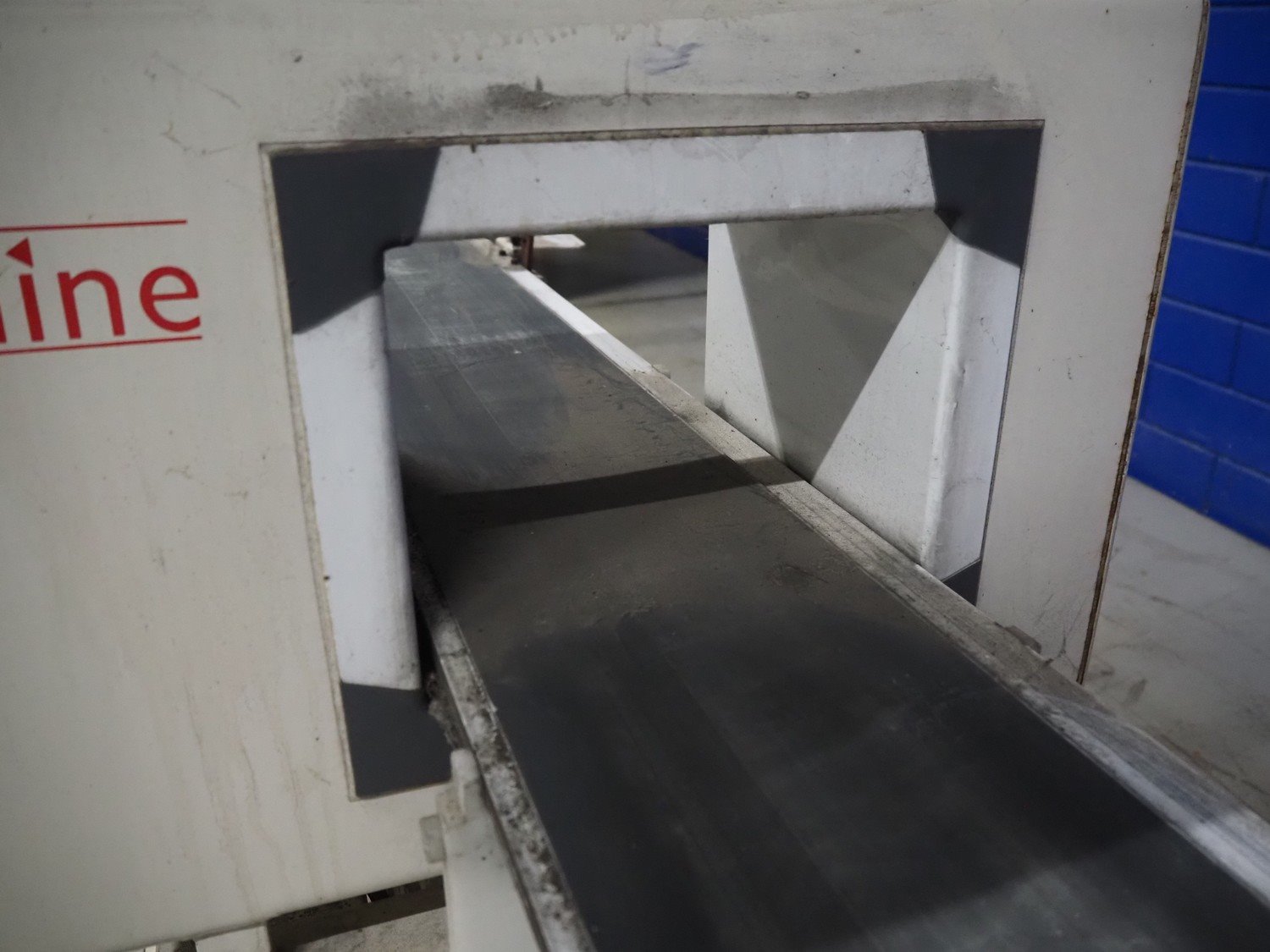 SNB Systems / Mettler Toledo Safeline metal detector, serial number: 57231, plastic belt, belt width: 200 mm, clearance: 255 mm x 170 mm, total dimensions: 2500 mm x 800 mm x 1700 mm. Missing cover. Kavel locatie: Looyenbeemd 11, 5652 BH Eindhoven, Nederland
