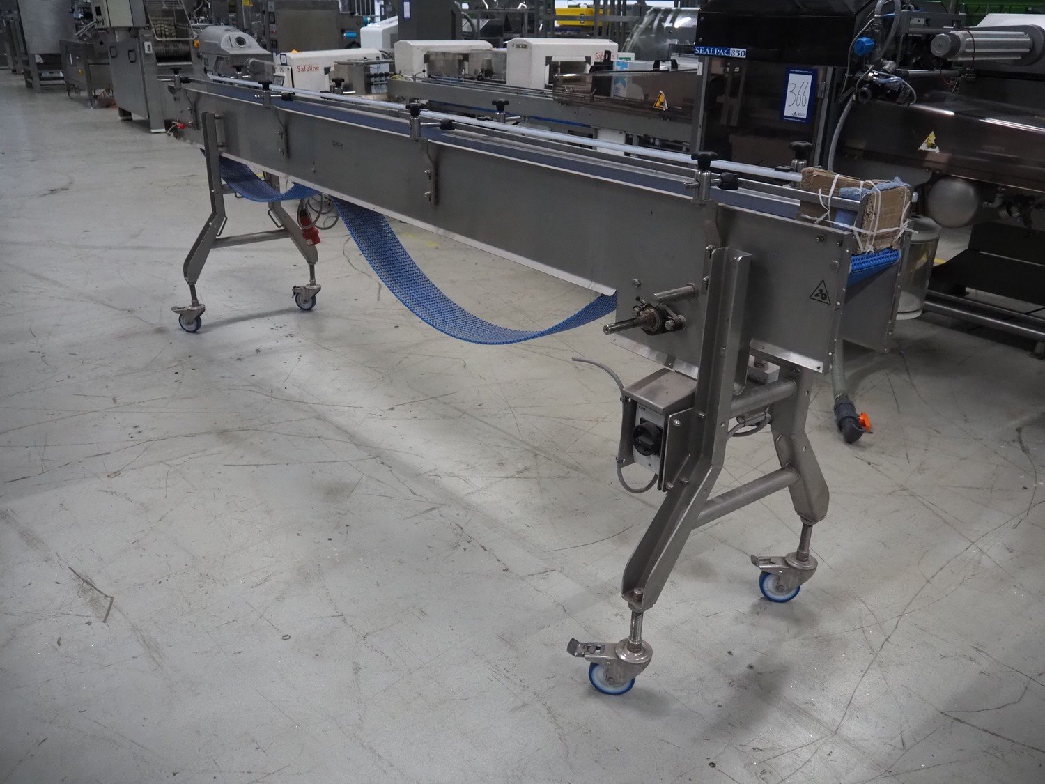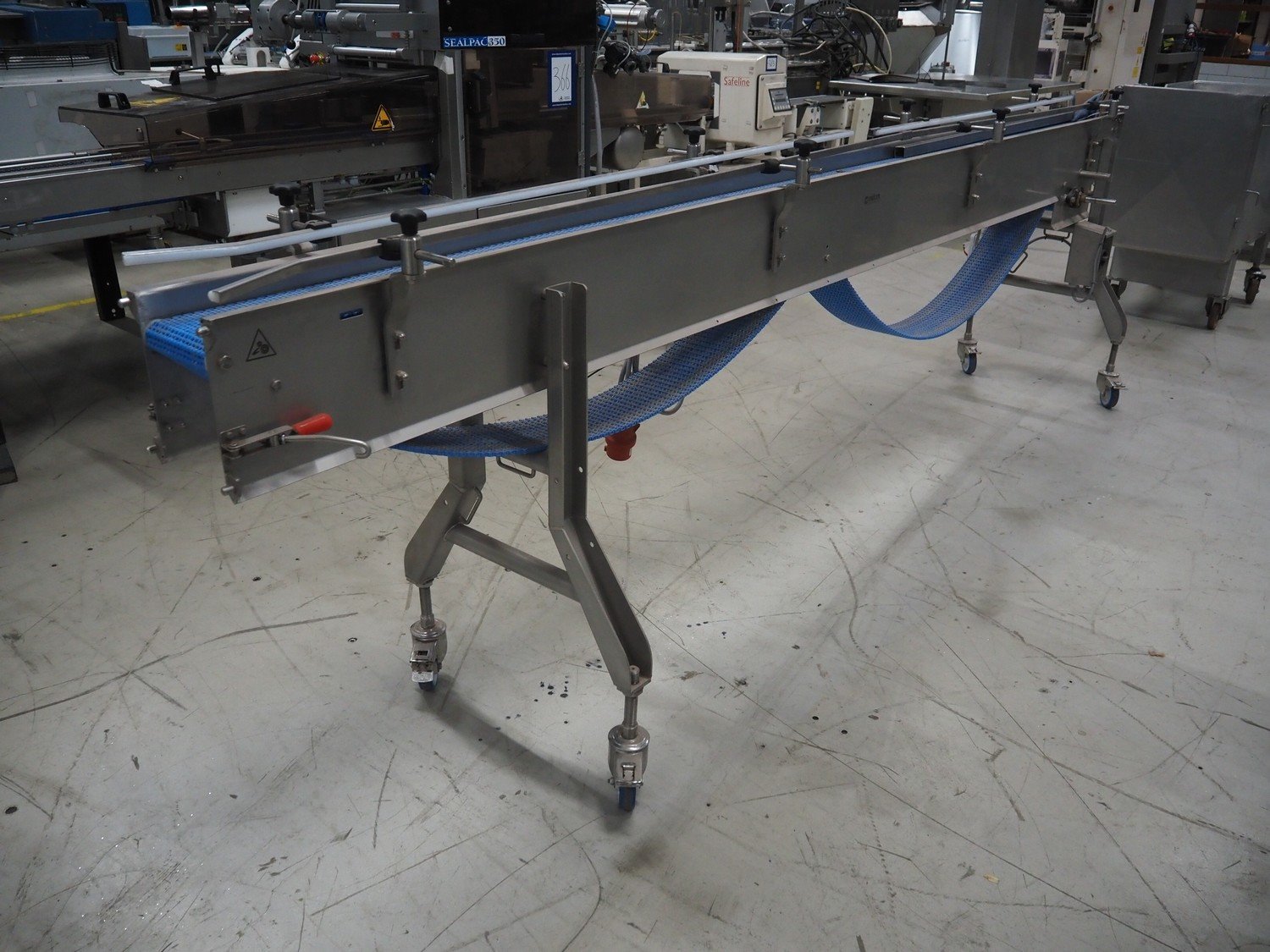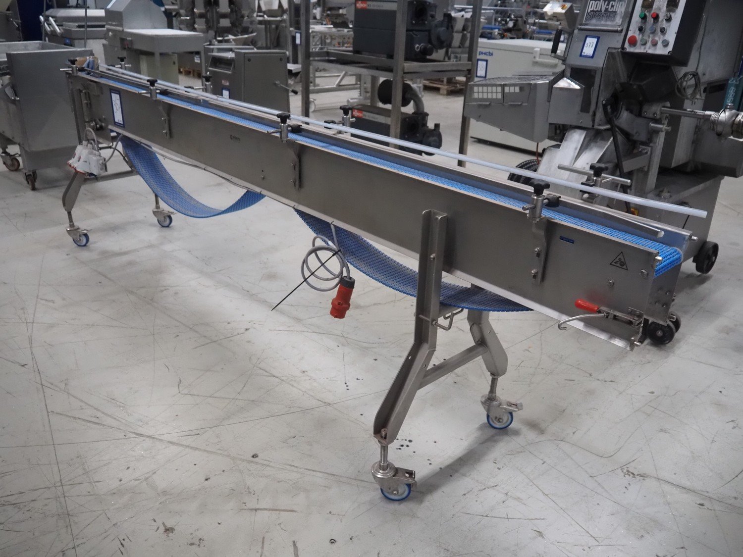 MKM techniek b.v. mobile transport belt, serial number: 23342, year of construction: 2022, 400 V, 3 Ph, 50 Hz, s/s frame, plastic mesh belt, belt width: 150 mm, total dimensions: 3600 mm x 600 mm x 1120 mm. Kavel locatie: Looyenbeemd 11, 5652 BH Eindhoven, Nederland