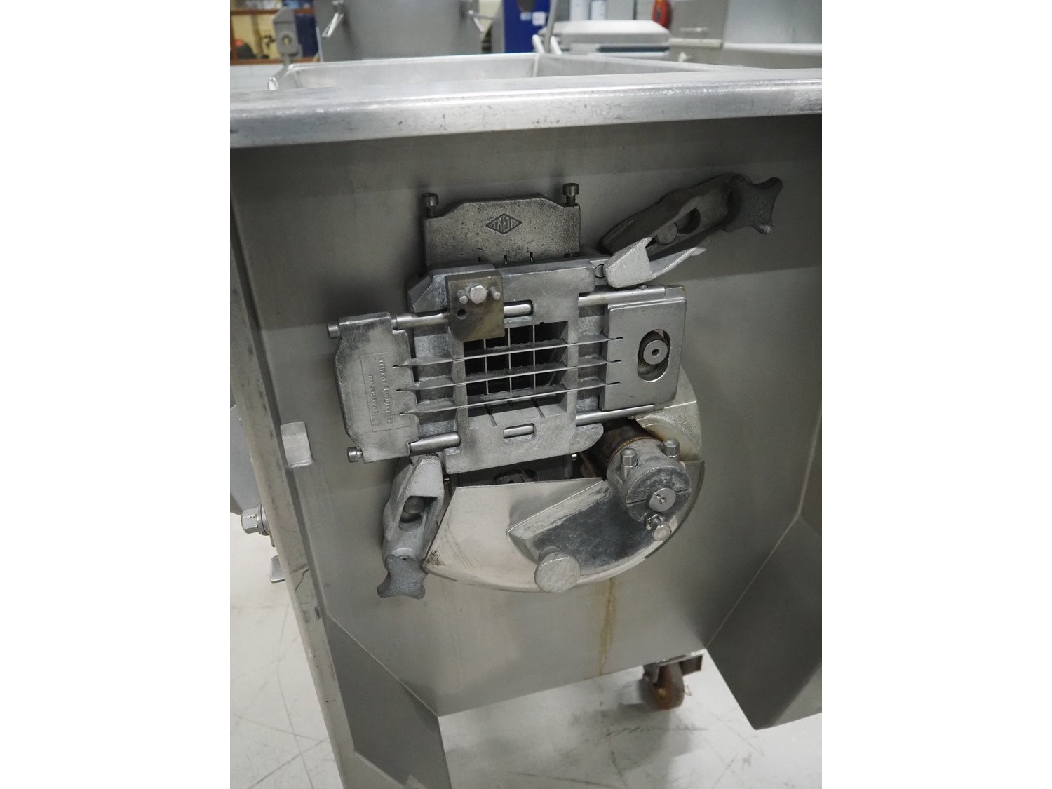 Treif Maschinenbau GmbH mobile dicer, type: 1051, machine number: 105103.67131.0515-1, year of construction: 1989, 380-220 V, 3 Ph, 50 Hz, 5.5 A, dimensions chamber: 85 mm x 85 mm, total dimensions: 1300 mm x 700 mm x 1500 mm. Kavel locatie: Looyenbeemd 11, 5652 BH Eindhoven, Nederland
