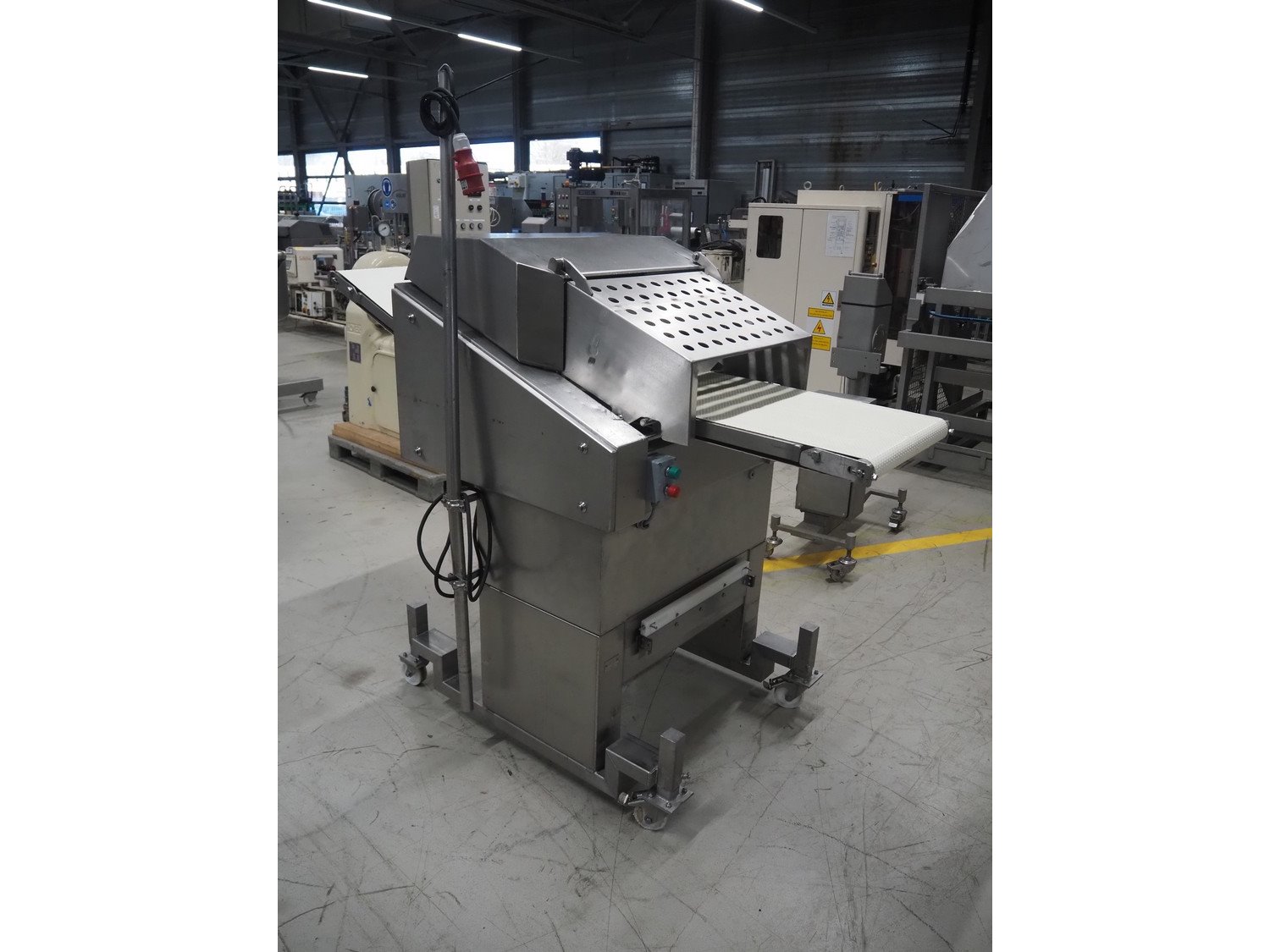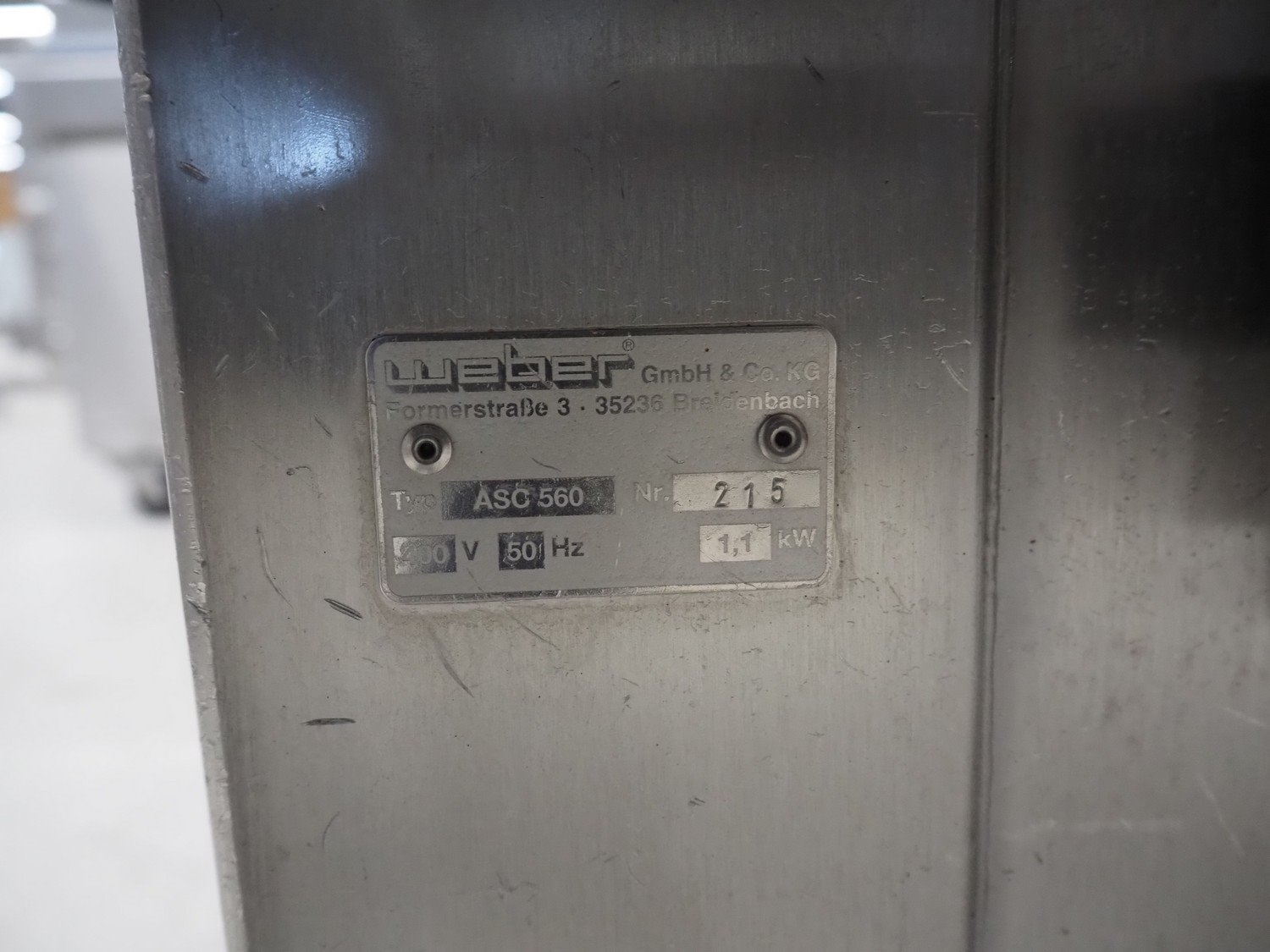 Weber mobile skinning and derinding machine, type: ASC 560, number: 215, 400 V, 50 Hz, 1.1 kW, plastic belt, belt width: 500 mm, working width: 560 mm, total dimensions: 2000 mm x 1050 mm x 1850 mm. Kavel locatie: Looyenbeemd 11, 5652 BH Eindhoven, Nederland