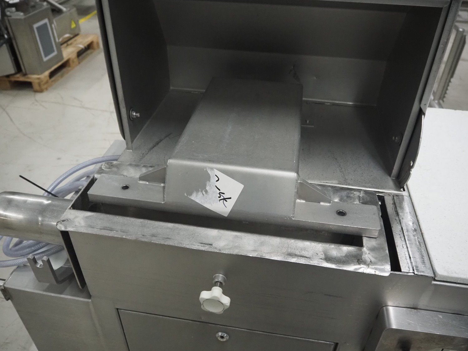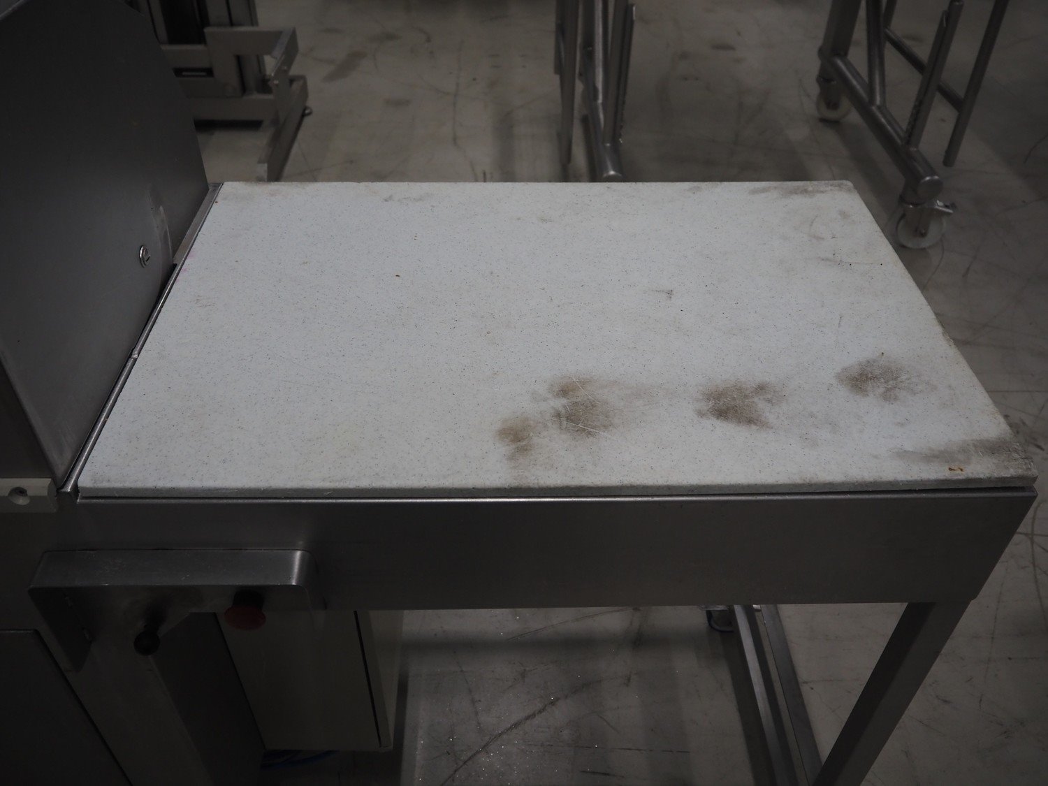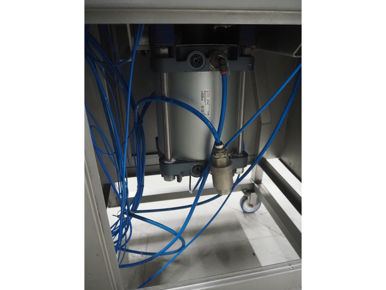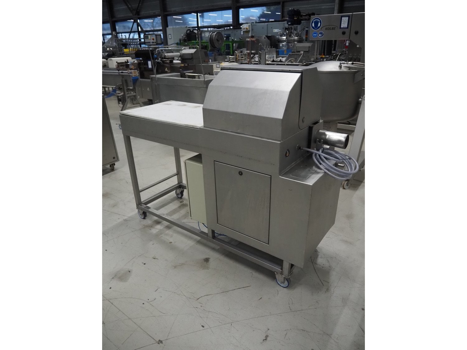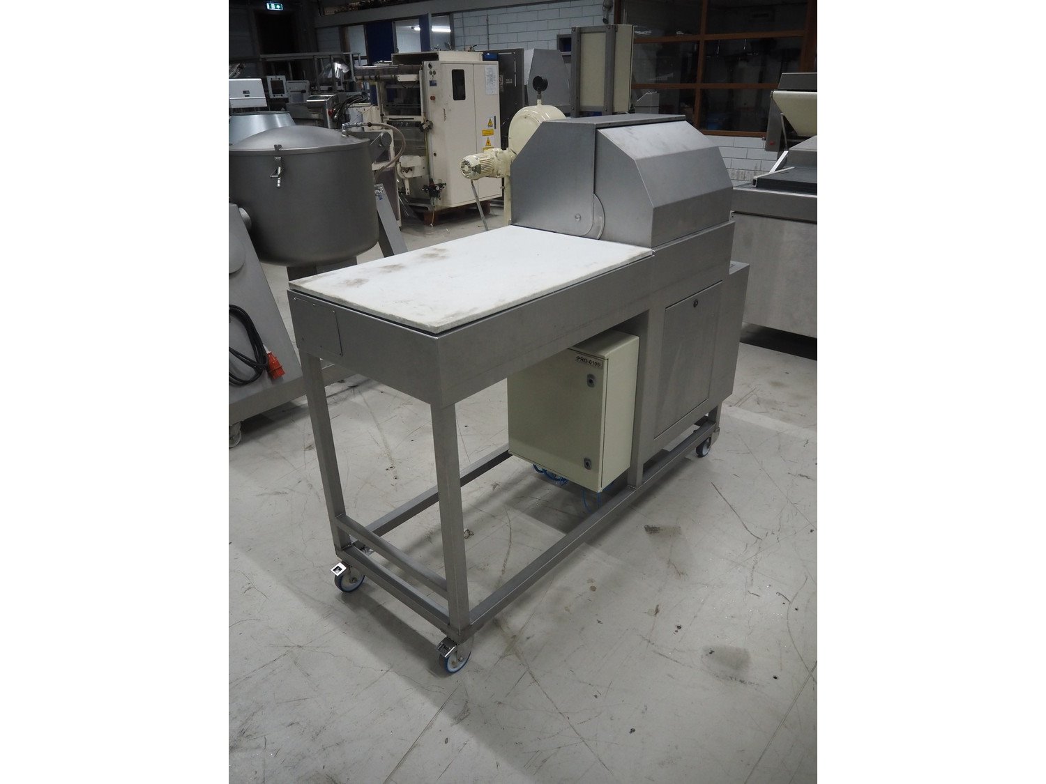 Mobile meat press, diameter press: 100 mm, total dimensions: 1800 mm x 580 mm x 1460 mm. Kavel locatie: Looyenbeemd 11, 5652 BH Eindhoven, Nederland