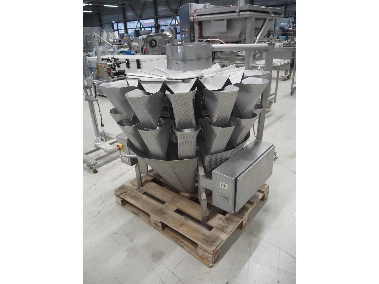 Bilwinco 14-heads multihead weigher, type: BW114-W, number: 5322, year of construction: 2002, 400 V, 3 Ph, 50 Hz, 10 A, dimensions: 1500 mm x 1300 mm x 1400 mm. Kavel locatie: Looyenbeemd 11, 5652 BH Eindhoven, Nederland