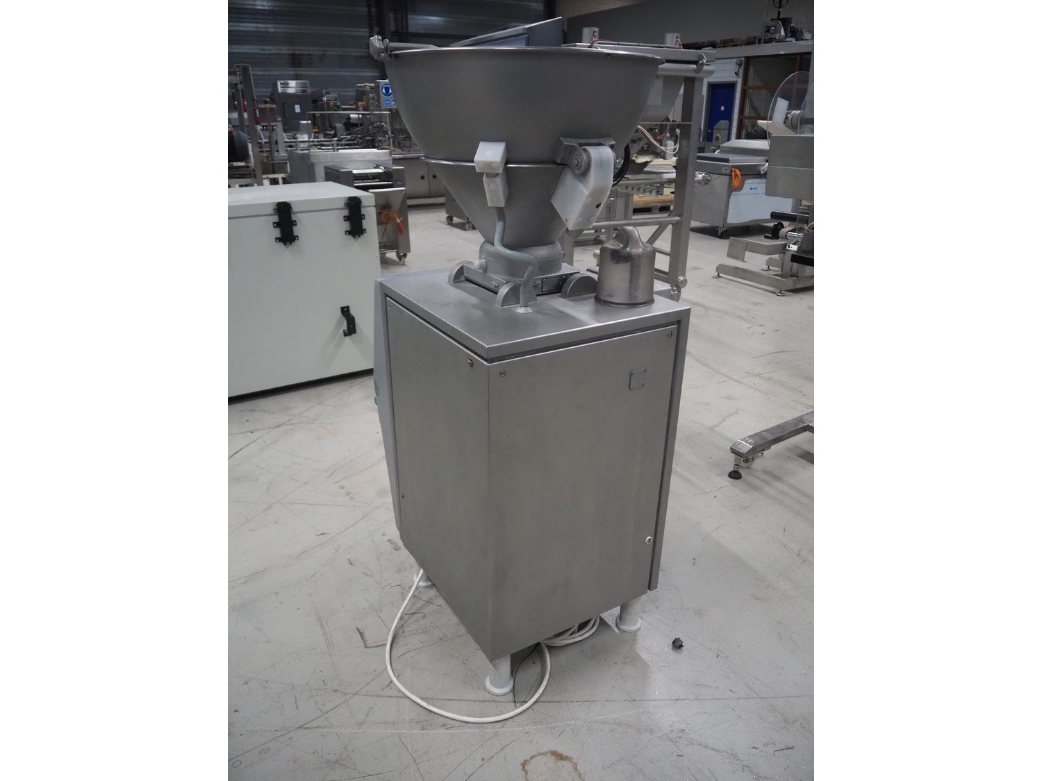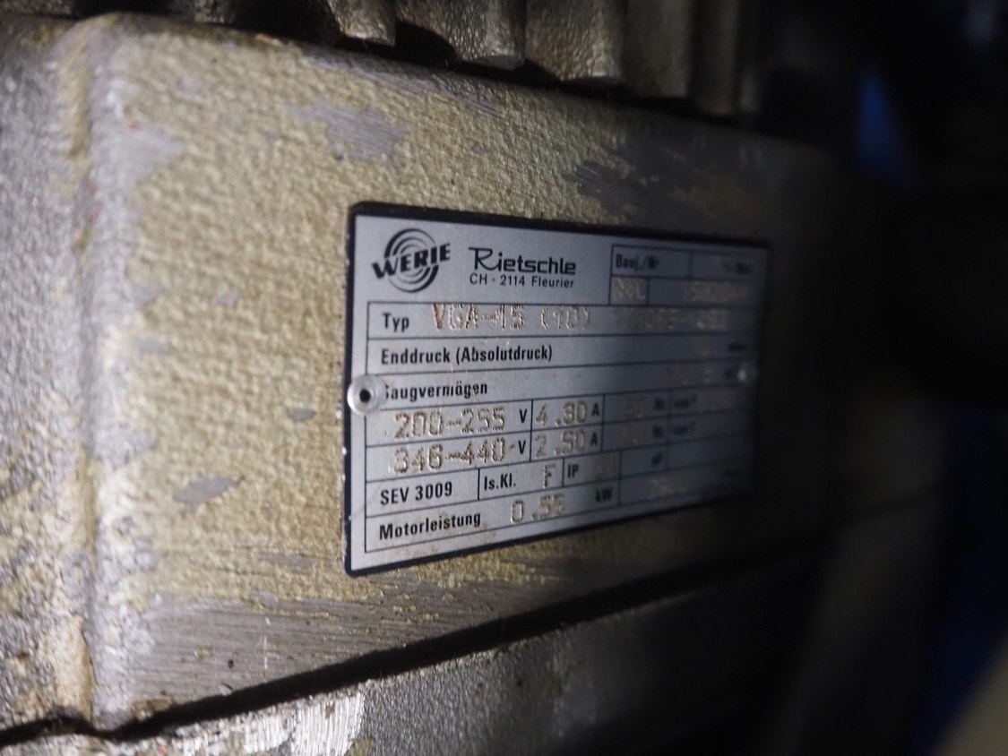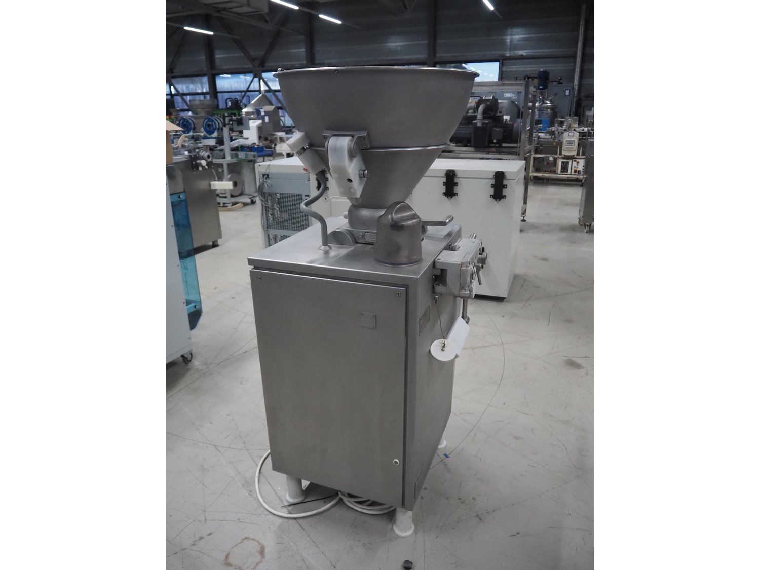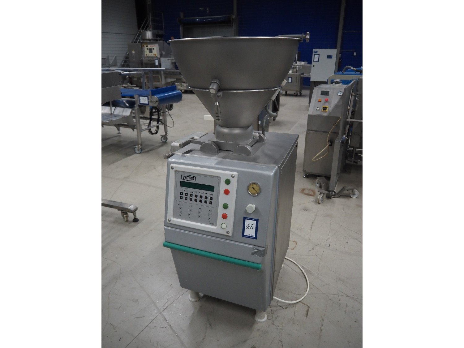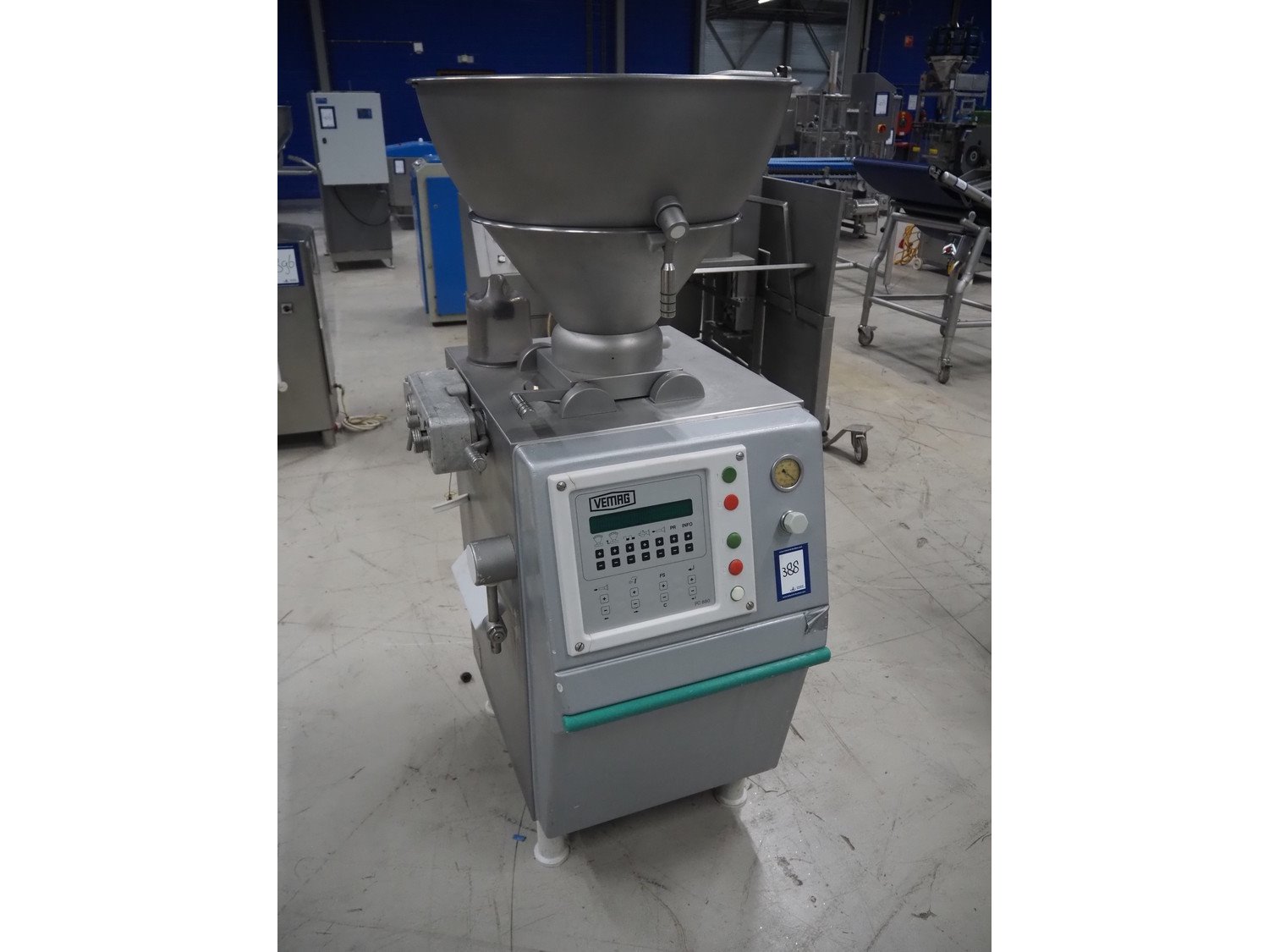 Vemag vacuum filling machine, model: Robby, type: 134, number: 134.0261, year of construction: 1993, 220-240/380-460 V, 3 Ph, 50/60 Hz, 25/20 A, dimensions: 950 mm x 900 mm x 1700 mm. Kavel locatie: Looyenbeemd 11, 5652 BH Eindhoven, Nederland