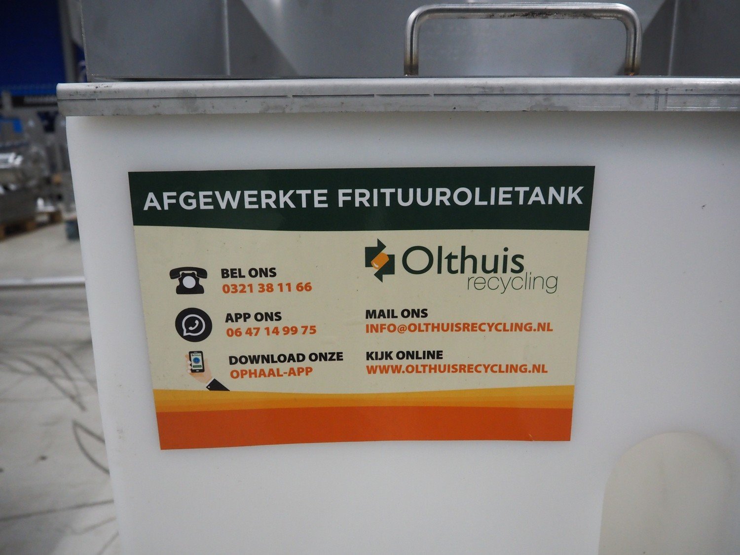 WYDALE plastic oil container, dimensions: 1250 mm x 580 mm x 1200 mm. Kavel locatie: Looyenbeemd 11, 5652 BH Eindhoven, Nederland