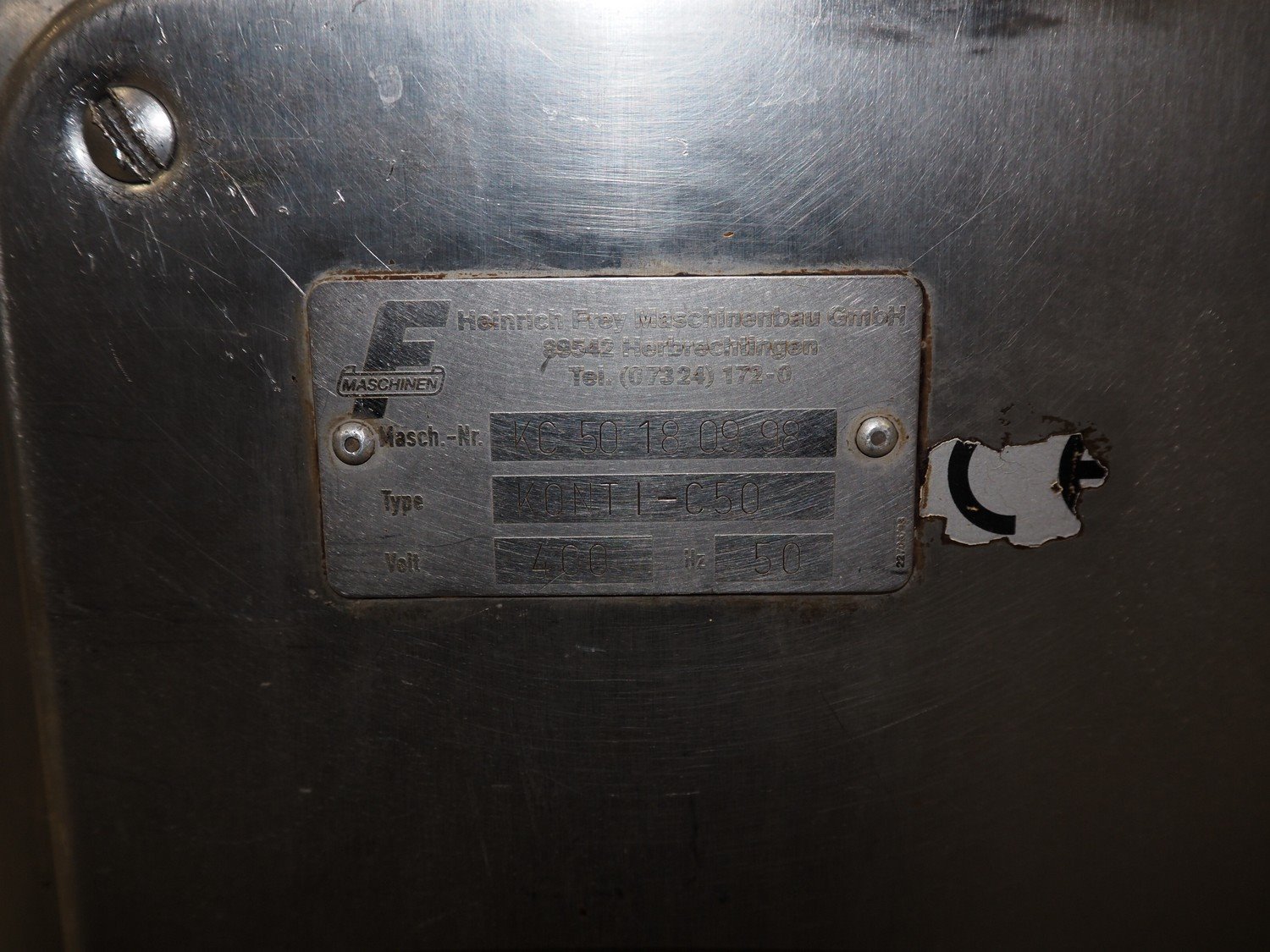 Frey vacuum filling machine, type: KONTI-C50, machine number: KC 50 18 09 98, 400 V, 50 Hz, dimensions: 900 mm x 650 mm x 1610 mm. Kavel locatie: Looyenbeemd 11, 5652 BH Eindhoven, Nederland