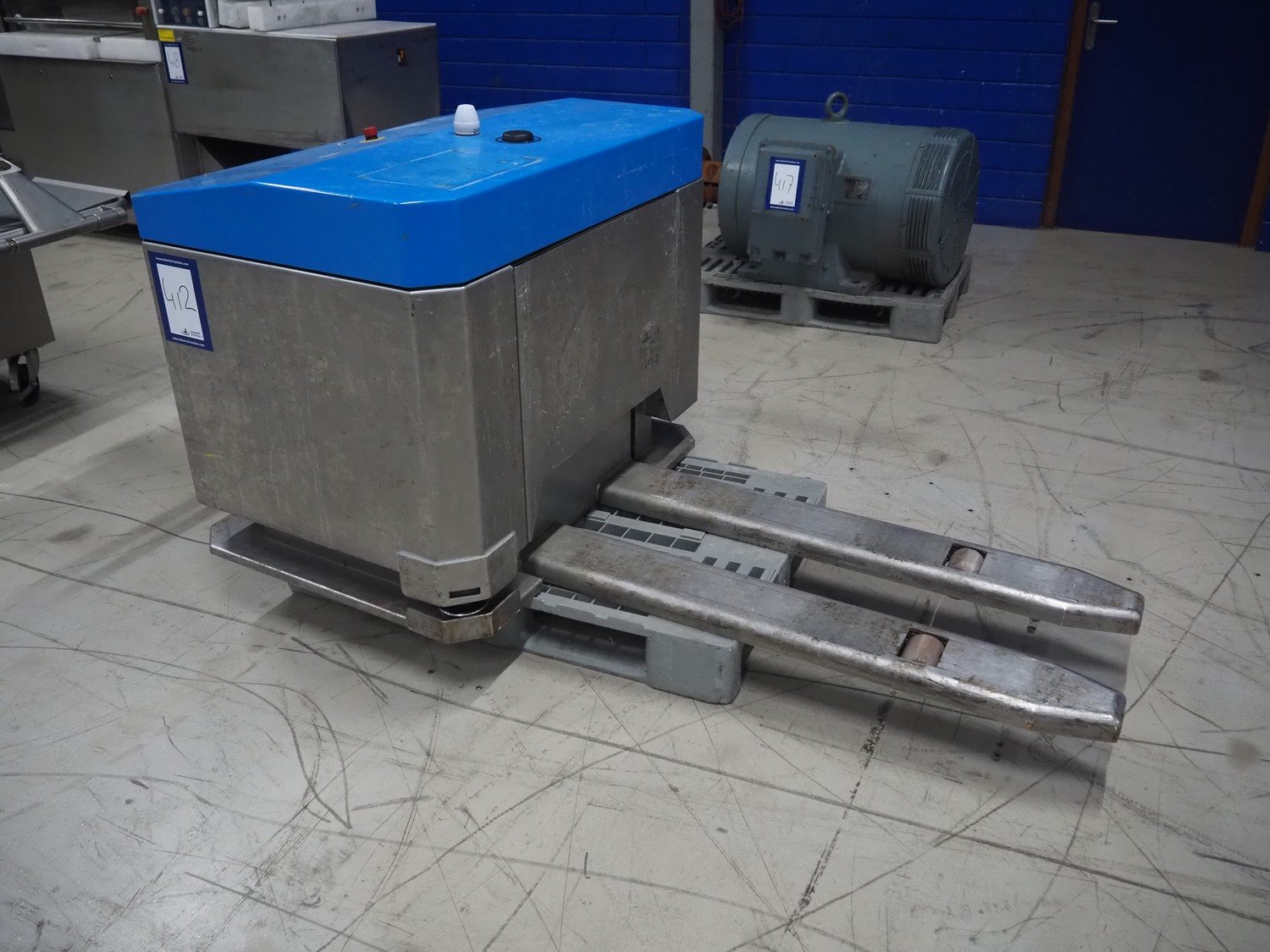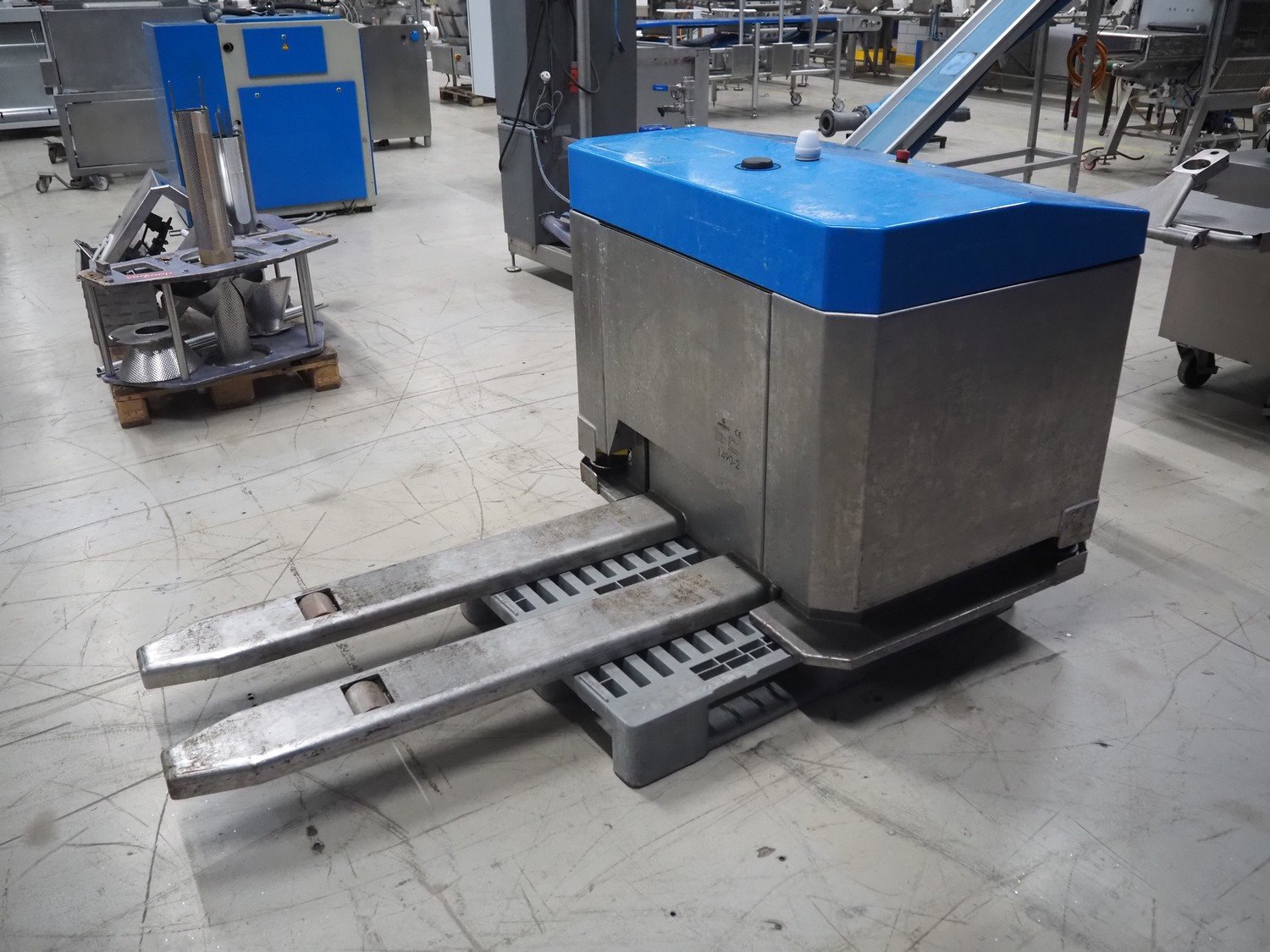 Wewo automatic pallet lifter, type: Pallet mover, serial number: 001, year of construction: 2017, s/s forks, fork length: 1300 mm, total dimensions: 2000 mm x 1100 mm x 970 mm. Kavel locatie: Looyenbeemd 11, 5652 BH Eindhoven, Nederland