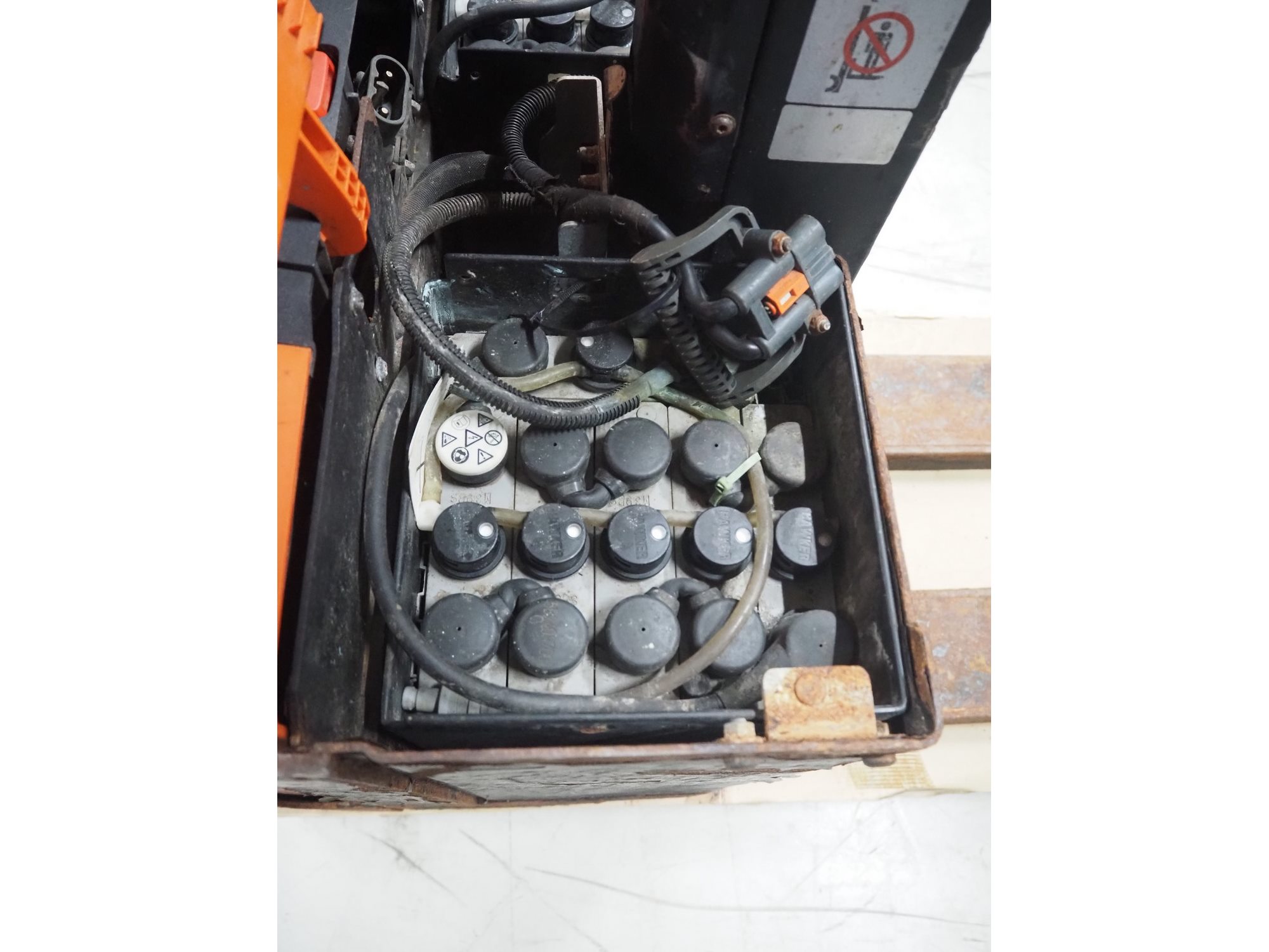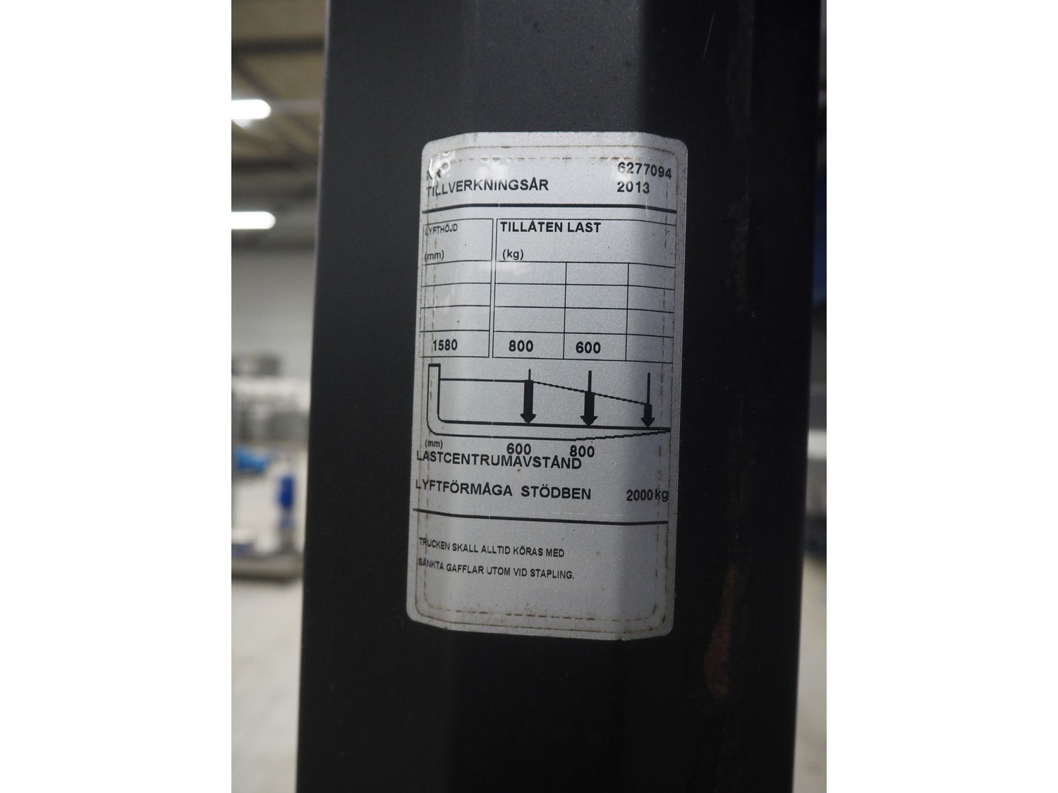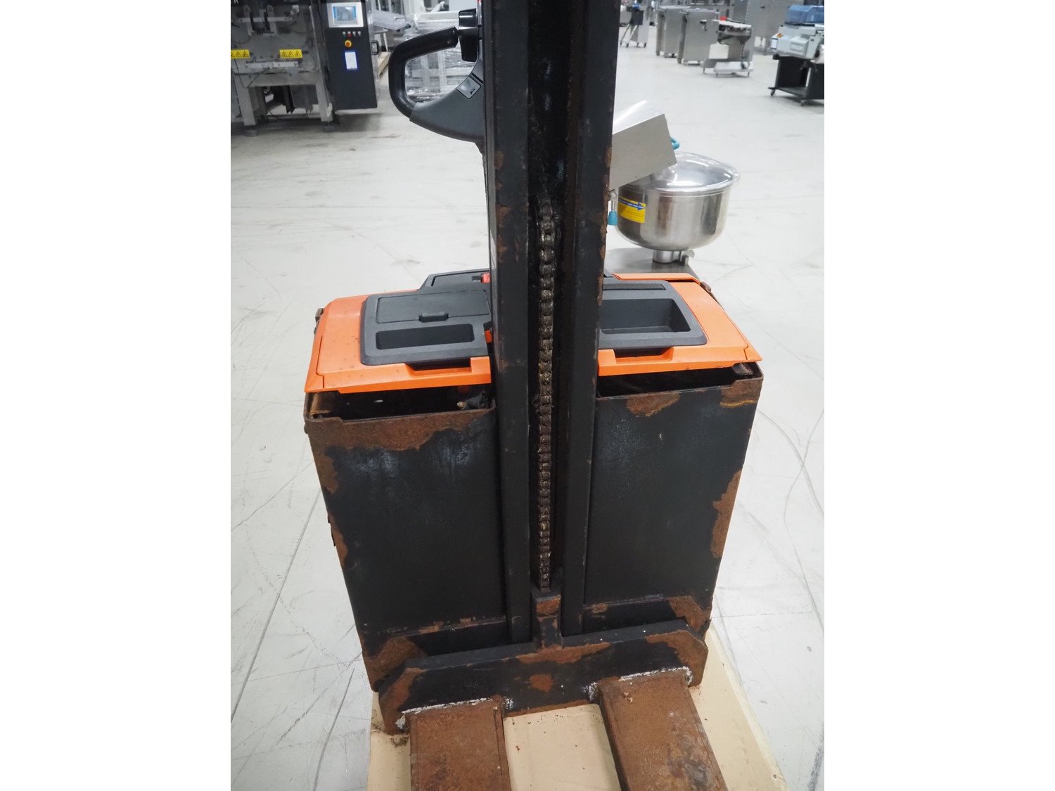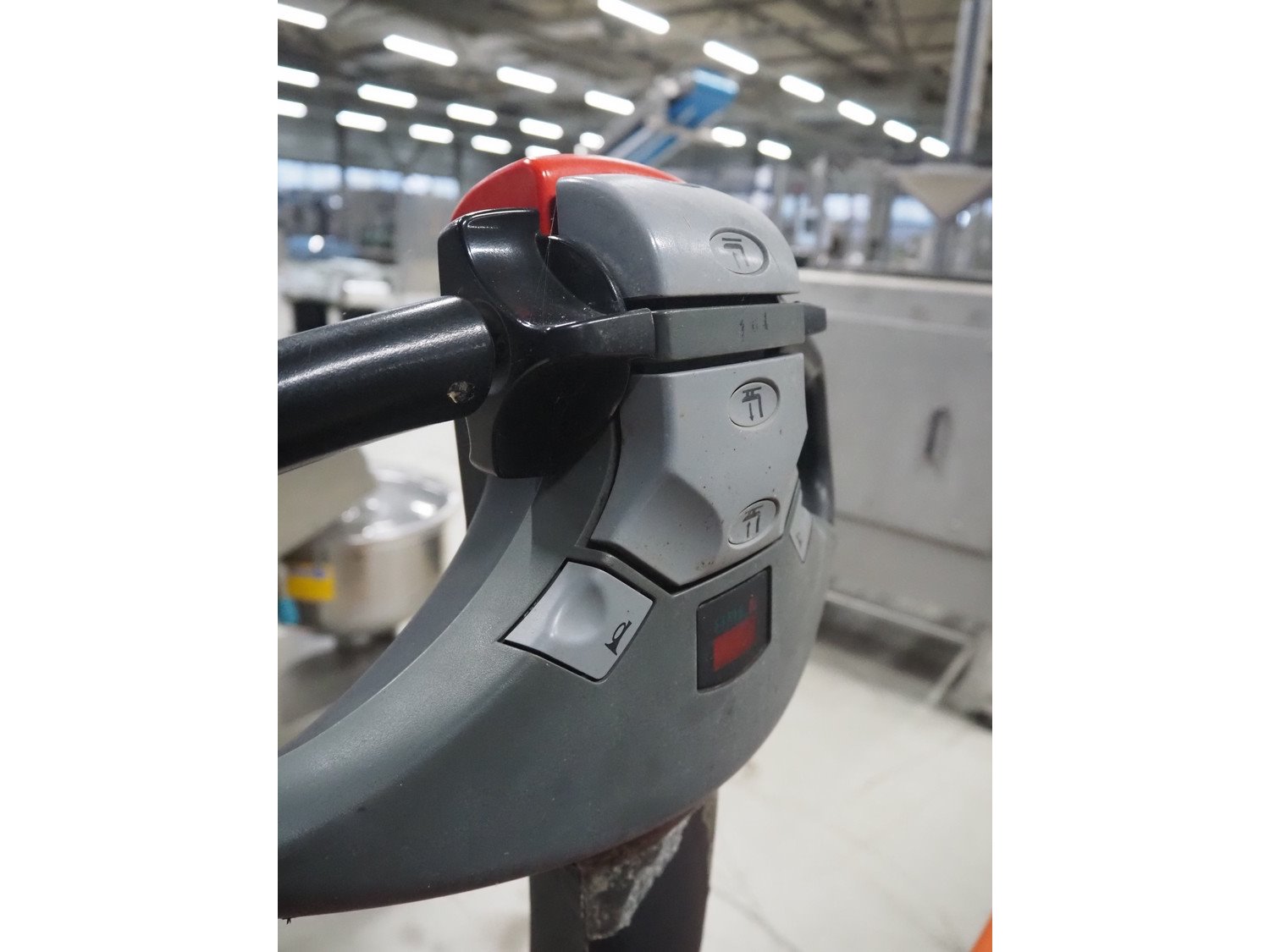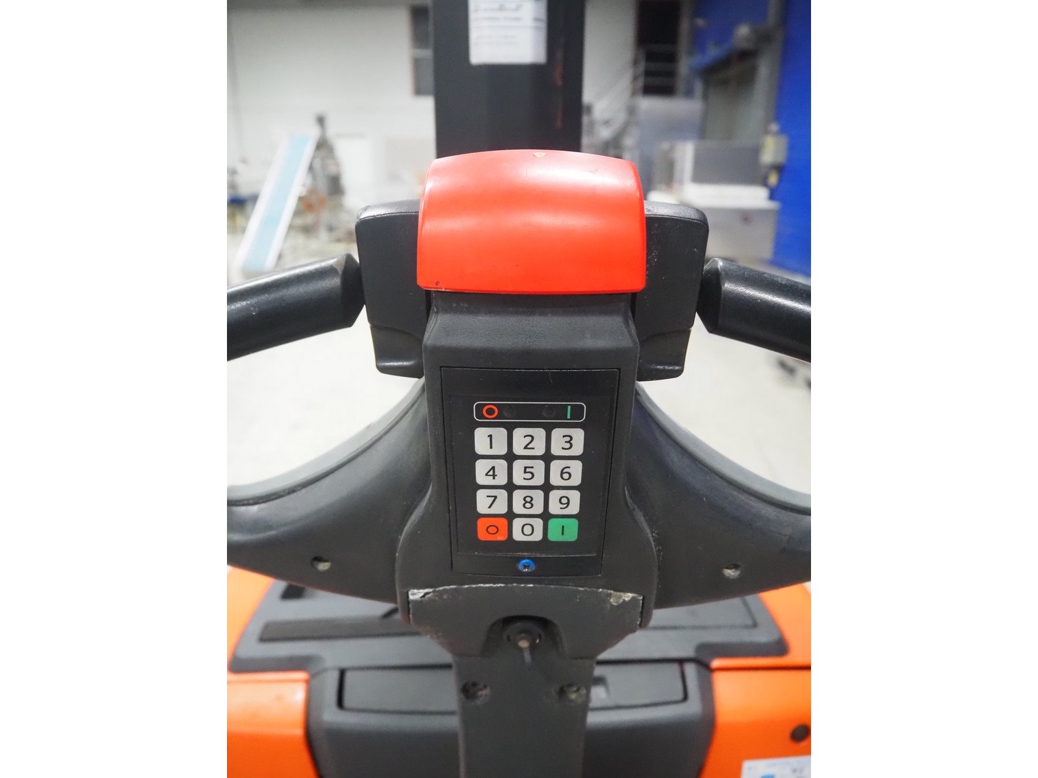 BT electric pallet lifter, type: SWE080L, number: 6277094, year of construction: 2013, capacity: 2000 kg, fork length: 1150 mm, total dimensions: 1800 mm x 750 mm x 1840 mm. Kavel locatie: Looyenbeemd 11, 5652 BH Eindhoven, Nederland