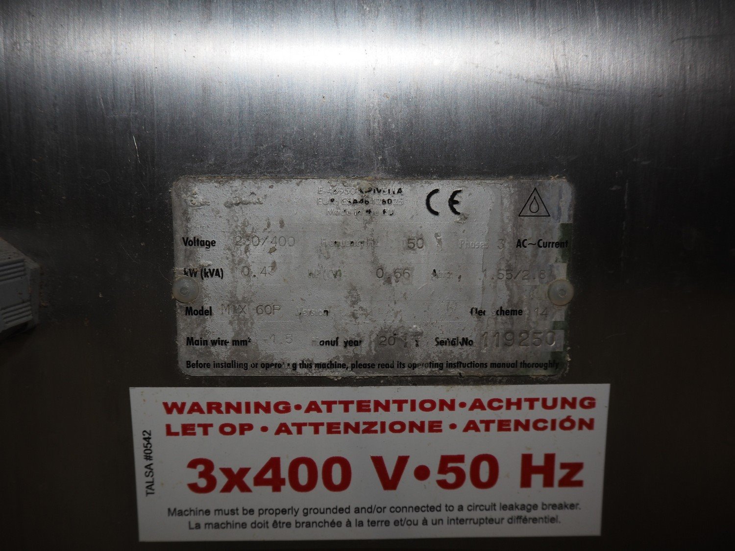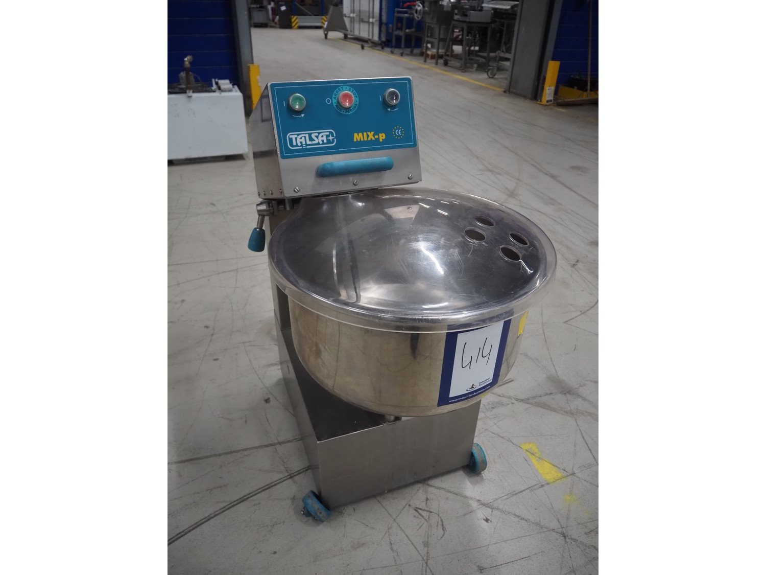 Talsa mobile mixer, type: MIX 60P, 230/400 V, 3 Ph, 50 Hz, 1.55 A, 0.43 kW, s/s bowl, volume: 60 liter, dimensions: 800 mm x 600 mm x 1000 mm. Kavel locatie: Looyenbeemd 11, 5652 BH Eindhoven, Nederland