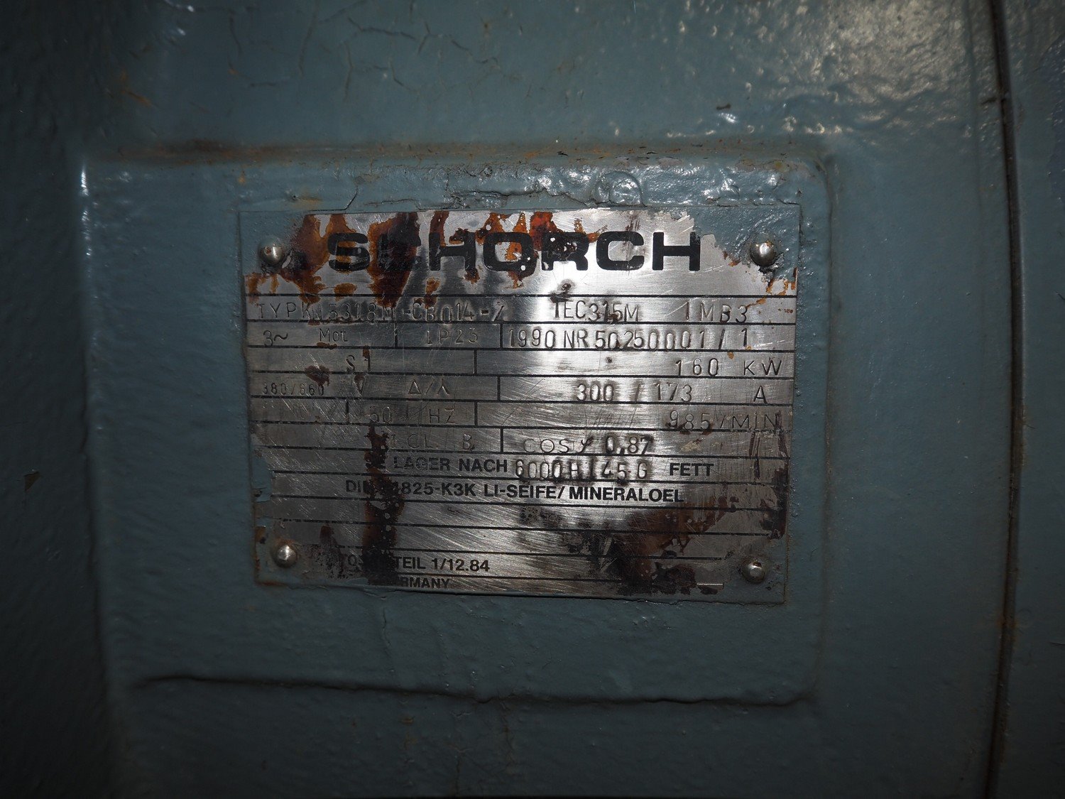 Schorch electro motor, 160 kW, dimensions: 1240 mm x 880 mm x 750 mm. Kavel locatie: Looyenbeemd 11, 5652 BH Eindhoven, Nederland