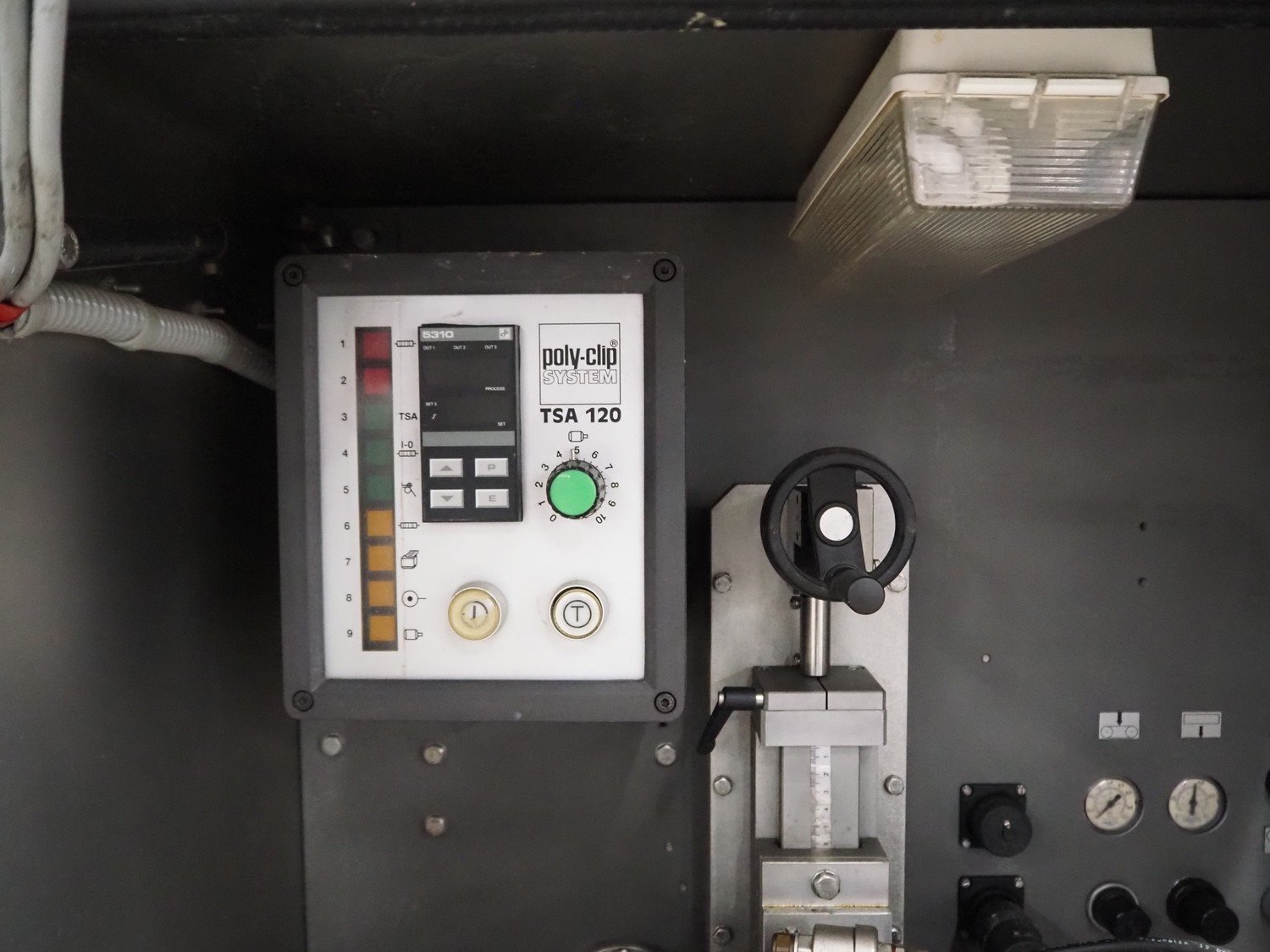 Poly-clip System GmbH & Co. KG automatic clipping and sealing machine, type: TSA 120 HS, number: 142, year of construction: 1999, 400 V, 50 Hz, 16 A, air pressure: 5/7 bar, dimensions: 1400 mm x 980 mm x 1660 mm. Kavel locatie: Looyenbeemd 11, 5652 BH Eindhoven, Nederland