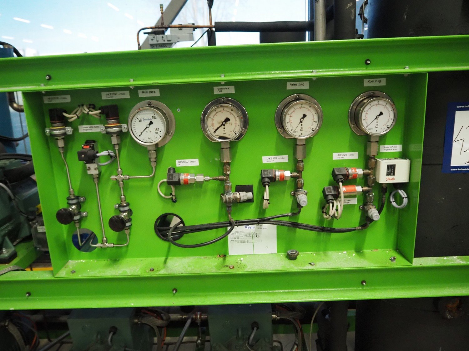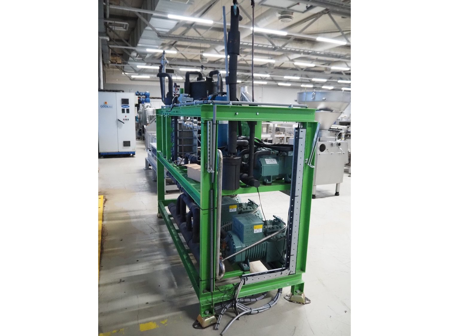 Fri-Jado compressor rack with 5 Bitzer Kühlmaschinenbau GmbH cooling compressors, type: (2x) 2JHC-07K-40S, (3x) 4JTC-15K-40P, capacity: (2x) 3.48/4.18, (3x) 9.2/11 m³ per hour, dimensions: 2700 mm x 920 mm x 2350 mm. Kavel locatie: Looyenbeemd 11, 5652 BH Eindhoven, Nederland