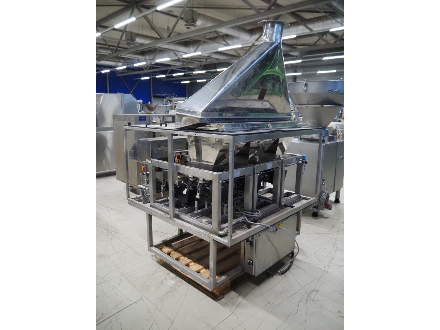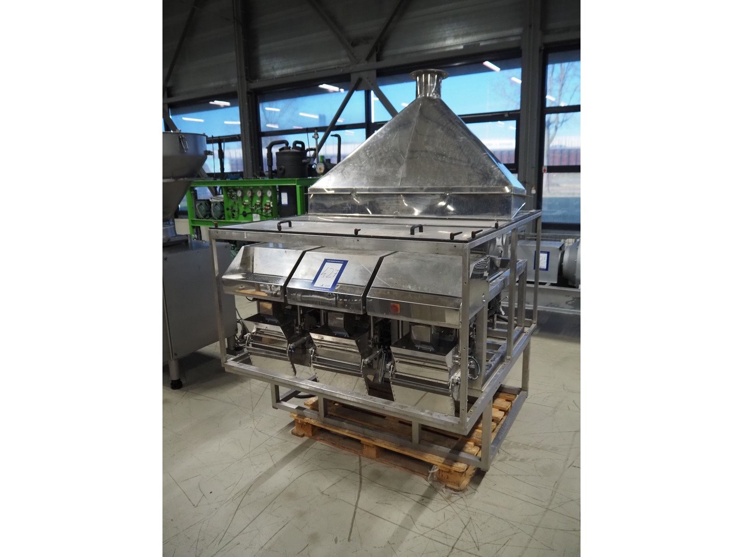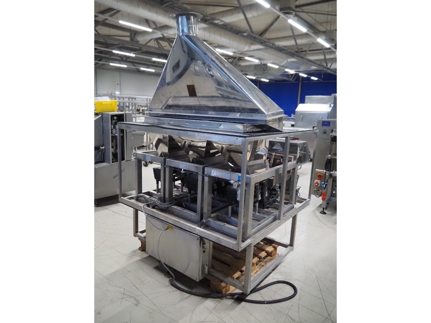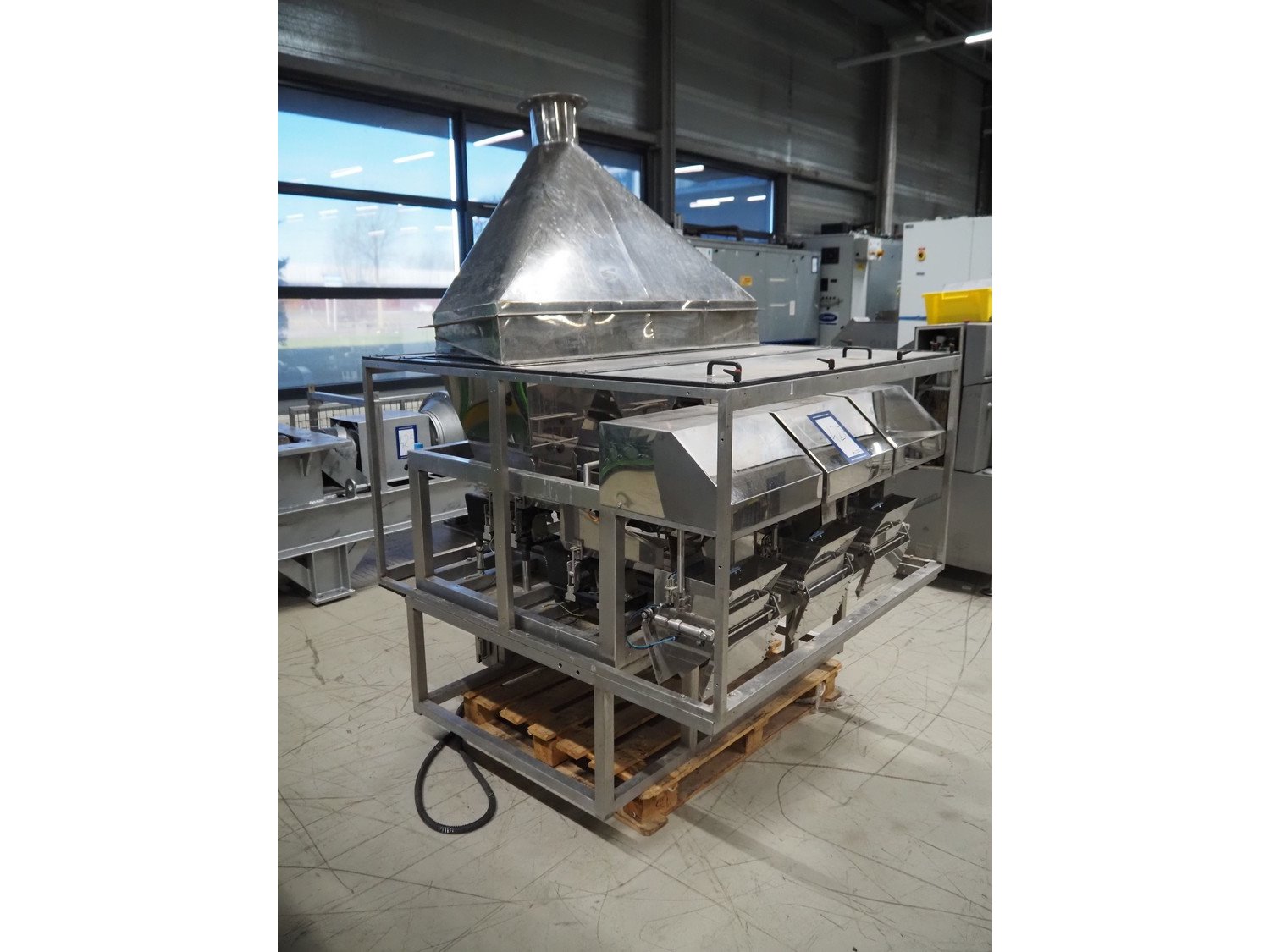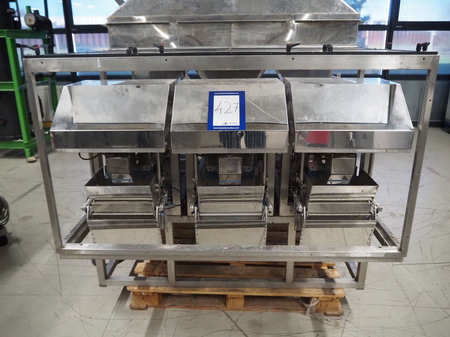 Easiweigh linear weigher, 3 lanes, type: Maxi, serial number: 080105/080106/080107, year of construction: 2008, 3 s/s vibrating gutters, total dimensions: 1500 mm x 1500 mm x 2100 mm. Kavel locatie: Looyenbeemd 11, 5652 BH Eindhoven, Nederland