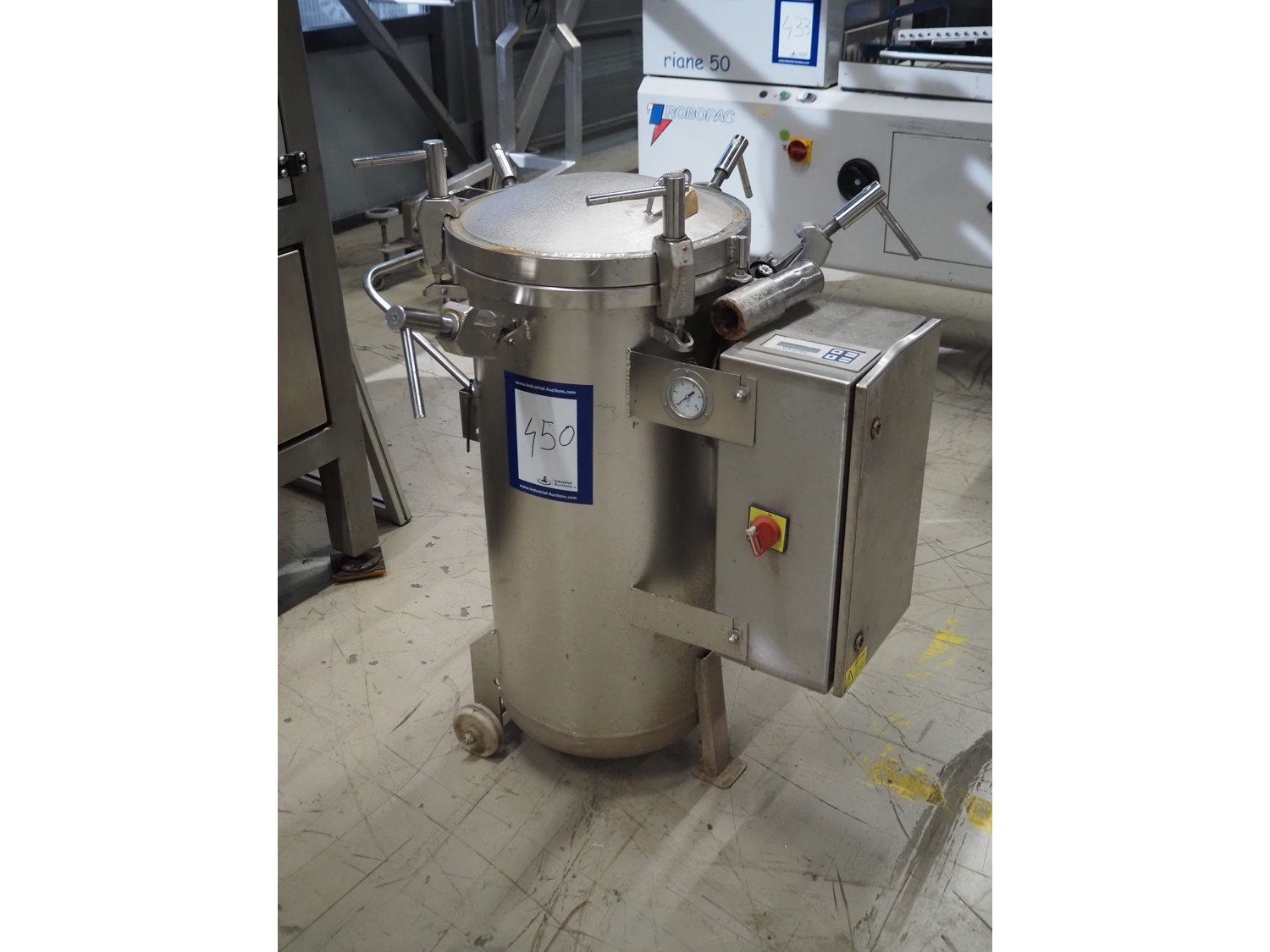 Herco mobile pressure vessel for adding oxygen, type: MD 005-2, serial number: 521-149, year of construction: 2007, minimum/maximum working pressure: -1/+15 bar, minimum/maximum working temperature: 0/20 °C, volume: 109 liter, dimensions: 900 mm x 600 mm x 1100 mm. Kavel locatie: Looyenbeemd 11, 5652 BH Eindhoven, Nederland