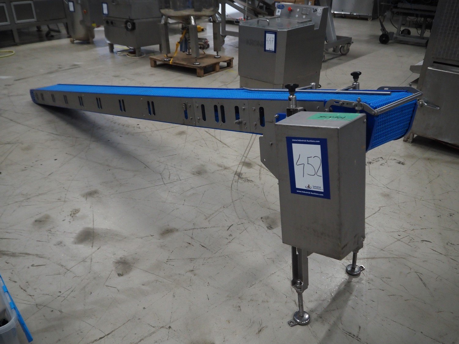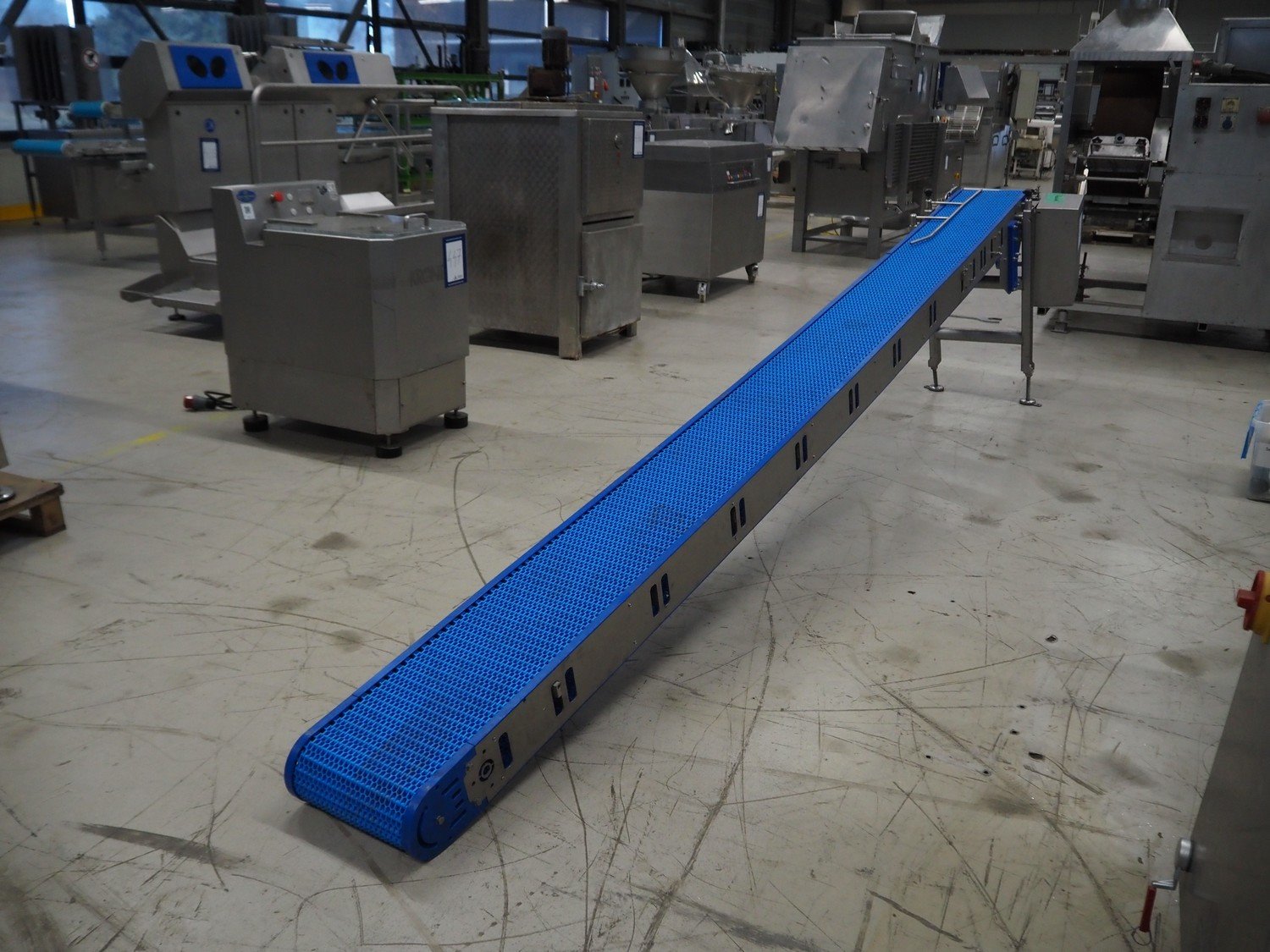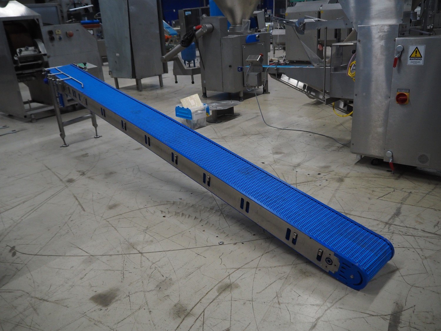 Marvu transport belt, type: 250/324, serial number: 10075625, year of construction: 09-2019, 230-400 V, 50 Hz, 3.16-1.82 A, 0.62 kW, s/s frame, plastic mesh belt, belt width: 300 mm, total dimensions: 4000 mm x 650 mm x 1000 mm. Kavel locatie: Looyenbeemd 11, 5652 BH Eindhoven, Nederland