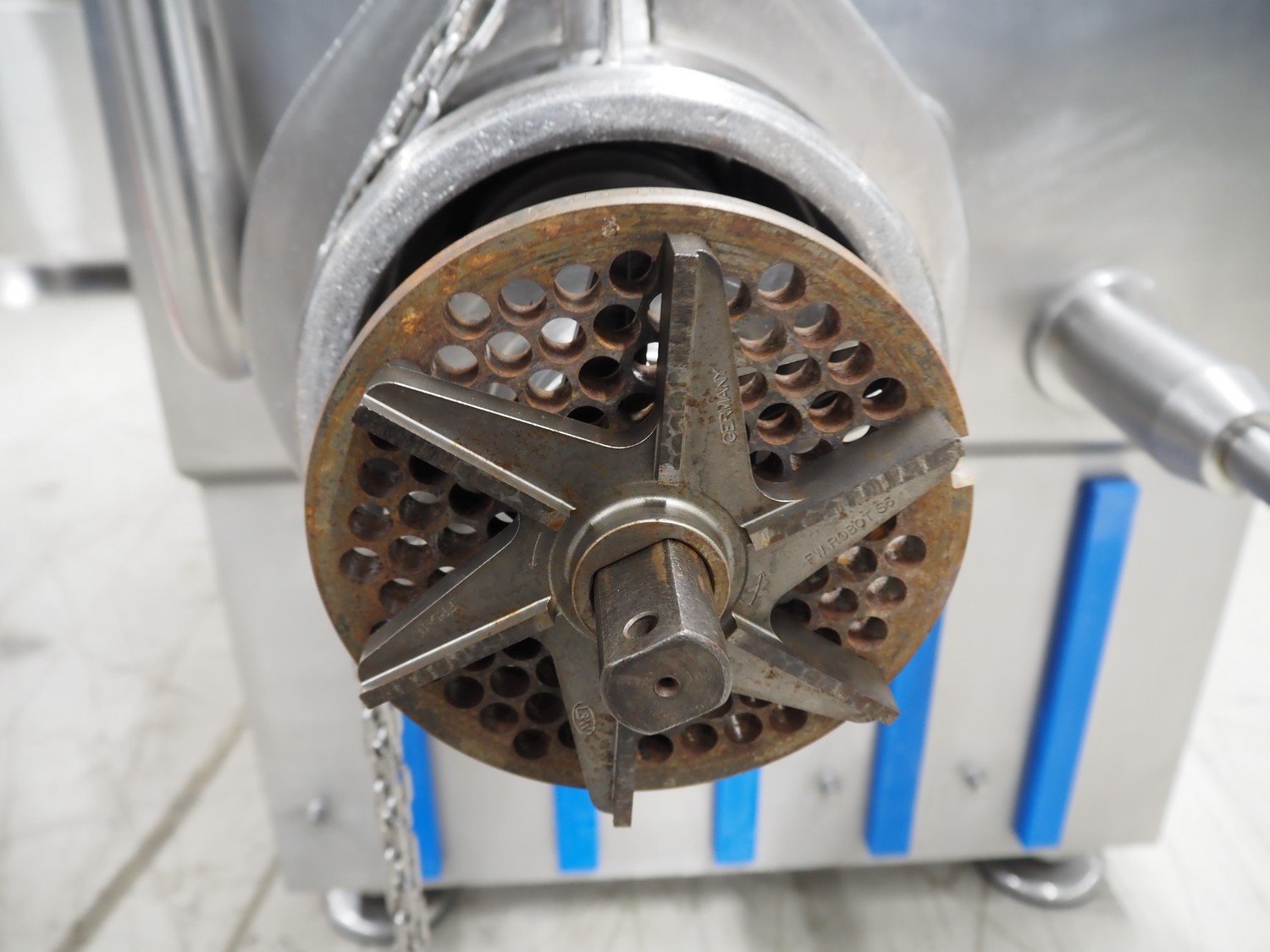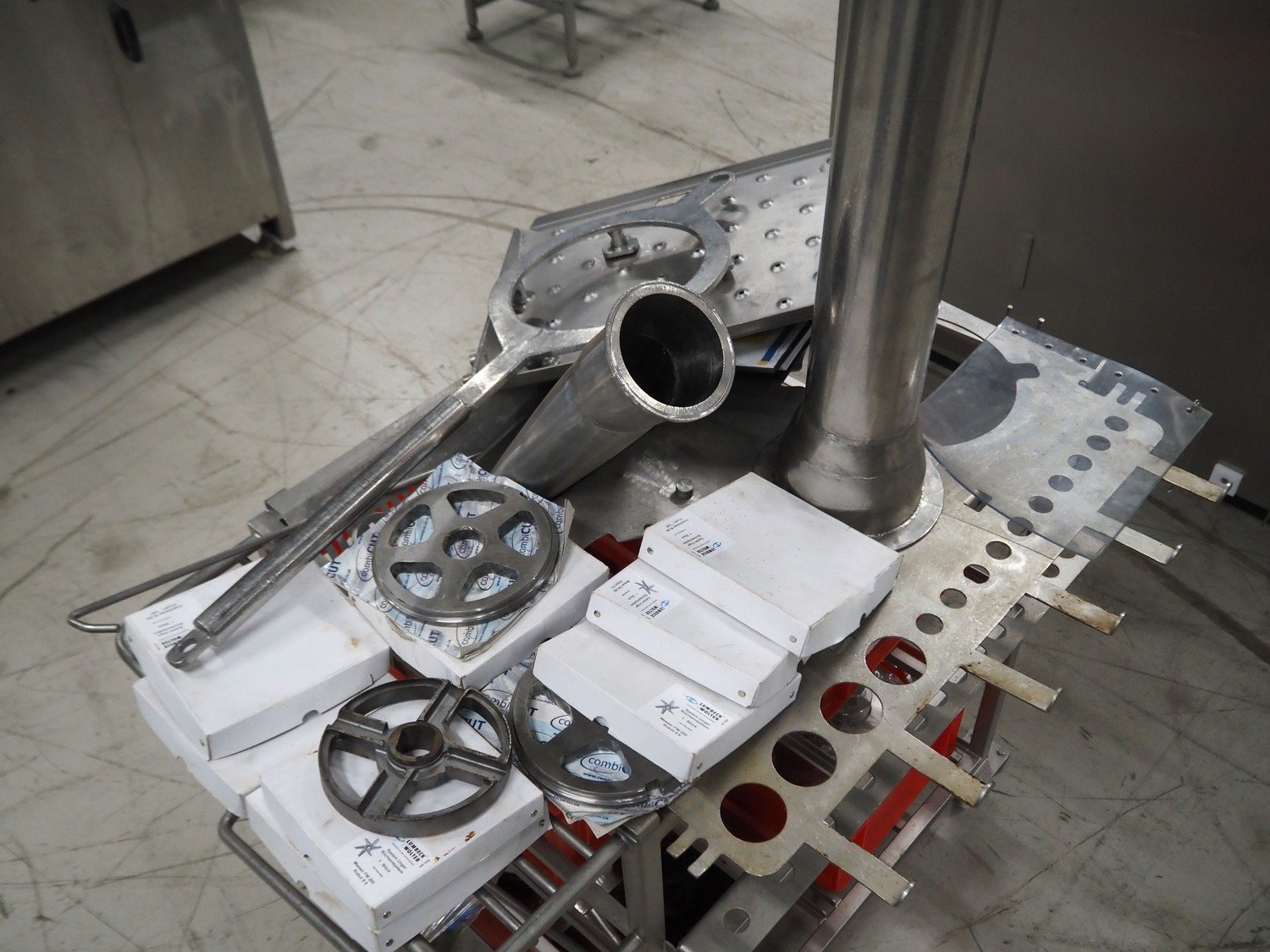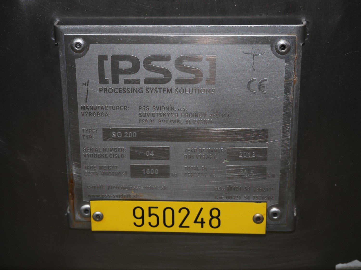 PSS Svidnik a.s. grinder, type: SG 200, serial number: 04, year of construction: 2013, 30.5 kW, weight: 1600 kg, plate diameter: 200 mm, total dimensions: 2700 mm x 1300 mm x 2350 mm. Including s/s trolley with parts, dimensions: 1250 mm x 1000 mm x 1050 mm. Kavel locatie: Looyenbeemd 11, 5652 BH Eindhoven, Nederland