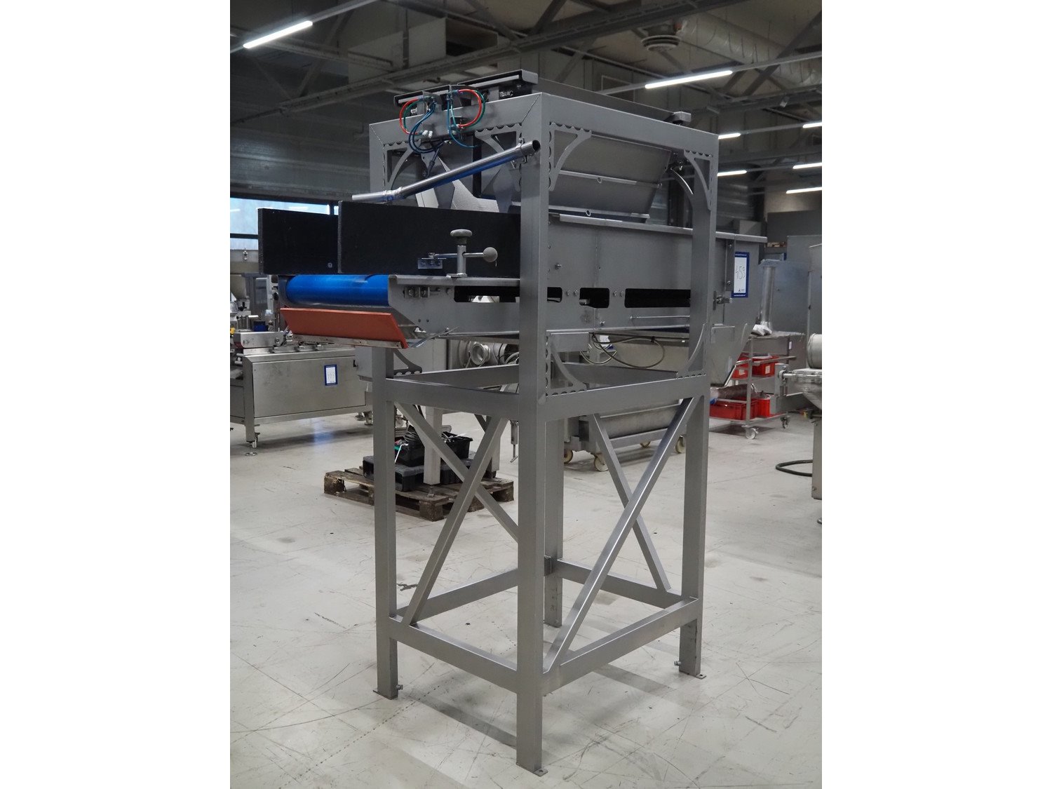 Marel part for batch weigher, s/s frame, plastic belt, belt width: 530 mm, total dimensions: 2120 mm x 950 mm x 2230 mm. Kavel locatie: Looyenbeemd 11, 5652 BH Eindhoven, Nederland