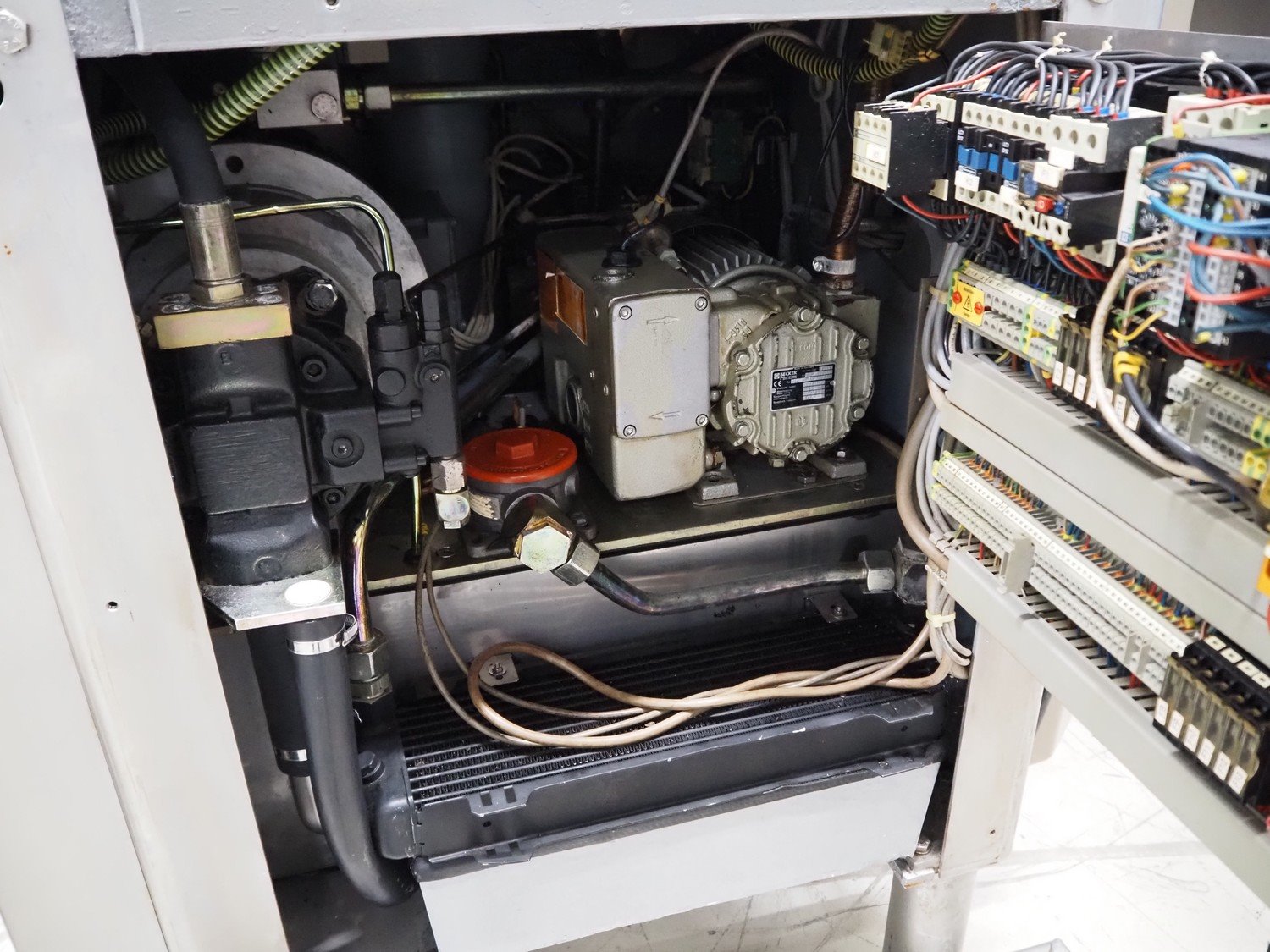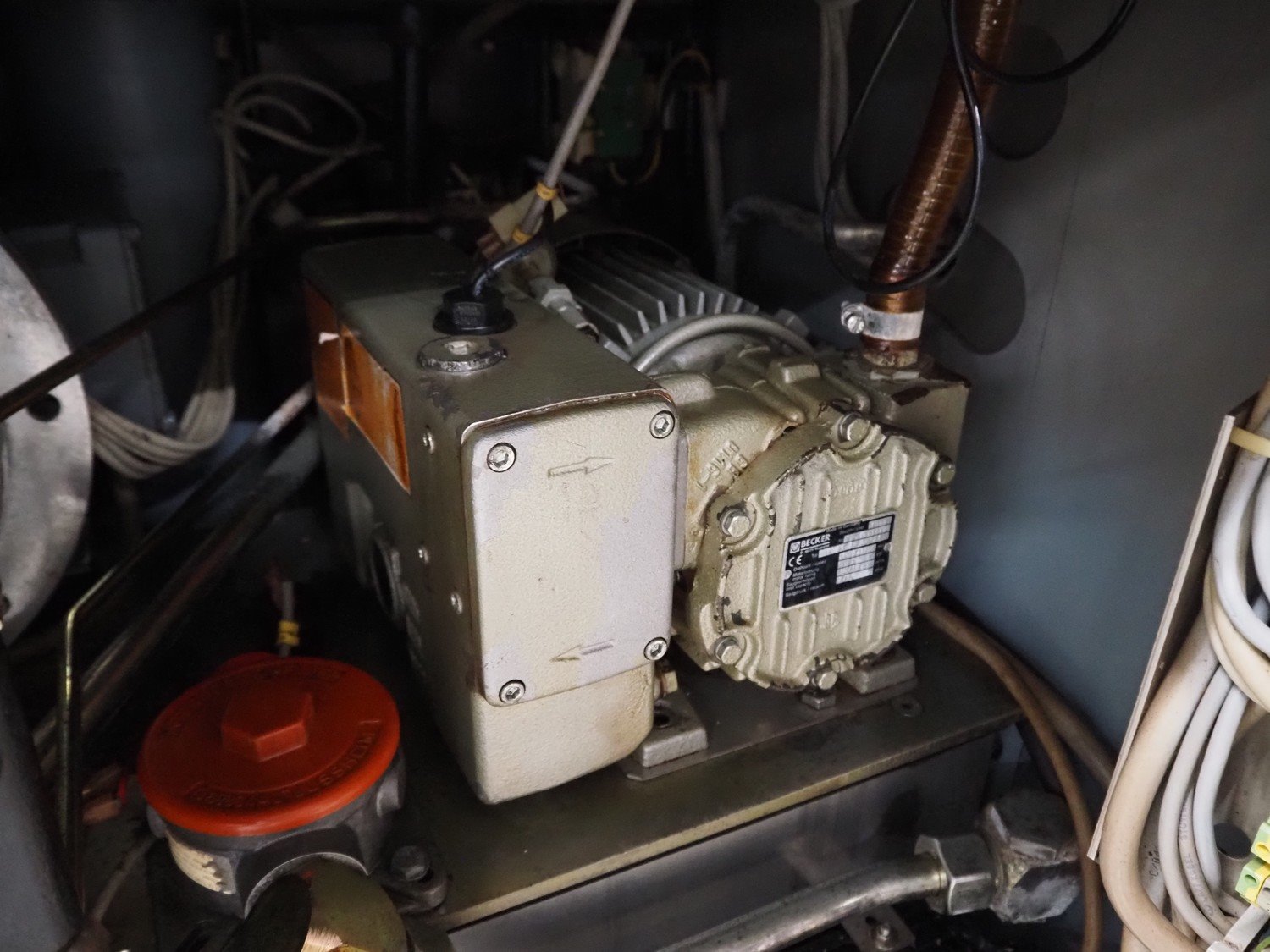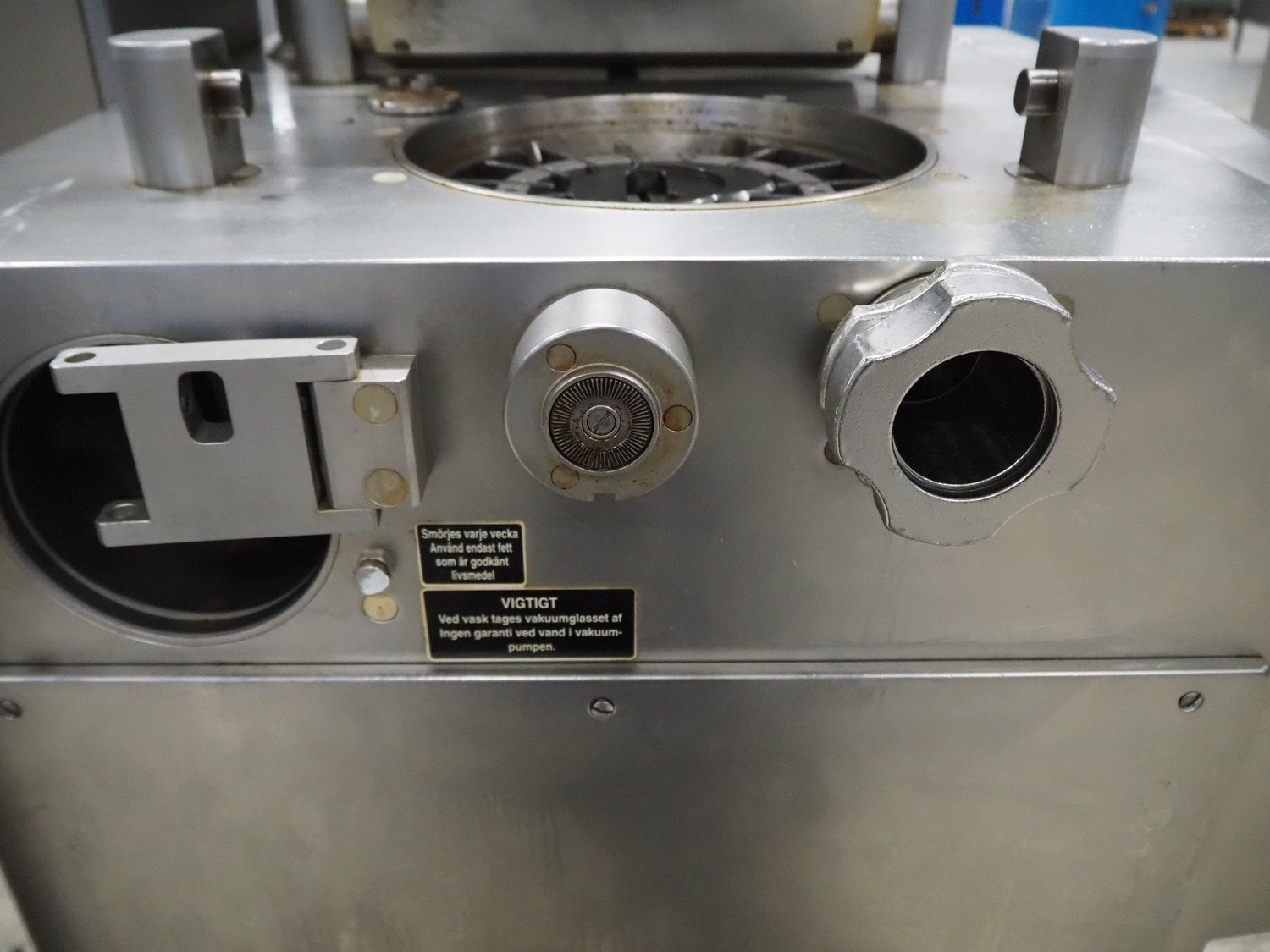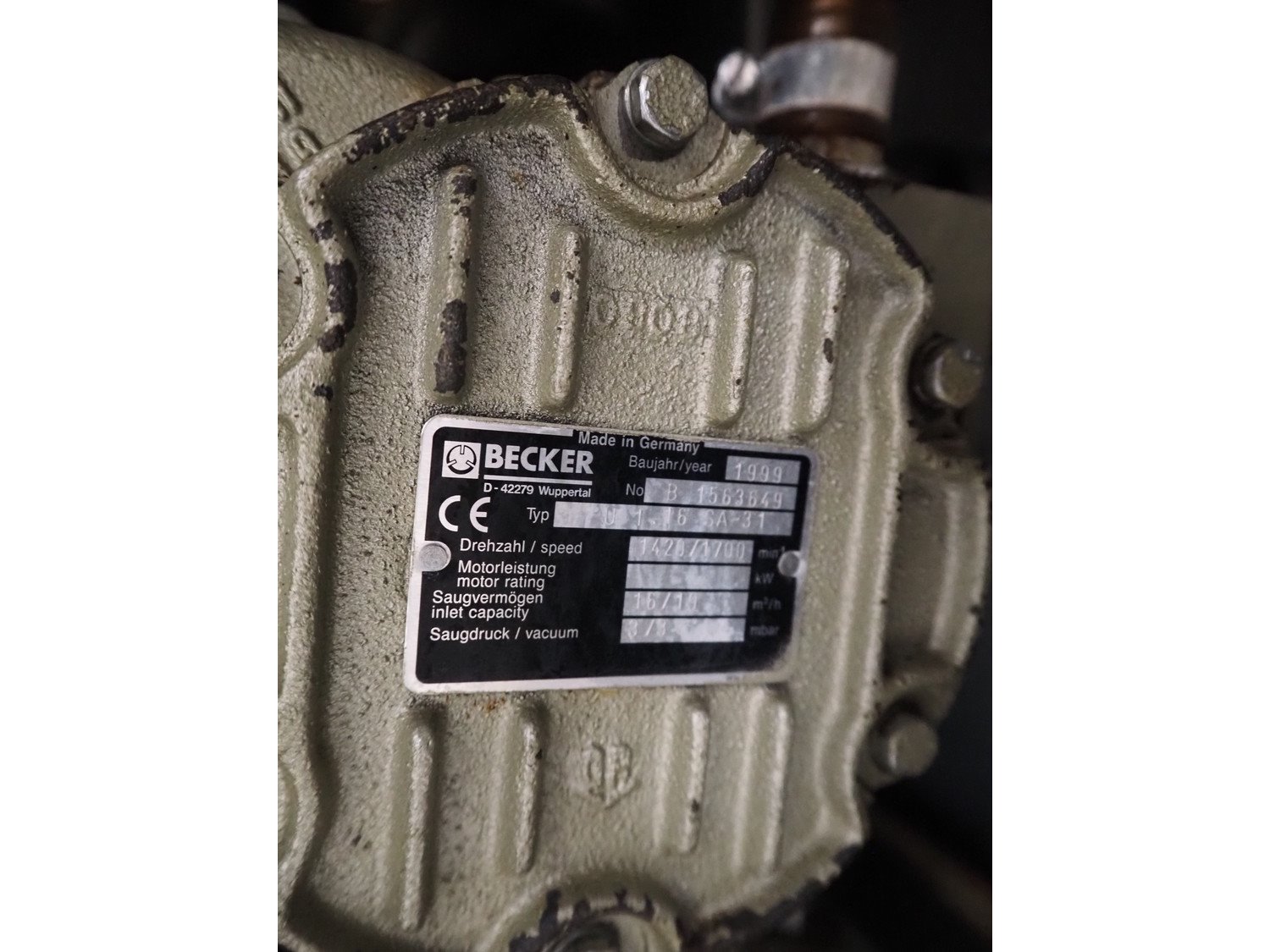 Handtmann vacuum filling machine with lifter for 200 liter meat bins, type: VF200B, number: 4517, year of construction: 1999, 400 V, 50 Hz, 17 A, 6.5 kW, Becker vacuum pump, type: U 1.16 SA-31, capacity: 16/19 m³ per hour, dimensions: 1900 mm x 1320 mm x 2300 mm. Kavel locatie: Looyenbeemd 11, 5652 BH Eindhoven, Nederland