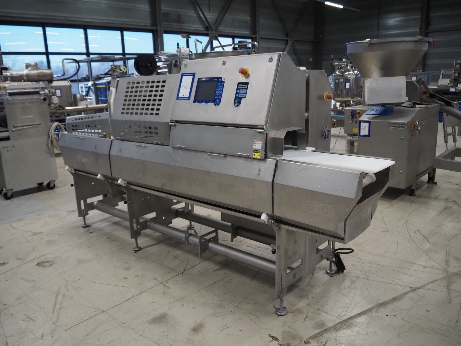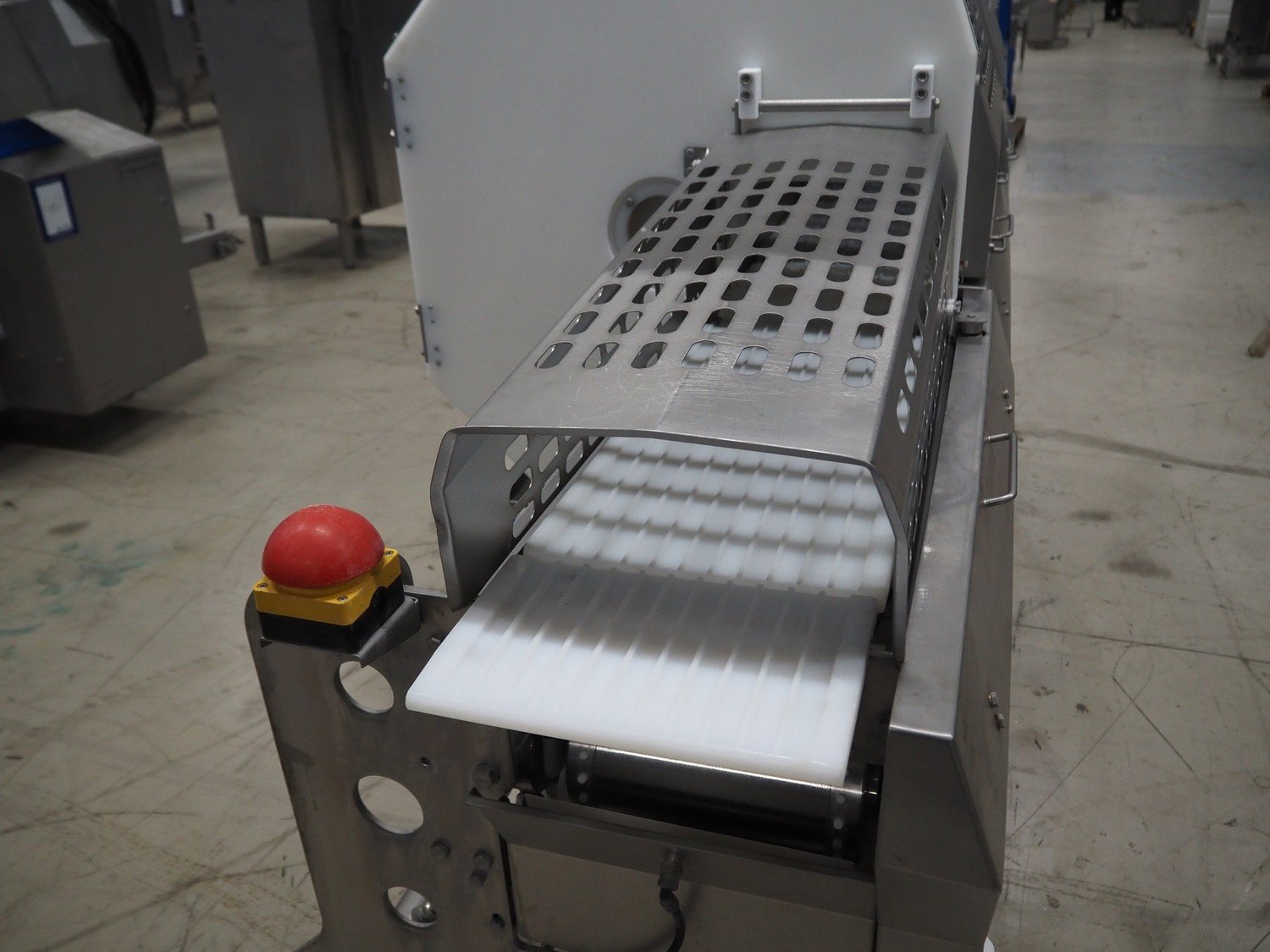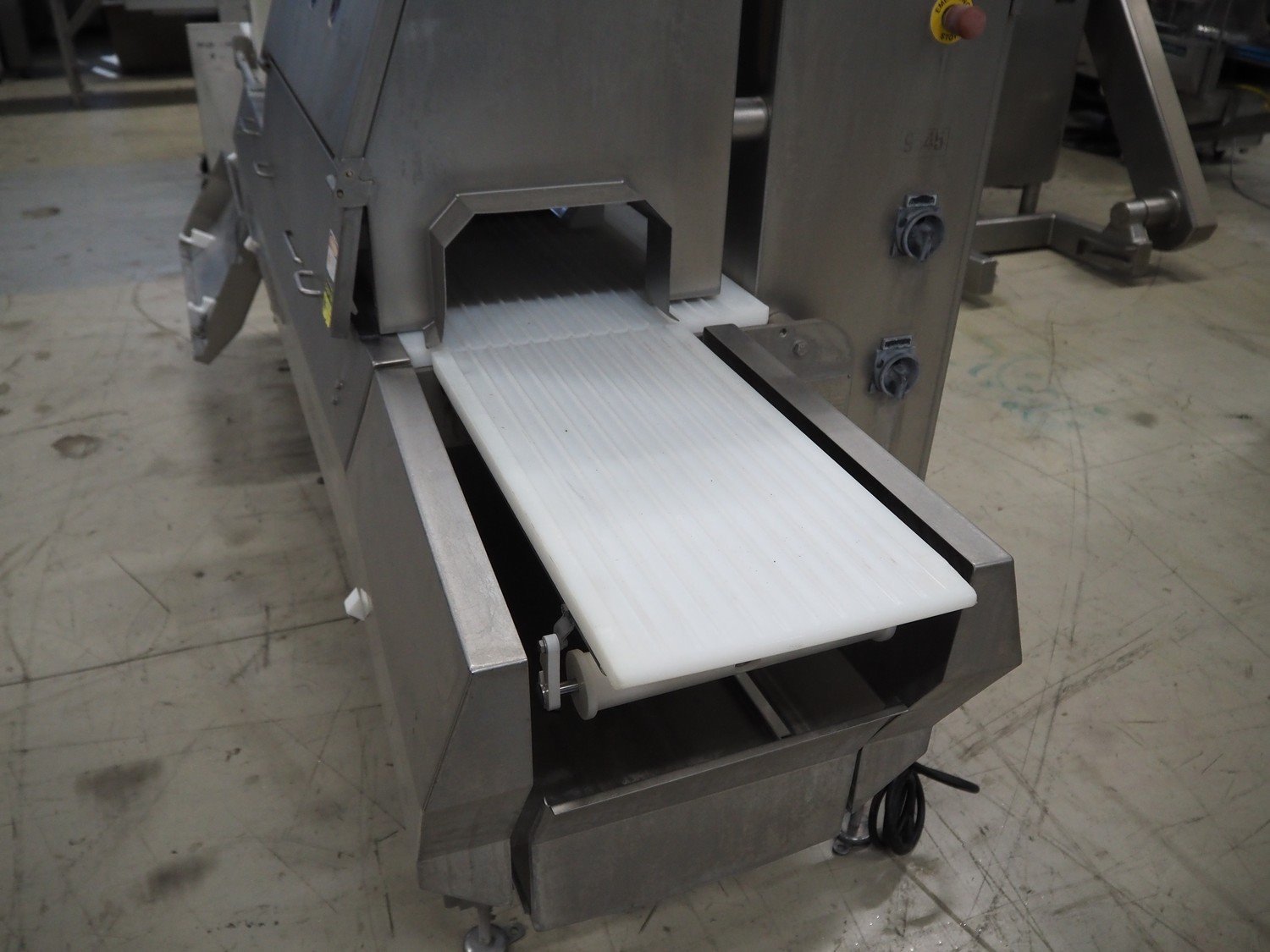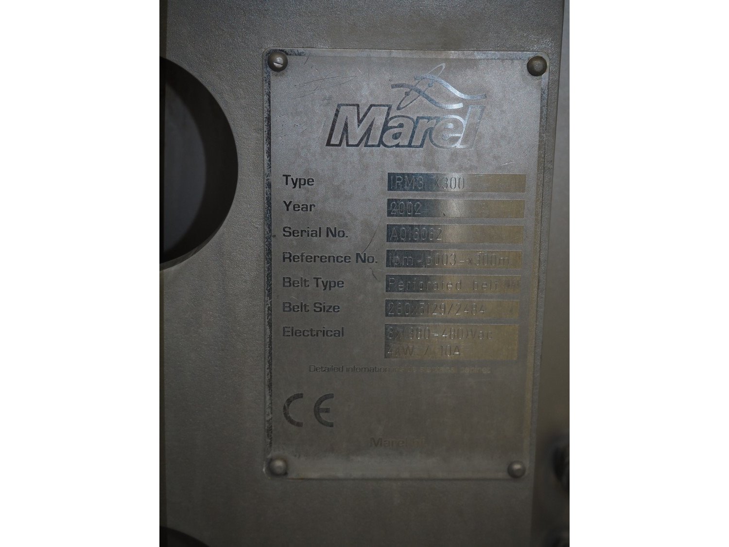 Marel portion cutter, type: IPM3 X300, serial number: A016062, year of construction: 2002, 380-480 V, 3 Ph, 10 A, 4 kW, plastic belts, belt width: 270 mm, total dimensions: 3350 mm x 1050 mm x 1700 mm. Including crate with parts. Kavel locatie: Looyenbeemd 11, 5652 BH Eindhoven, Nederland