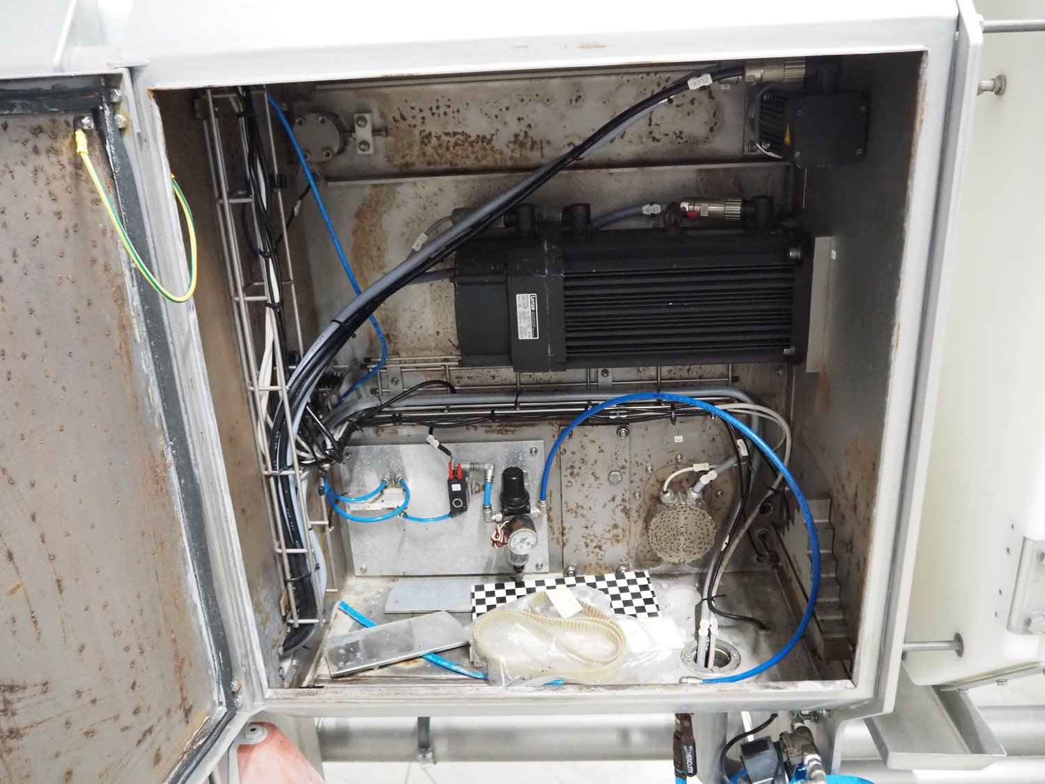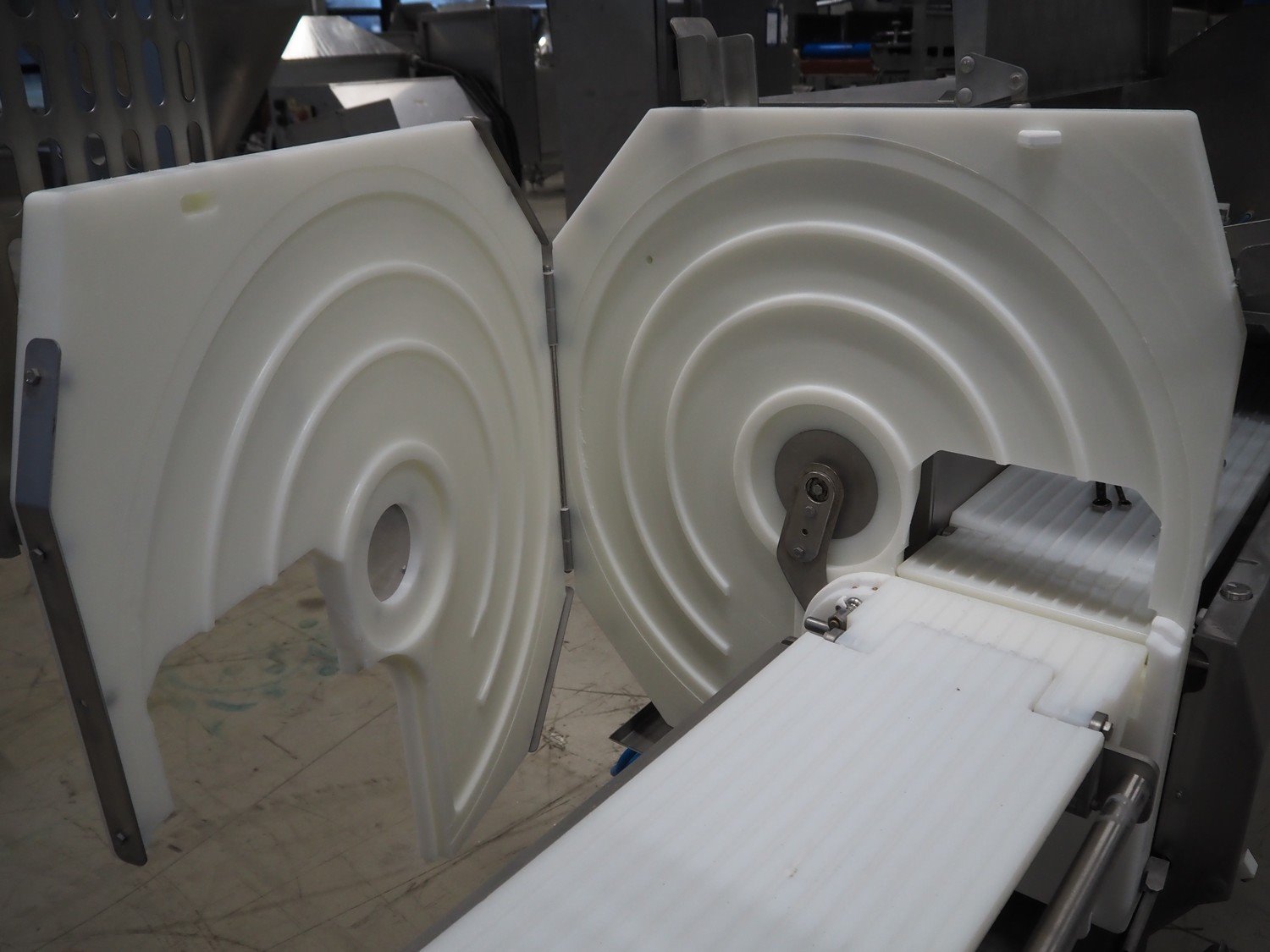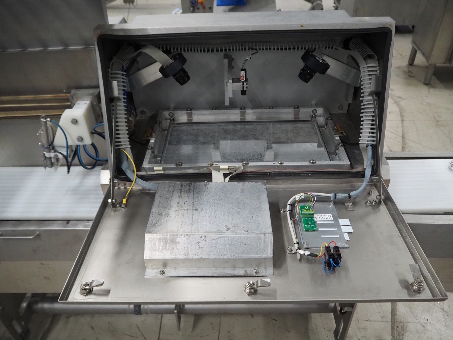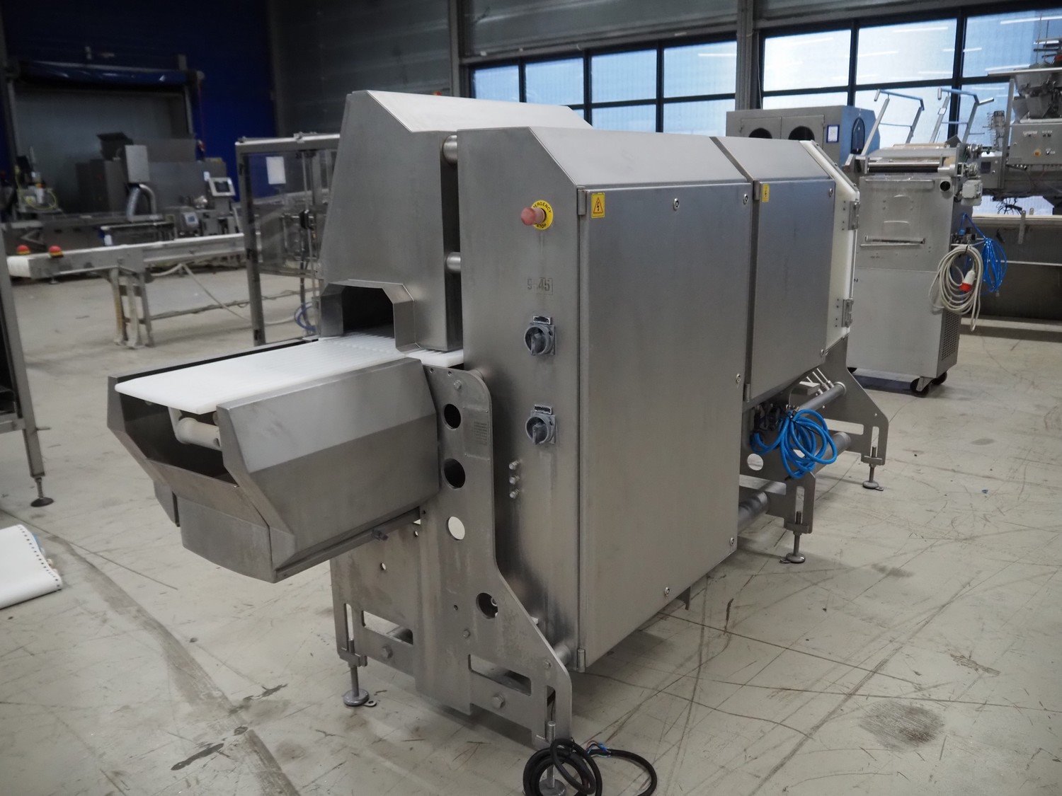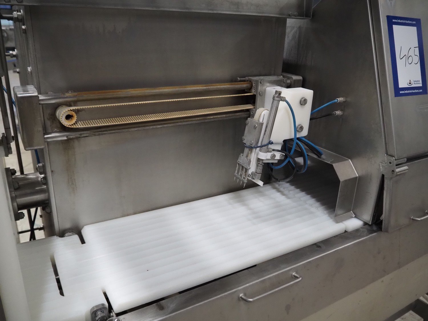 Marel portion cutter, type: IPM3 X300, serial number: A016062, year of construction: 2002, 380-480 V, 3 Ph, 10 A, 4 kW, plastic belts, belt width: 270 mm, total dimensions: 3350 mm x 1050 mm x 1700 mm. Including crate with parts. Kavel locatie: Looyenbeemd 11, 5652 BH Eindhoven, Nederland