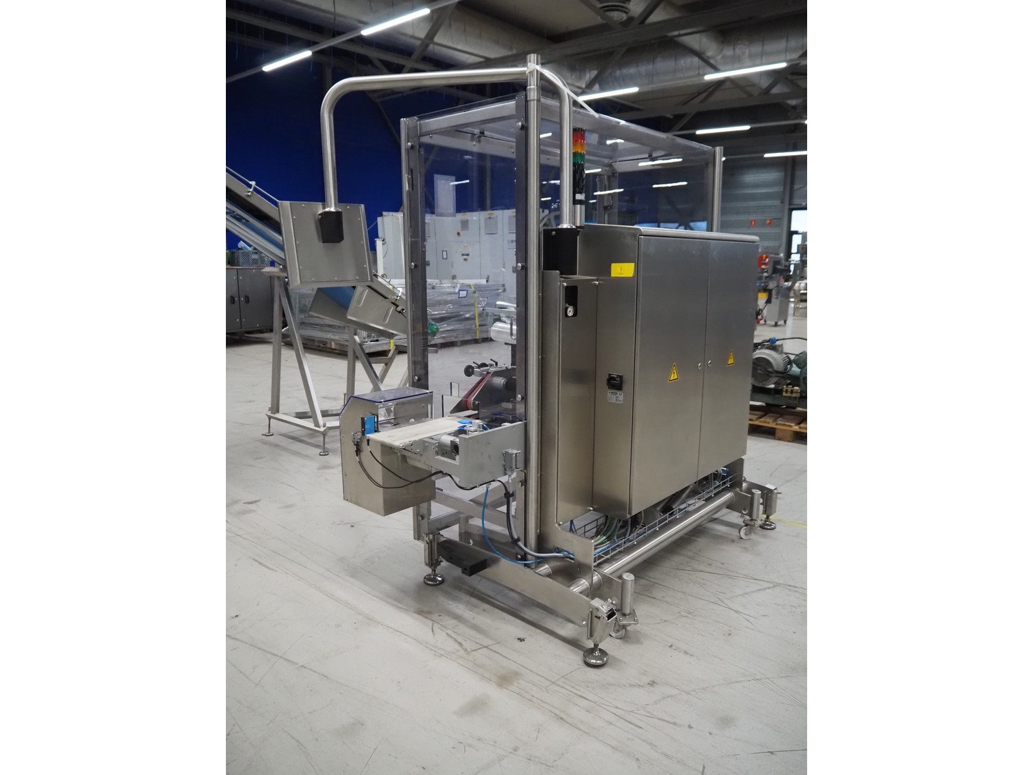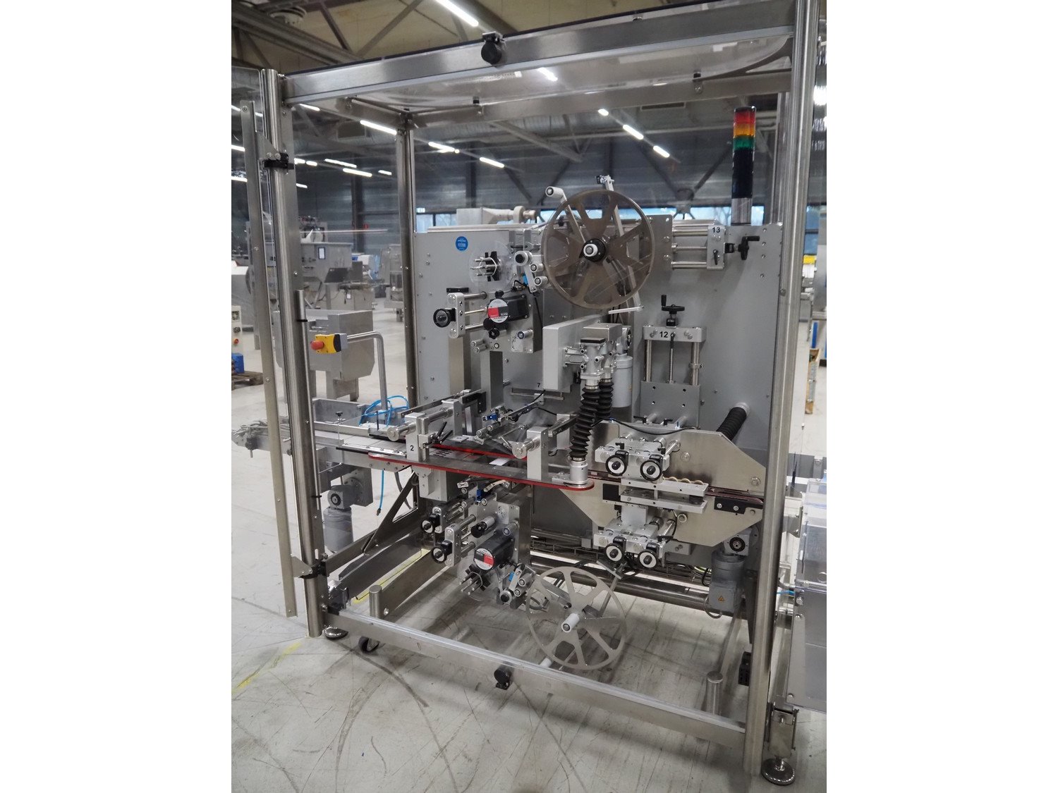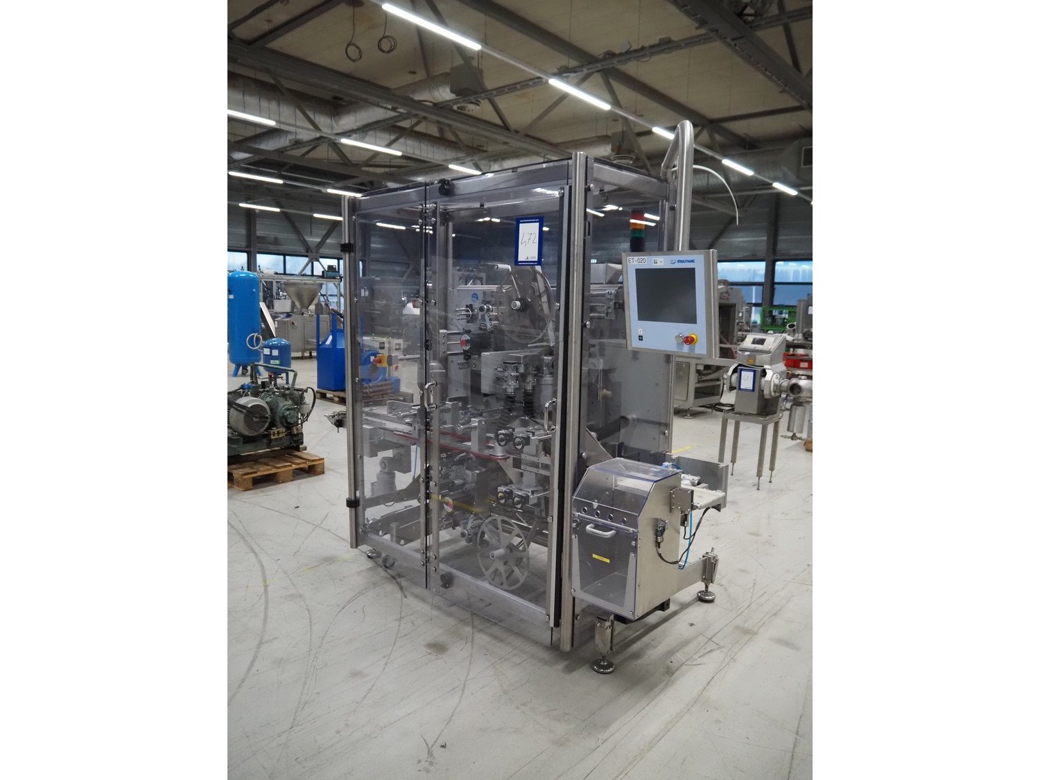 Multivac mobile labelling machine with bottom and top labeller and rejector, model: MR335 TQ3019BA40000RG, type: MR335, machine number: 242158, year of construction: 2017, 230 V, 50 Hz, 2500 VA, plastic belt, belt width: (2x) 190 mm, total dimensions: 2700 mm x 1200 mm x 2300 mm. Kavel locatie: Looyenbeemd 11, 5652 BH Eindhoven, Nederland